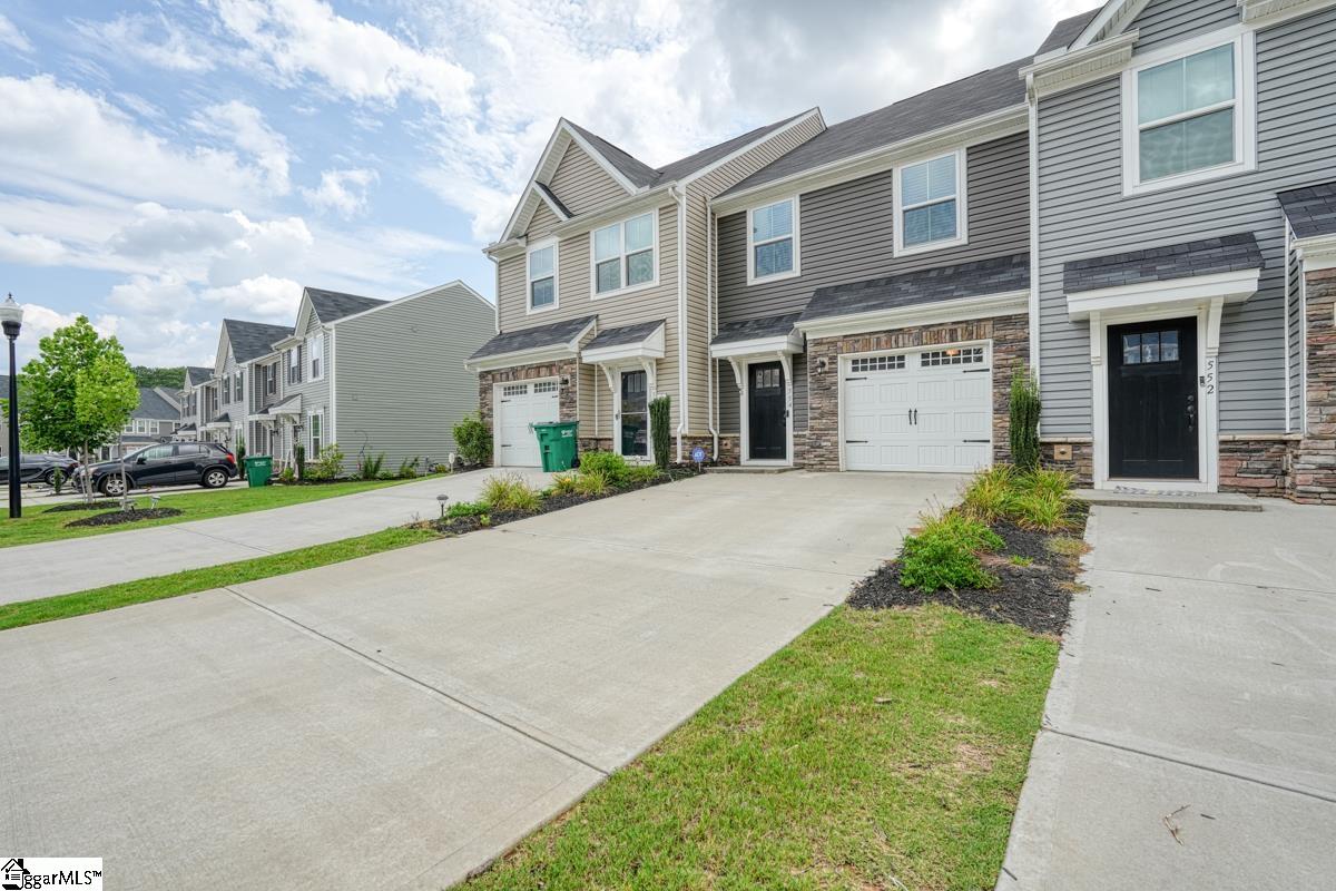 Welcome to 554 Preakness Run in the spectacular new Weststone townhome community! This charming neighborhood boasts plenty of green space for walking pets, maintenance-free exteriors, and gorgeous curb appeal. Conveniently located just a stone’s throw from Westgate Mall and with easy access to I-85, I-26, HWY 29, and Blackstock Road, shopping and commuting are a breeze. This spacious 2-story Townhome offers 3 bedrooms, 2.5 bathrooms, and 1,657 square feet of living space. You'll love the open floorplan, beautifully appointed family room, and dining area off the kitchen with an oversized island. The second floor features an impressive 13x17' owner’s bedroom with an enormous walk-in closet and en-suite bath, along with two additional bedrooms, a second full bath, and a convenient laundry room. The home is filled with natural light from abundant windows and loaded with modern upgrades. Enjoy an attached garage and outdoor grilling patio. This home comes with an all stainless steel appliance package, including a fridge, stove, washer/dryer, and dishwasher. Lawn maintenance is included in the HOA fee of $125a month, ensuring a hassle-free living experience.