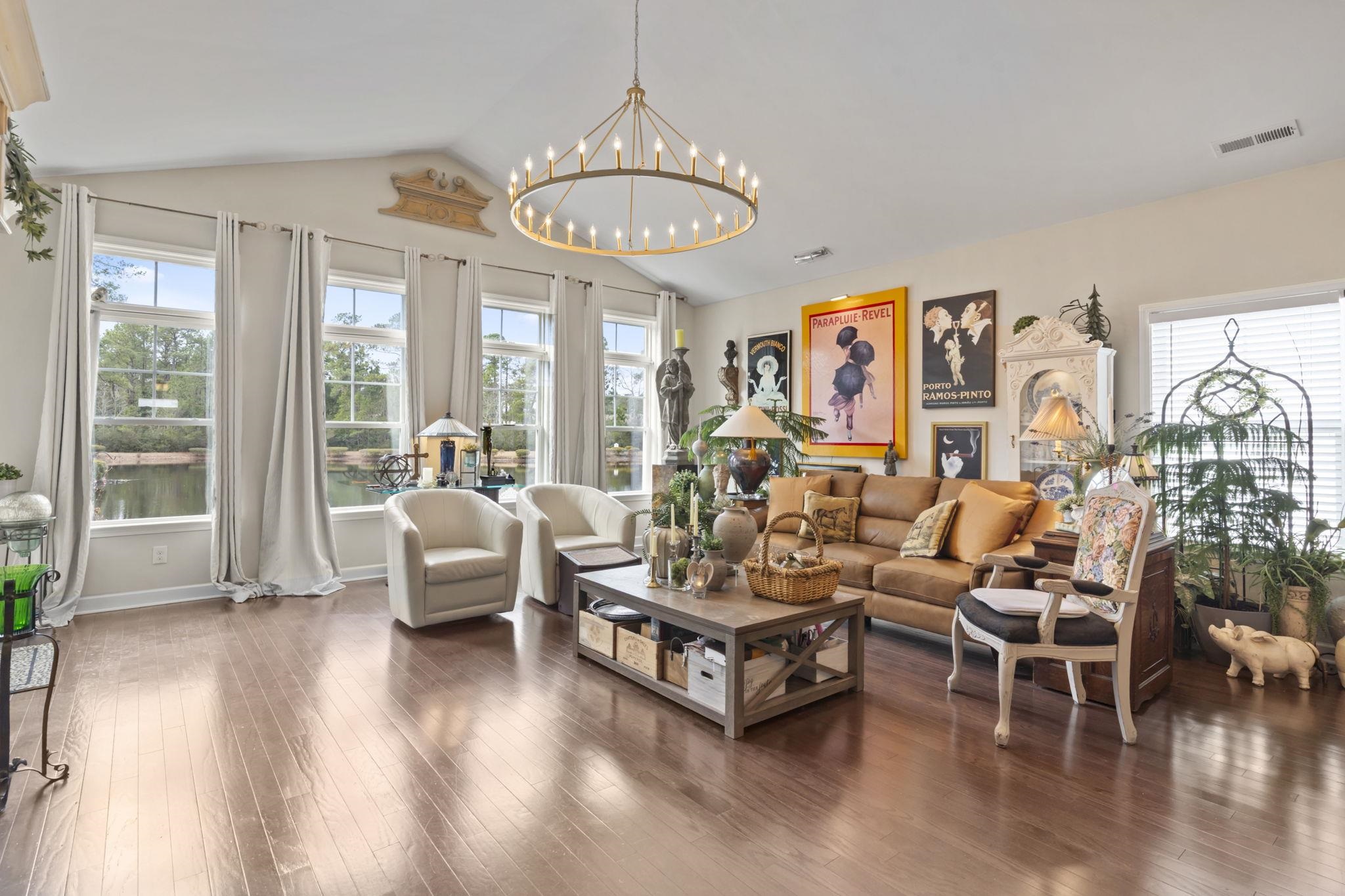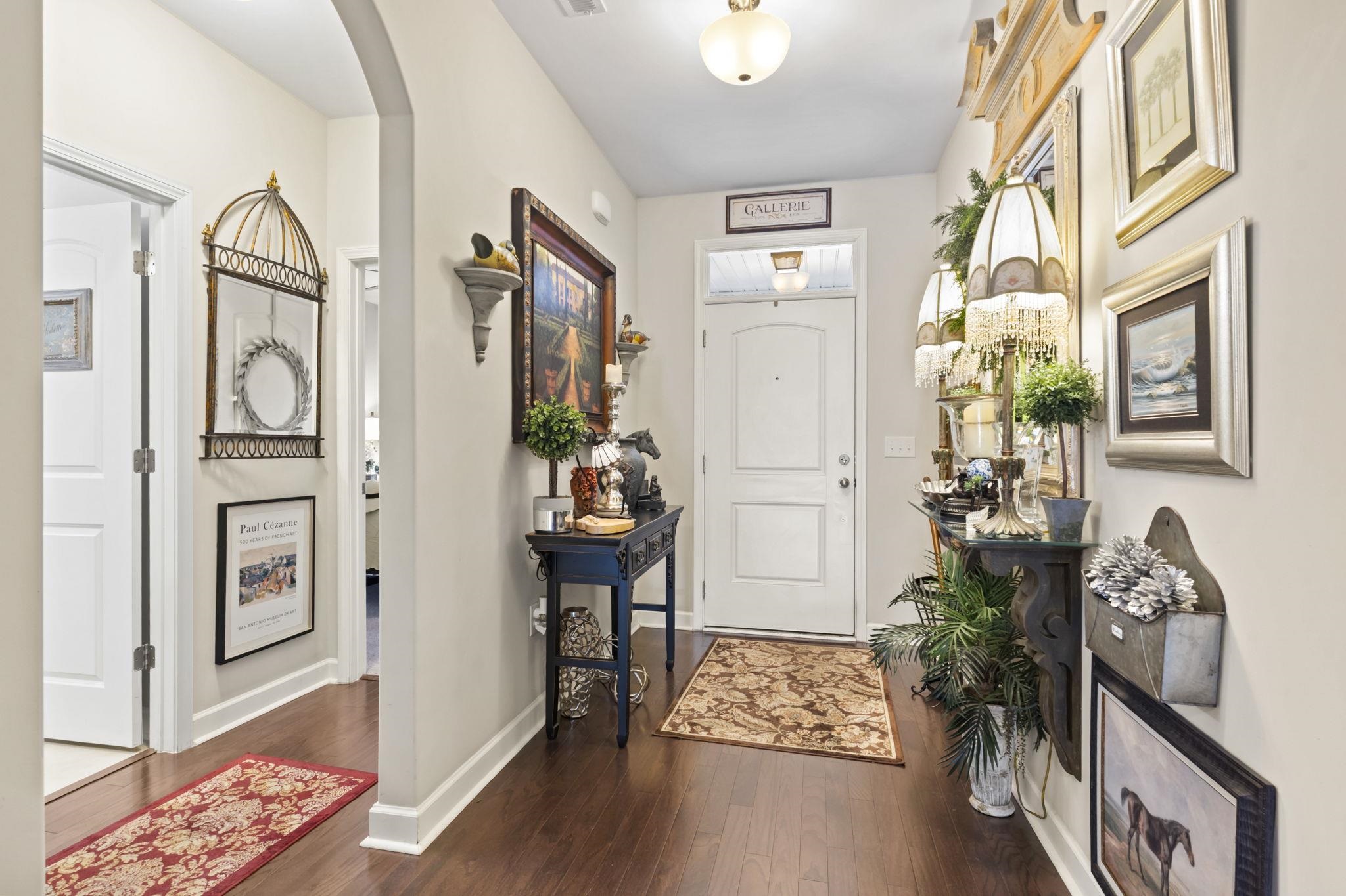 Designed by an interior designer, this gorgeous 3-bed, 2-bath single-story home is located in the exclusive Brookberry section of The Farm—an intimate enclave of only 55 homes built by RS Parker where neighbors truly feel like family. From the moment you arrive, the immaculate design and thoughtful upgrades are impossible to miss, highlighted by lush landscaping, an irrigation system, and a beautifully tiled front entry. Step into the foyer and you’re welcomed by real hardwood flooring with a factory white oak French finish, setting the tone for the elevated design throughout. The interior features a formal dining room with two show-stopping chandeliers, a spacious laundry room, and a two-car garage. The main living area offers breathtaking views through four tall windows overlooking the pond and natural preserve, all framed by vaulted ceilings and a dramatic bronze hanging light fixture that instantly becomes a conversation piece. The upgraded kitchen boasts the largest granite countertop the builder offered, stainless steel appliances, a new washer and dryer, upgraded fixtures and lighting, and an air purification system. The primary suite provides peaceful pond and preserve views, enhanced by two additional windows for a wall-to-wall panorama, along with safety handrails in the tiled step-in shower for added comfort. Unwind on the screened-in porch—complete with a knee wall—and enjoy the serenity of your private backyard and the surrounding nature. This home is truly one-of-a-kind. Great community Amenities include, two pools, playground, fitness room and basketball court. Only 10 minutes to Tanger Outlets, Post Office, Banks, Restaurants and Medical Offices. Best of all....Only 20 minutes to the BEACH!