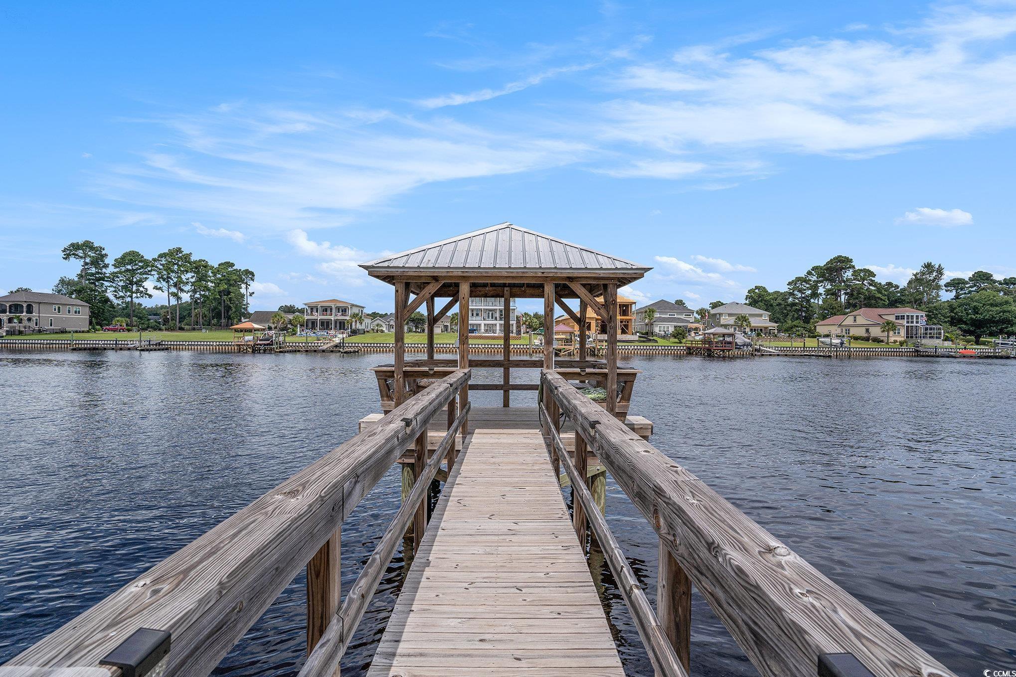 Welcome to this exquisite waterfront residence along the Intra Coastal waterway offering the perfect blend of elegance, comfort, and relaxation. From the moment you arrive, the curb appeal stands out with its manicured landscaping, stone accents, and palm trees that create a coastal charm. Inside, you’ll find an open floor plan designed for both everyday living and entertaining. The gourmet kitchen is a chef’s dream with granite countertops, stainless steel appliances, custom cabinetry, tile backsplash, and a spacious center island with seating. Just off the kitchen is a formal dining room. The kitchen flows seamlessly into the bright living area, which features tray ceilings, crown molding, recessed lighting, and oversized windows that flood the space with natural light and waterway views. The owner’s suite is a private retreat with stunning tray ceilings, a large picture window overlooking your private pool and the Intracoastal waterway. The en-suite bath boasts dual vanities, granite countertops, and a spa-style walk-in tile shower, along with two custom closet system for ample storage and a separate linen closet. There are two additional bedrooms and 2 additional bathrooms. Step outside to your personal paradise. The covered patio includes a built-in outdoor kitchen with grill and beverage fridge, perfect for entertaining year-round. There are also custom retractable screens for the covered patio. Overlooking the sparkling private pool, the backyard is designed for relaxation, with space for lounging, a fire pit area that is connected to the natural gas from the house, and lush tropical landscaping. Enjoy those sunny days watching the boats pass by and those evenings hearing the wildlife. The property also includes a private dock (that is shared with your direct neighbor only) with a covered gazebo directly on the Intracoastal Waterway—ideal for boating, fishing, or simply enjoying breathtaking sunsets over the water. You can even install your own boat life making waterway weekends a breeze! This home truly embodies luxury coastal living. Whether you’re relaxing indoors, entertaining by the pool, or relaxing from your private dock, every detail has been thoughtfully designed. Located in the desirable community of Lauderdale Bay Estates this close to Myrtle Beach attractions, airport, dining, golf, and the sandy shores of the Atlantic, this property is a rare opportunity to own a slice of waterfront paradise. Buyer is responsible for verification.