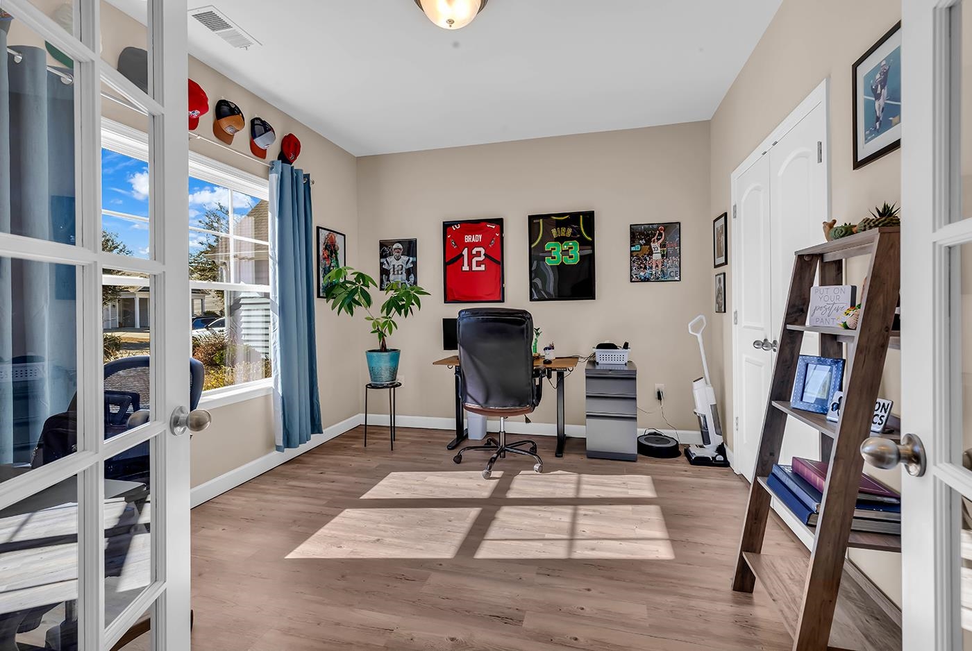 Welcome home to this stunning four bedroom, three bathroom residence located within the sought-after Brookberry community at the Farm. Proudly built by RS Parker, this home reflects quality construction and meticulous attention to detail throughout. This home features a versatile office that could easily serve as a fifth bedroom if needed. The thoughtfully designed floor plan offers both functionality and comfort. Upon entry, the office is located on the left, while a bedroom and full bathroom are down the hall on the right. Continuing through the home, you'll find an open-concept kitchen, dining area, and living room, ideal for both everyday living and entertaining. The primary suite is conveniently located on the first floor at the rear of the home, providing privacy and comfort. Upstairs, are two very spacious bedrooms and a full bathroom that completes this exceptional layout. Some features include tray ceilings in the primary suite, living room, and dining area, wood flooring in living room, foyer, and dining area. Other features are stainless steel appliances, granite counter tops, under counter lighting, as well as 36" cabinets in the kitchen. A lawn sprinkler system has also been installed. Outside you have a private patio with a built in grill! Schedule your showing today! *All information deemed reliable, buyer to confirm*