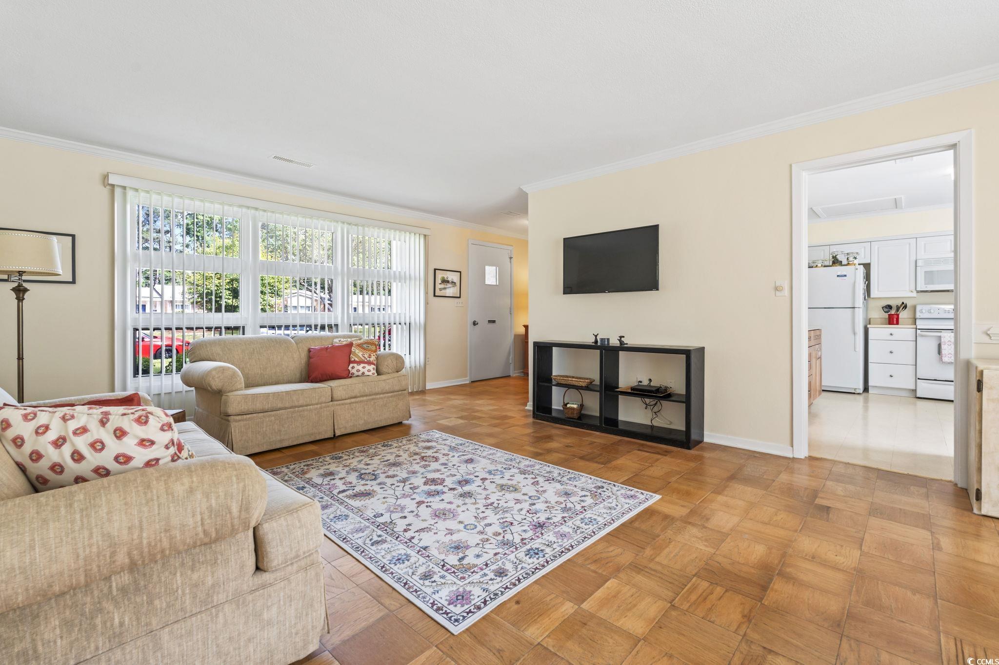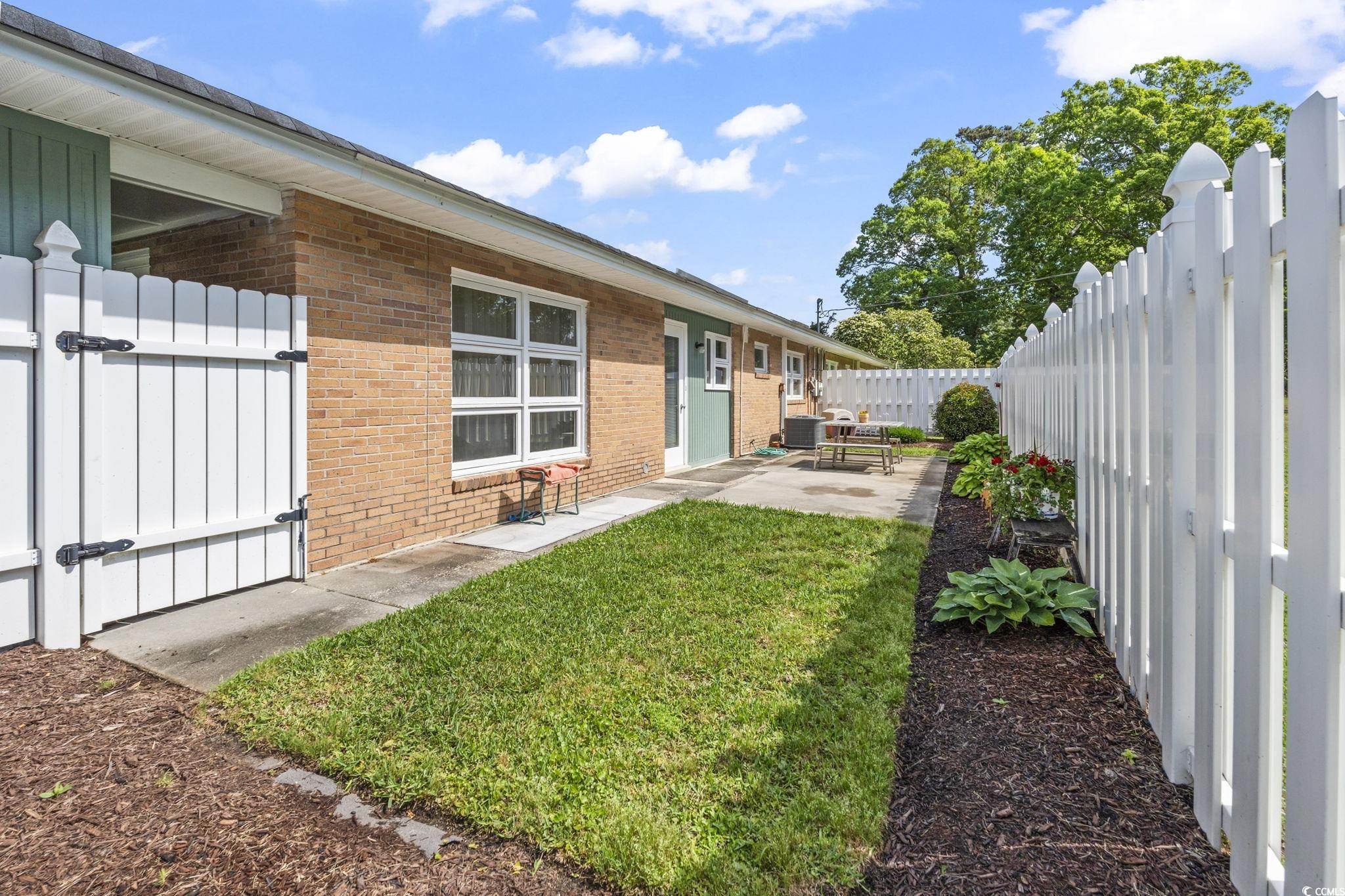 Seagate Village’s largest duplex floor plan, freshly painted and featuring a huge patio. This beautifully maintained brick ranch offers 3 bedrooms and 1.5 bathrooms, perfectly situated on a spacious lot with mature trees and privacy. The inviting curb appeal is highlighted by manicured landscaping, vibrant blooms, and a welcoming walkway leading to the entrance. Inside, a generous living room is filled with natural light from large front windows and flows seamlessly into the open dining area. The bright kitchen includes crisp white cabinetry, matching appliances, and direct access to the outdoor living space. The fenced backyard with its expansive patio and gorgeous landscaping is perfect for morning coffee, backyard barbecues, or entertaining. Down the hall, three well-proportioned bedrooms offer ample closet space and natural light. The primary bedroom has convenient access to a half bath, while a centrally located full bathroom serves the other bedrooms. A bonus room provides additional storage or flexible use. Outside, enjoy a covered patio, peaceful yard, and an attached carport with extra driveway parking. Set on an expansive corner lot in the highly sought-after Seagate Village, this home combines charm and convenience. The HOA covers landscaping and exterior maintenance, and residents have the option to join the Market Common Amenity Center with resort-style pools, lazy river, hot tubs, and a state-of-the-art fitness center. Located in the heart of Myrtle Beach, Seagate Village is within walking distance to Market Common’s shops, dining, and entertainment, with the beach just a short golf cart or bike ride away.
