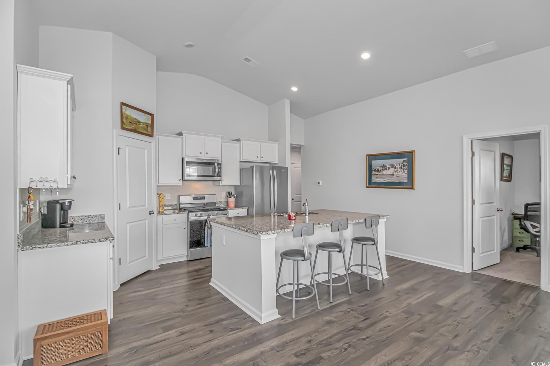 Welcome to 559 Courtridge Loop. 3 bedroom 2 bathroom duet home built in 2023 situated on a pond lot with a fenced in back yard in the Ridgefield Community. This Tuscan floor plan offers a generous, open layout all on a single level. With vaulted ceilings, tons of natural light throughout the living and dining areas, large kitchen island, and spacious covered porch, this home is perfect for entertaining! The kitchen features granite countertops, stainless steel appliances and large pantry with ample storage. Primary bedroom suite with walk-in closet and private bath with dual vanity and 5' walk-in shower. Perfectly located in the Carolina Forest school district, minutes to downtown Conway, CCU, dining and shopping.This Community offers a clubhouse, pool and fitness center! Don't let this home pass you by, schedule your appointment today