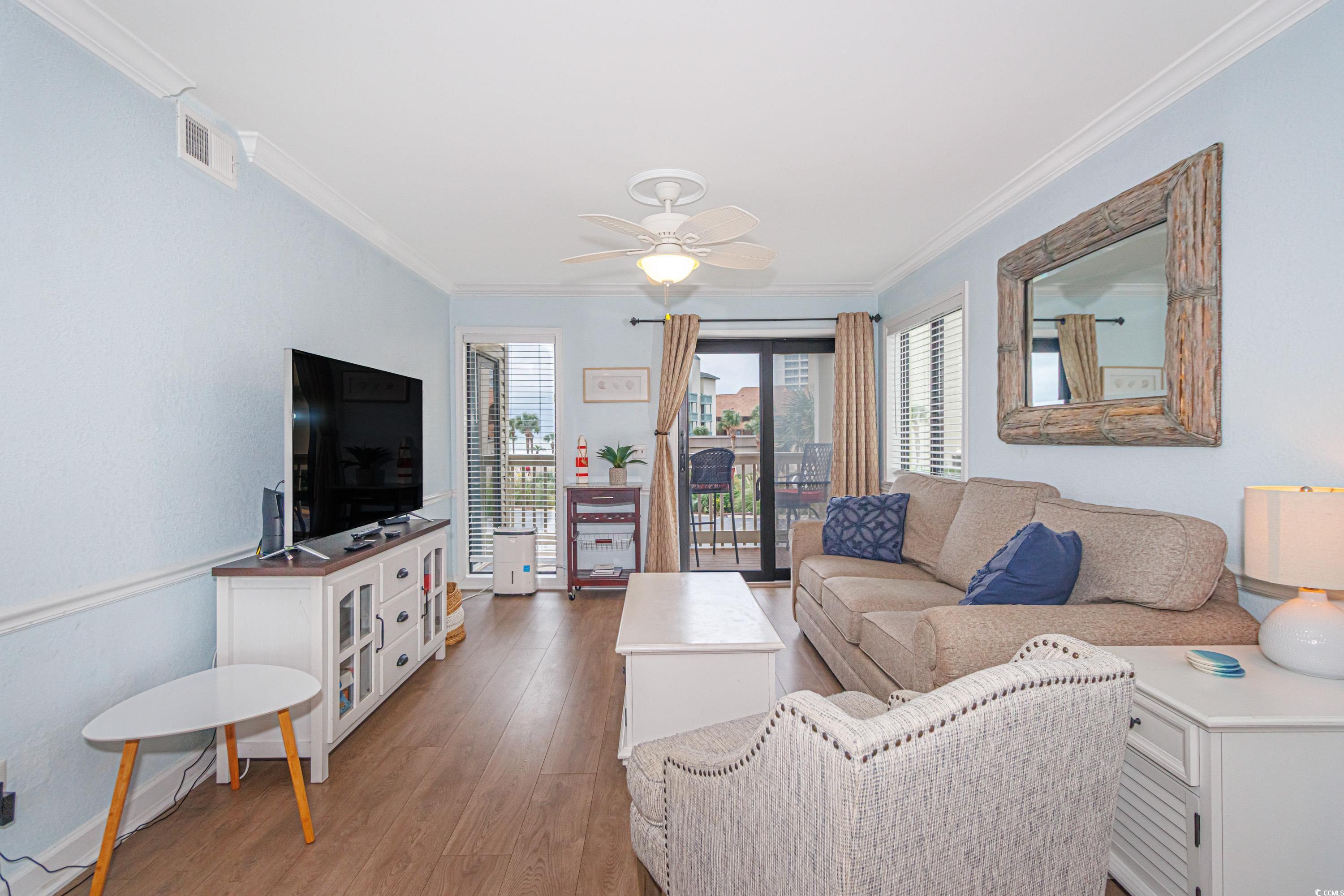 Beautifully Updated 2BR/2BA in Ocean Forest Villas – Steps from the Beach! This fully furnished, turnkey condo in the sought-after Ocean Forest Villas community truly checks all the boxes. Featuring desirable upgrades throughout—central HVAC, luxury vinyl plank flooring, smooth ceilings, crown molding, and an expanded primary bathroom with a beautifully tiled shower. The kitchen shines with updated cabinetry, granite countertops, and stainless steel appliances, creating a modern coastal feel. Perfectly positioned on the 2nd floor of the south side “A” building, this unit enjoys enhanced ocean views above the 1st-floor units while still offering easy access with only a few stairs. Ocean Forest Villas is a Myrtle Beach favorite, set in the historic Cabana Section on the former site of the iconic Ocean Forest Hotel. The HOA is exceptionally well managed, with beautifully maintained grounds, lush landscaping, and inviting common areas. Whether you’re seeking a primary residence, a second home, or a strong vacation rental investment—this one delivers on every level.