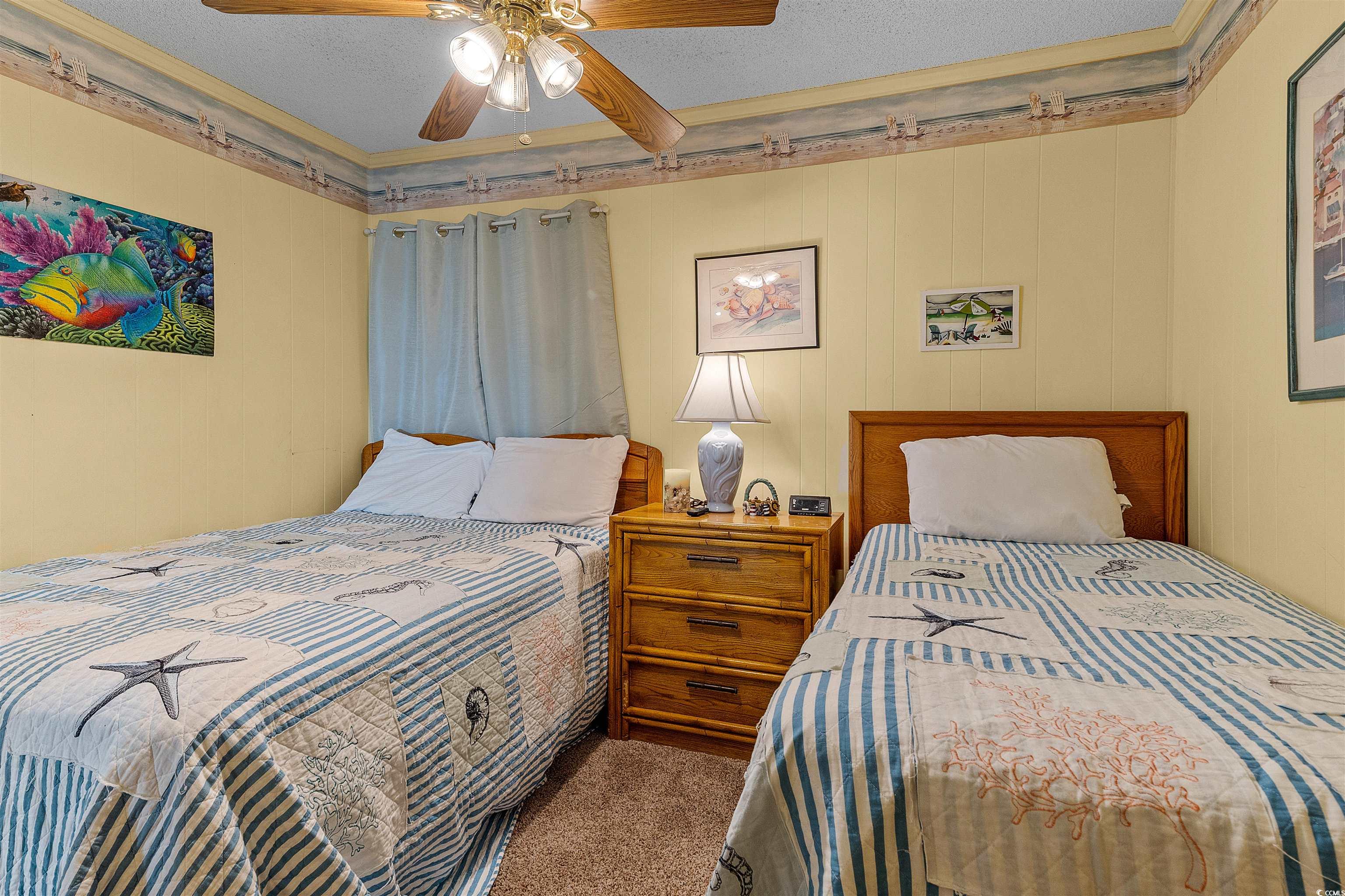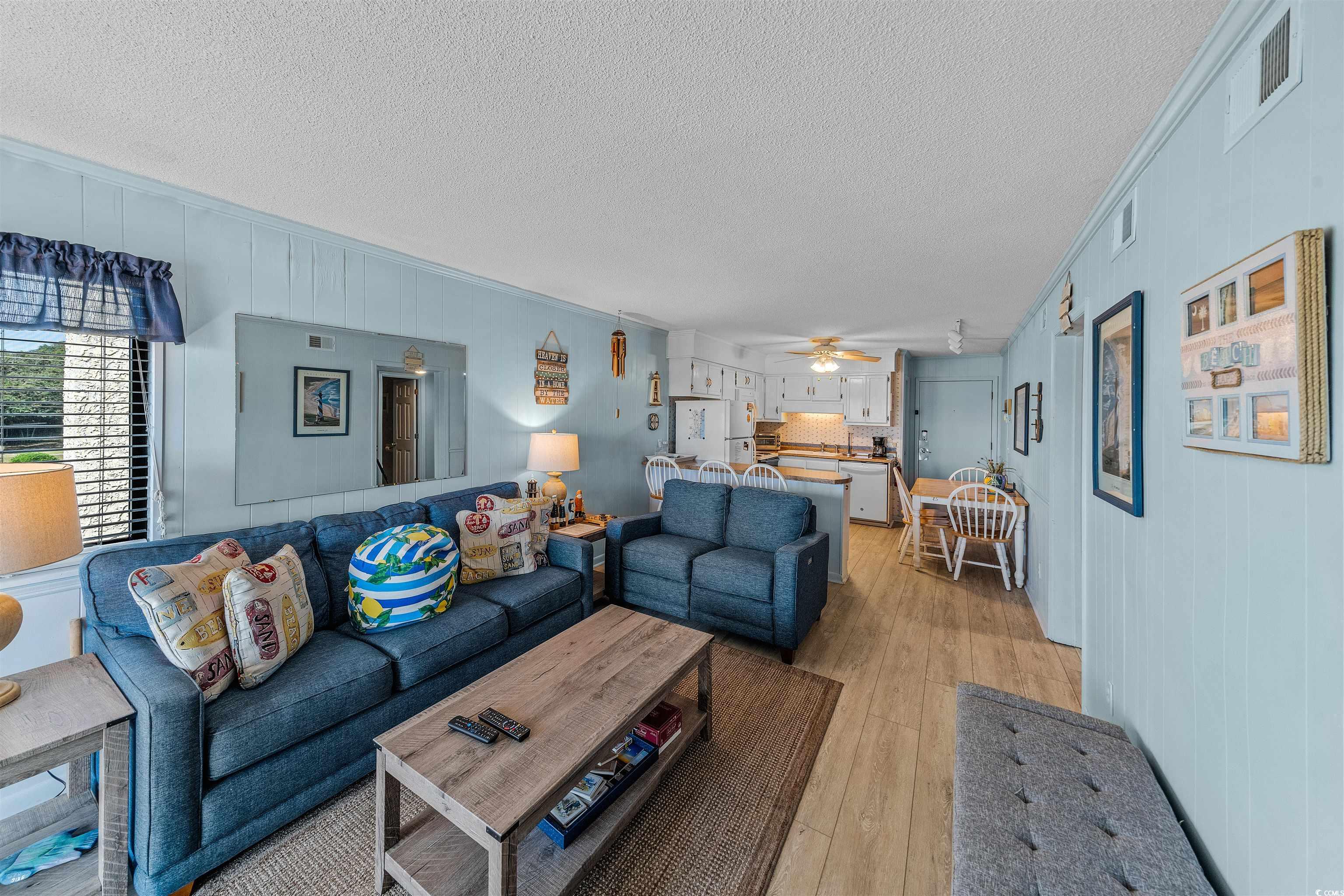 Welcome to your dream Beach Home! Spectacular ocean views await from this beautiful, turnkey 2-bedroom, 2-bath condo located in Myrtle Beach’s sought-after Golden Mile area at the popular Ocean Forest Villas resort! This top-floor unit features ceiling fans in Both bedrooms and Kitchen and balcony access from both the living room and the master bedroom. The open floor plan includes a spacious living and dining area with a bar with seating for seven, plus a fully equipped kitchen offering abundant cabinet and counter space and a double sink. The master suite features a private bath with vanity and shower, direct balcony access, and plenty of closet space. The second bedroom is generously sized, with a nearby full bath that includes a tub with shower and vanity. Step out onto the extended balcony and enjoy the refreshing ocean breezes and breathtaking views — the perfect spot for morning coffee or evening cocktails with friends and family after a day at the beach. Ocean Forest Villas offers two outdoor pools, two hot tubs, picnic and grilling areas, and is just steps from the beach. You’ll also be within walking distance of great restaurants, shopping, and a grocery store, and just minutes from Myrtle Beach attractions and entertainment. Whether you’re searching for a full-time residence, a vacation retreat, or a smart investment property, this condo delivers the ideal combination of location, comfort, and coastal charm. Come Check it out.