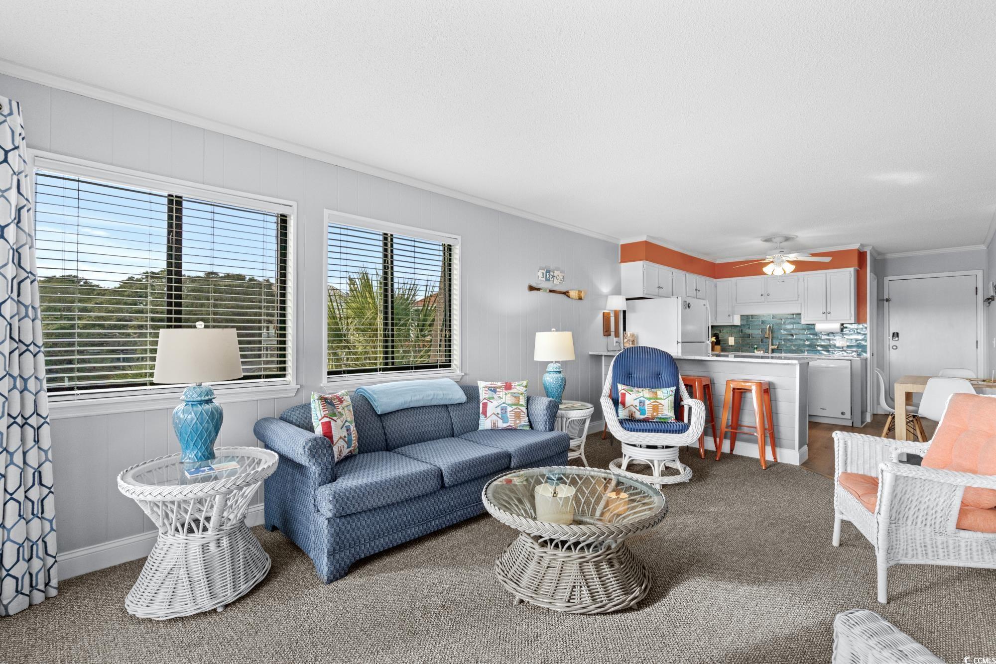 This amazing top floor end unit comes with an abundance of natural light and spectacular views of the ocean. Ocean Forest Villas is a beachfront community located along the Golden Mile in the north end of Myrtle Beach.. Updates include quartz countertops, an electric fireplace, LVP flooring and luxurious bathrooms. The unit comes fully furnished and has everything you need for a turnkey investment property, 2nd home or even your primary home. The community is conveniently located within walking distance to restaurants, shops and grocery store. Don't miss this opportunity to own a great piece of Myrtle Beach. Highly motivated seller