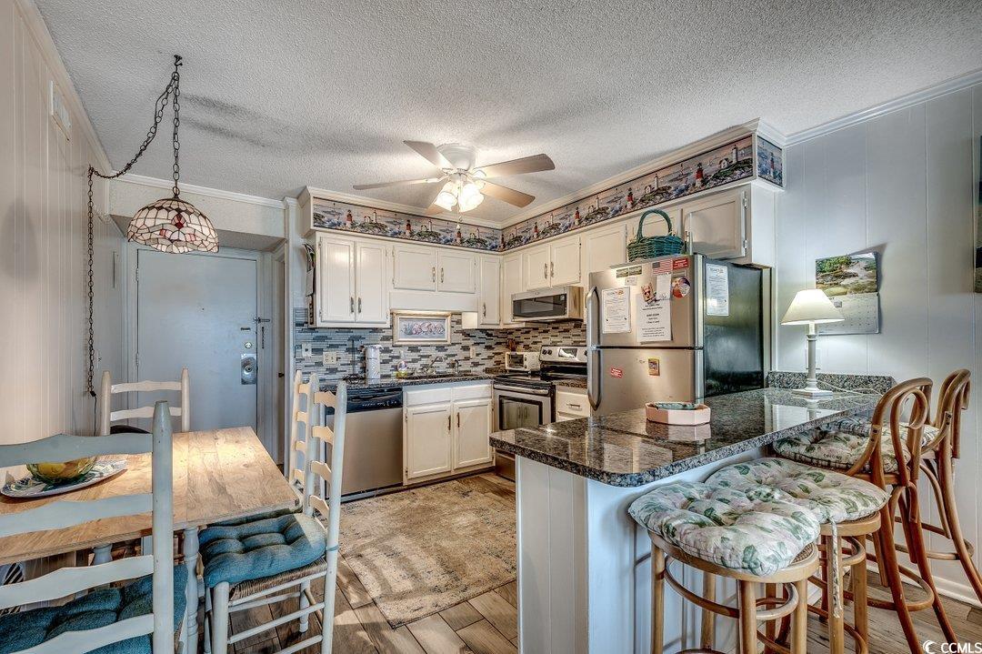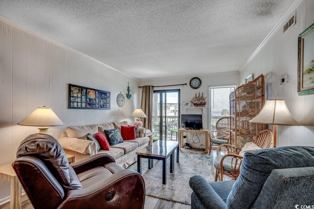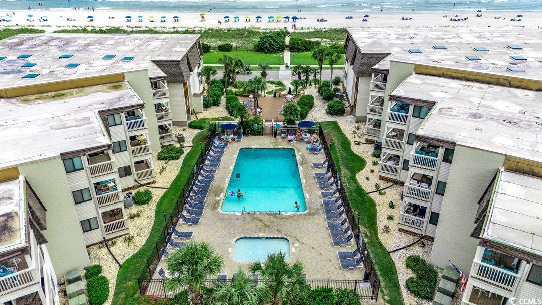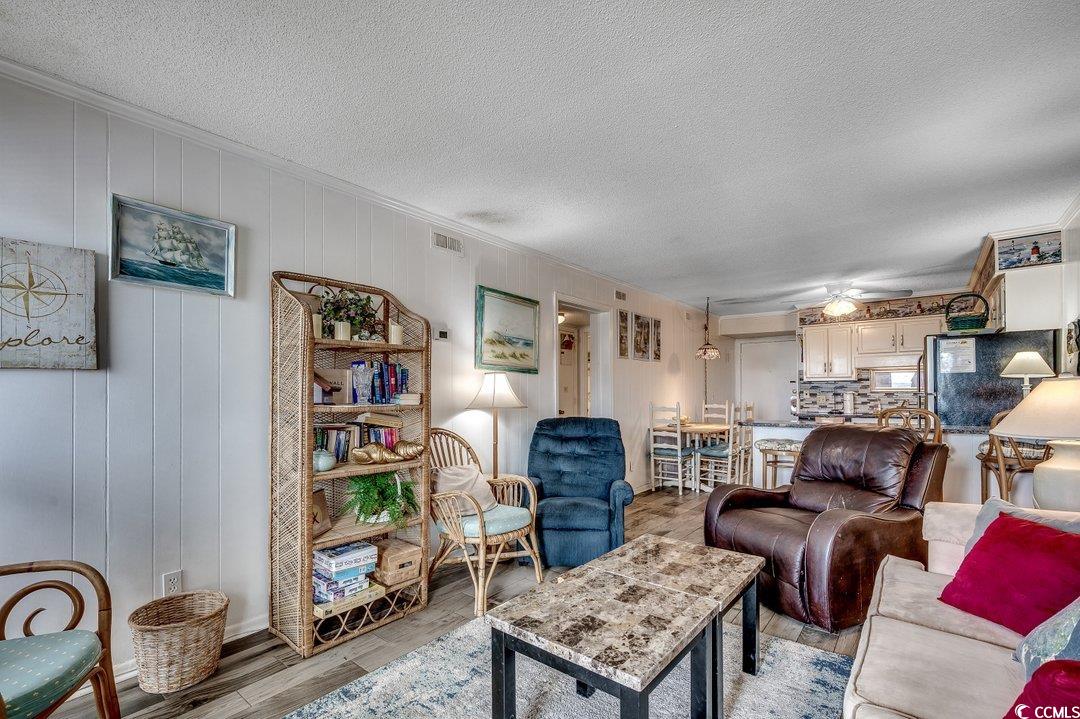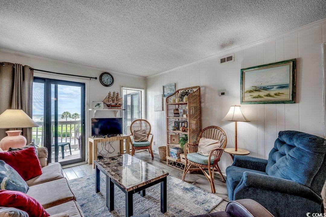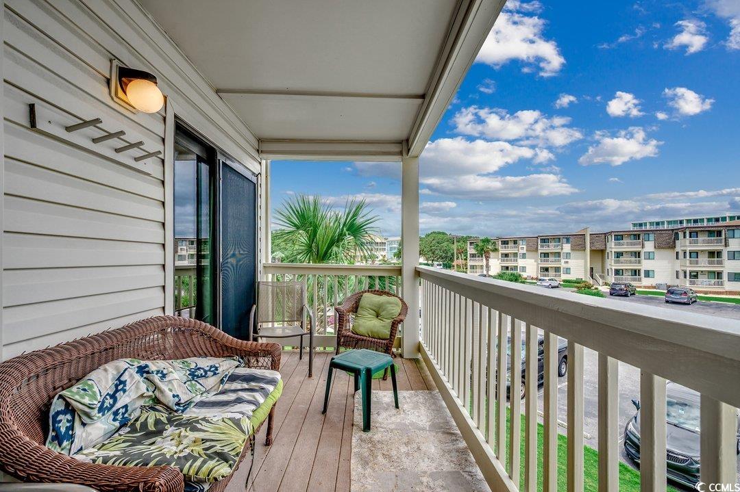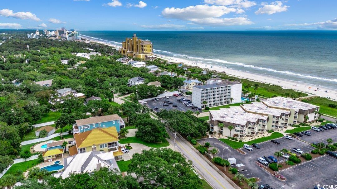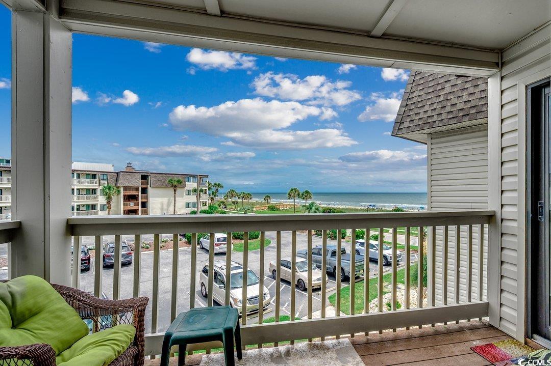 Enjoy ocean views from the balcony of this two-bedroom condo at Ocean Forest Villas in Myrtle Beach. This unit is the first one back from the direct oceanfront, offering a great combination of views and value. It comes fully furnished and accessorized. Key updates include a new central air system and a tankless hot water heater, both installed in 2022. A new microwave/vent hood was added in January 2025, and the primary bathroom shower was replaced in 2024. The kitchen features stainless steel appliances, granite countertops, and a tiled backsplash. Flooring includes ceramic plank in the living area and marble tile in the bathrooms. Community amenities at Ocean Forest Villas include two pools, hot tubs, picnic areas, and easy beach access. The complex is located in the quieter “Cabanna” section of Myrtle Beach, just about a mile from the downtown area, and is framed by the well-known “Golden Mile” to the north and south. While tucked away from the busiest parts of town, it still provides convenient access to top local destinations such as Broadway at the Beach, The Carolina Opry, Restaurant Row, and the Myrtle Beach Boardwalk. The low HOA fee covers water/sewer, cable, internet, pest control, and trash collection. All information is deemed reliable, but it is the responsibility of the buyer and their agent to verify.