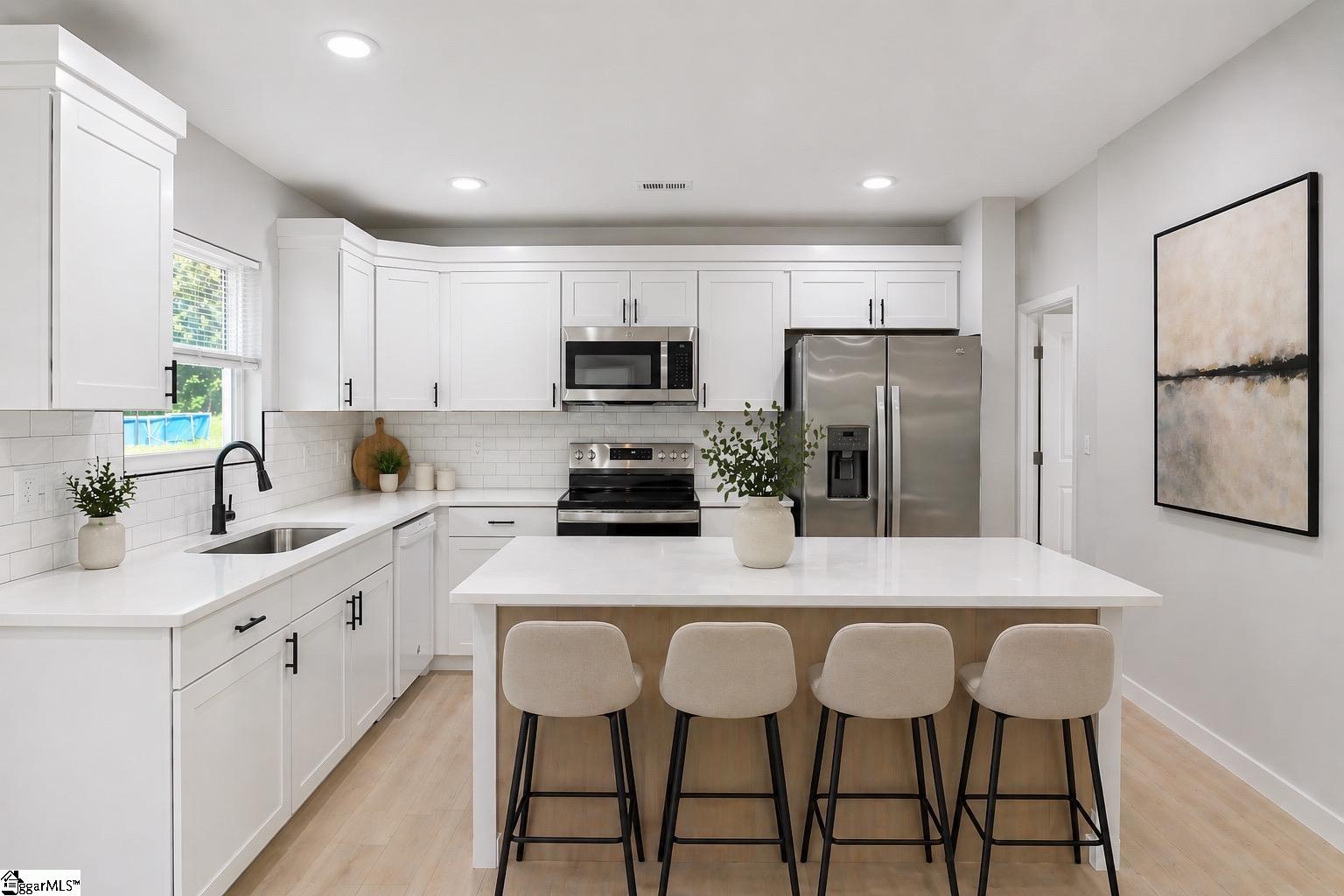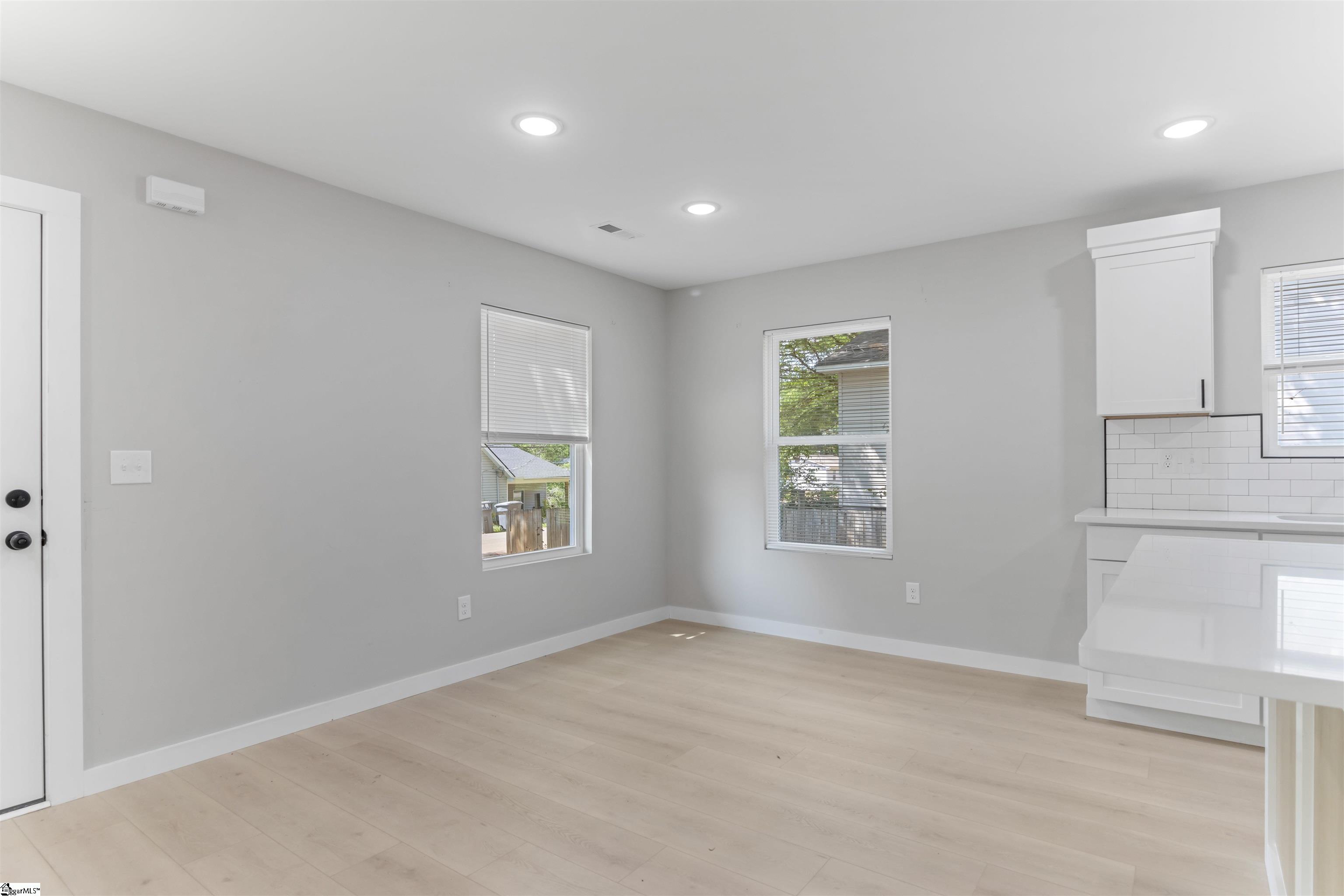 Enjoy the perfect blend of comfort, convenience, and modern design in the heart of Spartanburg. Built in 2025, this 3-bedroom, 2-bath home offers 1,080 sq ft of modern. The open floor plan features luxury vinyl plank flooring throughout, creating a clean and durable space. The kitchen is designed for both everyday living and entertaining, with quartz countertops, a designer backsplash, ample cabinetry, a spacious island, and a refrigerator included. A walk-in laundry room adds extra convenience and storage. Step outside to a large yard, perfect for hosting outdoor gatherings or relaxing. With no HOA, you have the freedom to enjoy and customize your property. Enjoy true downtown convenience with Wofford College within walking distance and the Amtrak station approximately 1.5 miles away. You’re also just minutes from Spartanburg’s dining, shopping, and entertainment, and about 4 miles from Costco and Westgate Mall. A great opportunity for first-time buyers, downsizers, or investors looking for a move-in ready property with modern finishes.
