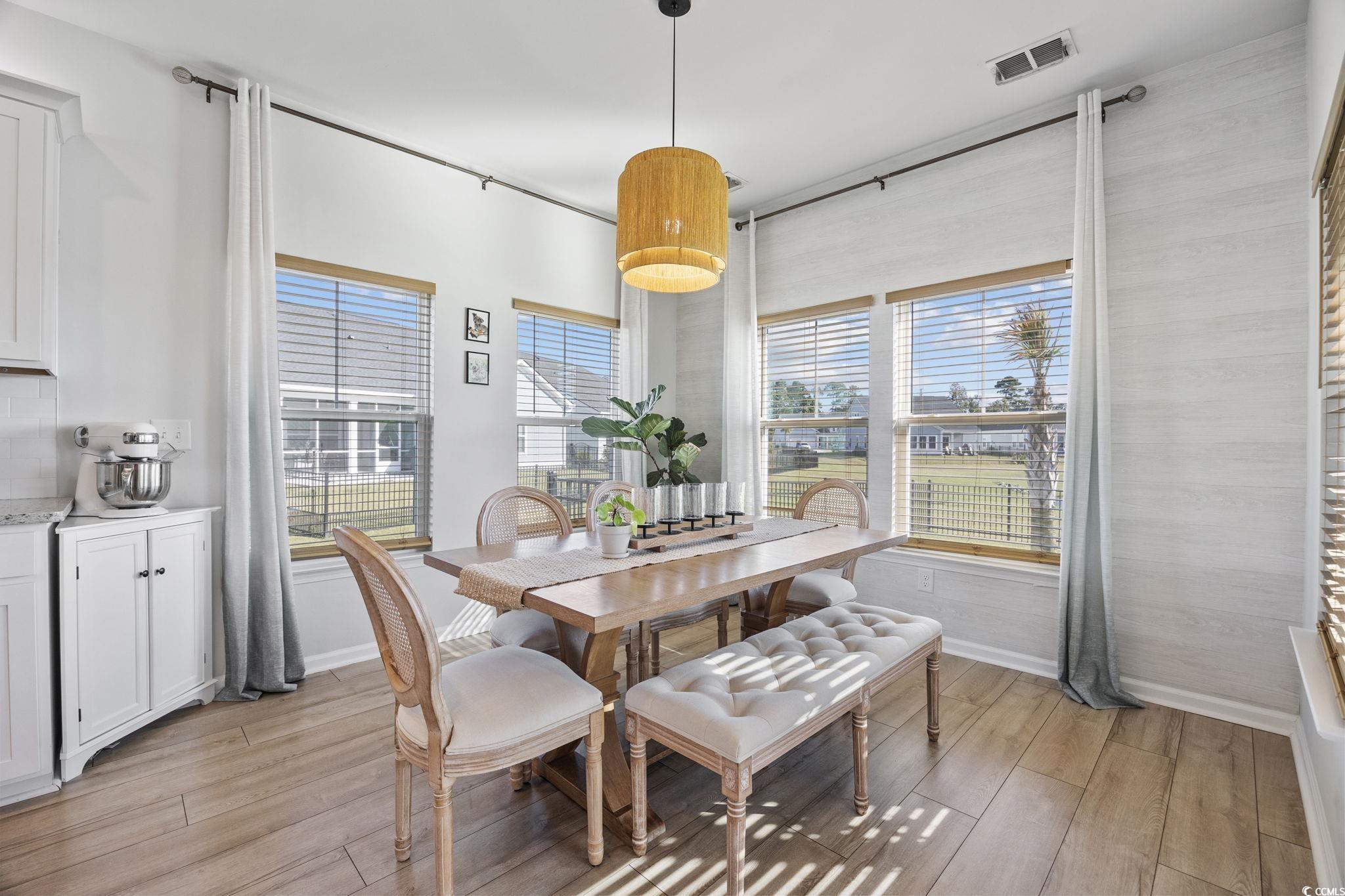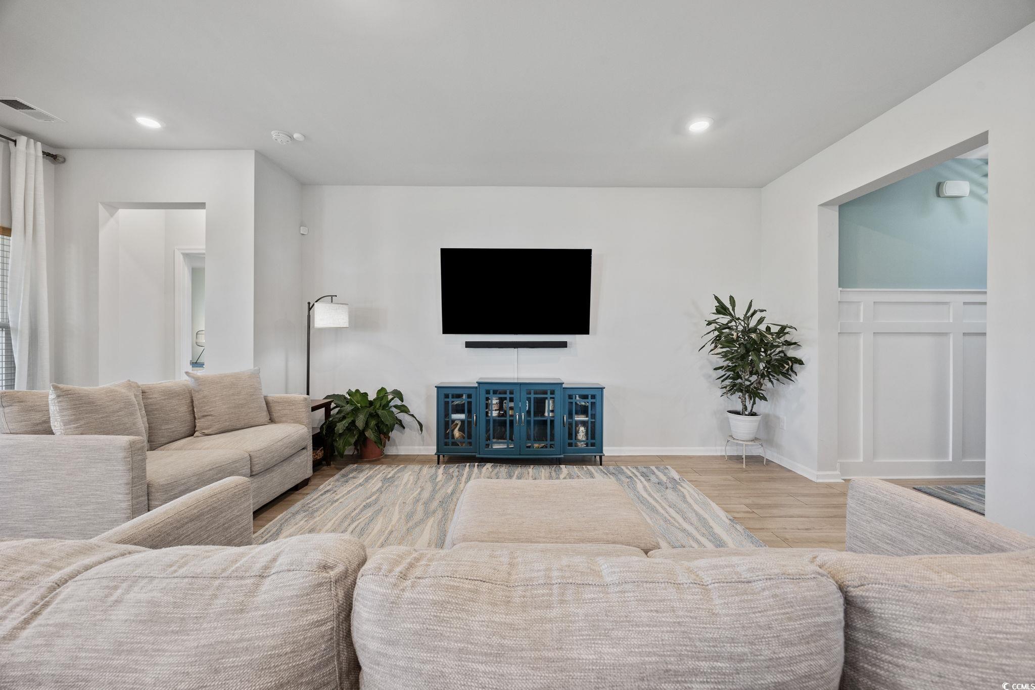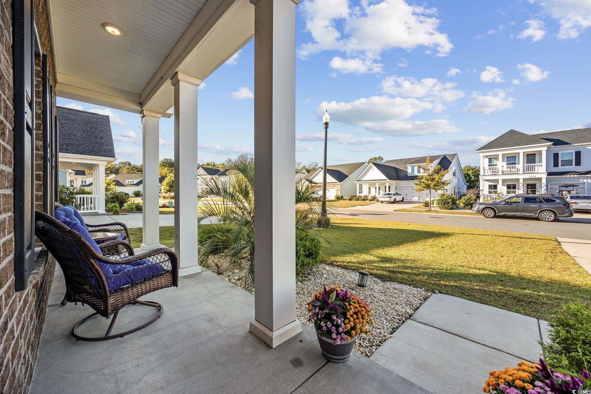 Welcome to this remarkable 5-bedroom, 3-bath home in The Preserve at Pine Lakes, a premier golf course community in Myrtle Beach. Nestled on a scenic lake lot, this home showcases timeless Southern charm with a spacious front porch, hurricane shutters meeting the SC Safe Home Opening Protection Guidelines, and beautiful landscaping featuring Carolina river rock, two backyard palm trees, and Pindo and Sago palms in the front. Step inside to a custom entryway with elegant wainscoting that sets the tone for the rest of the home. The layout is bright and inviting, with abundant windows dressed in cordless faux wood plantation blinds, upgraded light fixtures, and ceiling fans throughout. The heart of the home is the upgraded kitchen, complete with a brand-new stove and double oven, a separate pantry, above-cabinet lighting, and plenty of counter space for everyday cooking and entertaining. The adjoining living areas flow seamlessly, perfect for gatherings with family and friends. The main level offers comfortable bedrooms, while two additional bedrooms upstairs provide ideal space for guests, a home office, or a quiet retreat. The laundry room has been enhanced with newly added shelving, and a washer and dryer are included for convenience. A Rinnai tankless water heater with a full freeze protection kit ensures comfort and efficiency year-round. Enjoy peaceful mornings and relaxing evenings on the large front or back porch. The single-pane screened-in back porch features maintenance-free composite decking and overlooks serene lake views. A golf cart ride will take you straight to the beach, and furniture and golf cart are negotiable. Residents of this sought-after community enjoy resort-style amenities including a sparkling pool, walking trails, and tennis/pickleball courts. Located just minutes from the beach, dining, entertainment, and Highway 17, this home offers the perfect blend of lifestyle, location, and luxury.