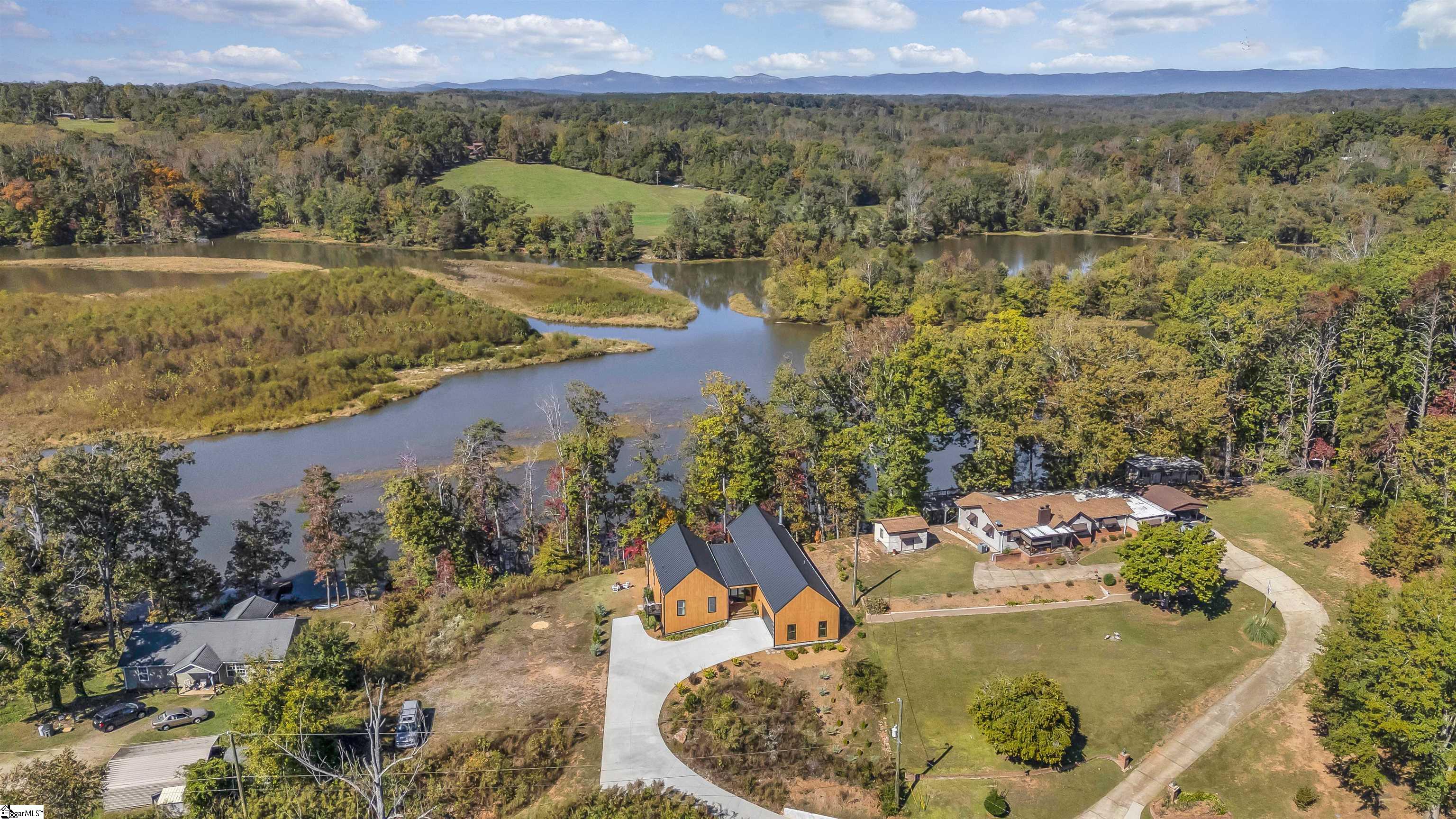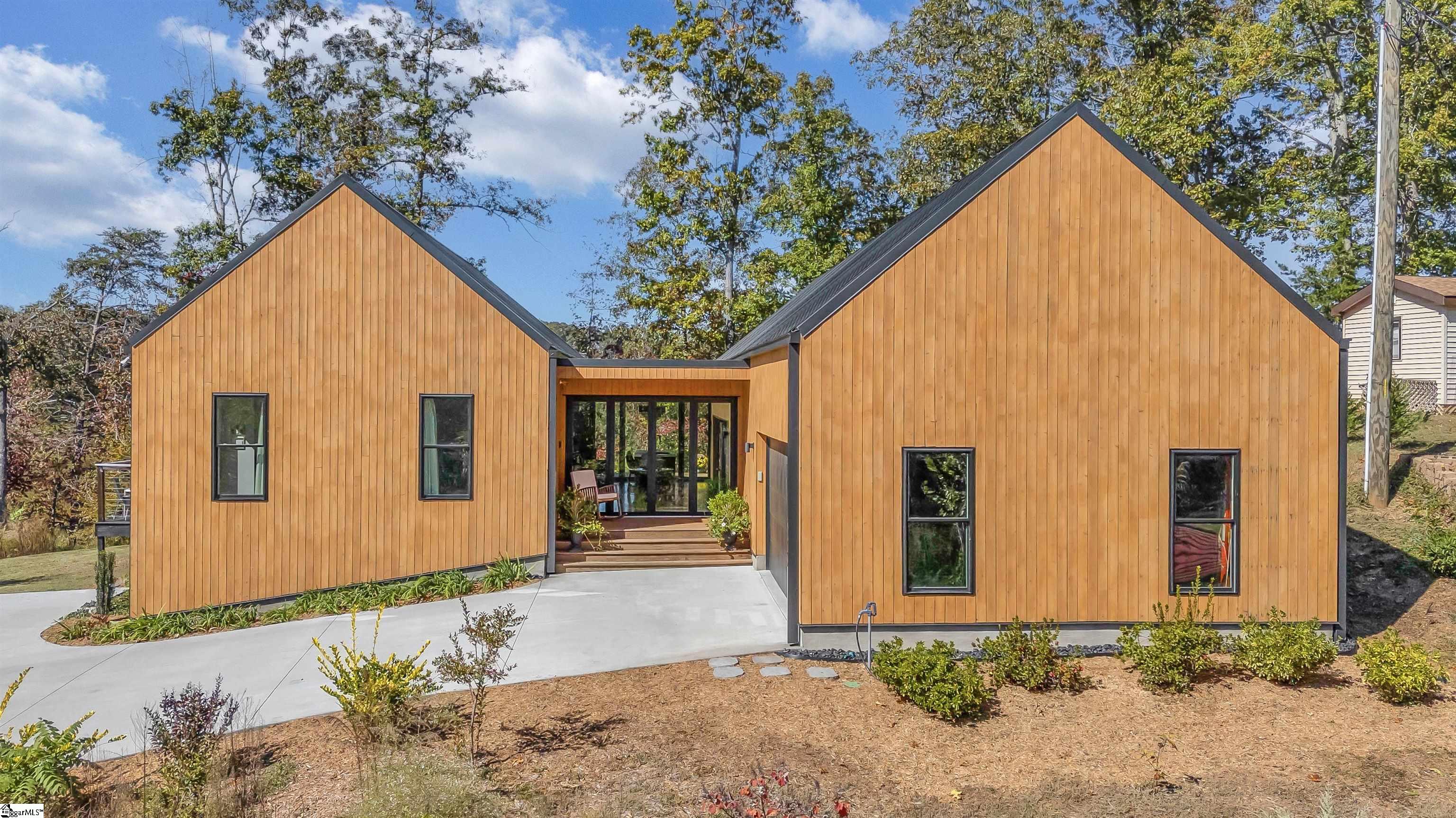 Welcome to your new dream home that has been custom built by one of Greenville's finest architects from the foundation up with so many amazing features both inside and out on Saluda Lake which is over 300 acres of incredible and clean water with no boat or motor restrictions with ample wildlife, incredible fishing, and so much more! This custom built home oozes with character tons of modern contemporary details throughout with exterior features such as cedar siding with water-based natural cedar paint for longevity, McElroy commercial grade 16 inch standing seam metal roof with a 40 year warranty, commercial grade box gutters and downspouts, amazing covered decks, grilling and entertainment areas and a covered front welcoming front porch as well! This home sits on top of this amazing lot with incredible views of the lake from the entire rear of the home with views from the main living and dining and kitchen areas, as well as from the primary bedroom suite throughout the year! You won't believe the multi nana type door systems that ALL open up to enhance this already amazing floor plan in that these doors bring the exterior rear porch (complete with ice a current volcanic pumice wood-burning fireplace with covered lounge area and vaulted wood plank ceilings with additional grilling and chilling deck) into the inside the living spaces!!! You will absolutely love this all one level home with an upstairs bonus room or office loft area where you truly will find such a well designed quality over quantity layout! The main living area is open to both the dining area, as well as the modern gourmet kitchen which comes complete with large entertainment island and high end, sleek, modern fixtures, complete with a bespoke, modern black slate ceiling! The master bedroom suite is on the main level and has a vaulted ceiling and direct access to the rear cover deck with wood-burning fireplace, a large walk-in closet with industrial features and fixtures complete with double vanities, a walk in shower with multi jet heads and a sliding glass door and easy access to the large laundry room complete with sink and additional storage space. Above the master is the bonus room which doubles as a loft or home office. The two additional guest bedrooms both have their own private bathrooms (one with custom tiled walk-in shower, and the other with a tub- shower combination) Both bedrooms come with with double action doors and one has mother-in-law suite setup! Additional features this home has to only name a few are beautiful hardwood floors throughout, vaulted ceilings, incredible natural light, an oversized attached 2-car plus garage, charcoal water filtration system, encapsulated crawlspace with dehumidifier, Tesla wall charger, high-end fixtures and features throughout, the list goes on and on! The icing on the cake is your own private dock at the lake with a 40 foot gangway, an outdoor shower and hose at dock and a 16 foot Jet Ski! You truly can't go wrong if you want to be on a lake and still remain within 15 minutes to downtown Greenville, South Carolina. Come see 562 Club Drive today and prepare to fall in love!