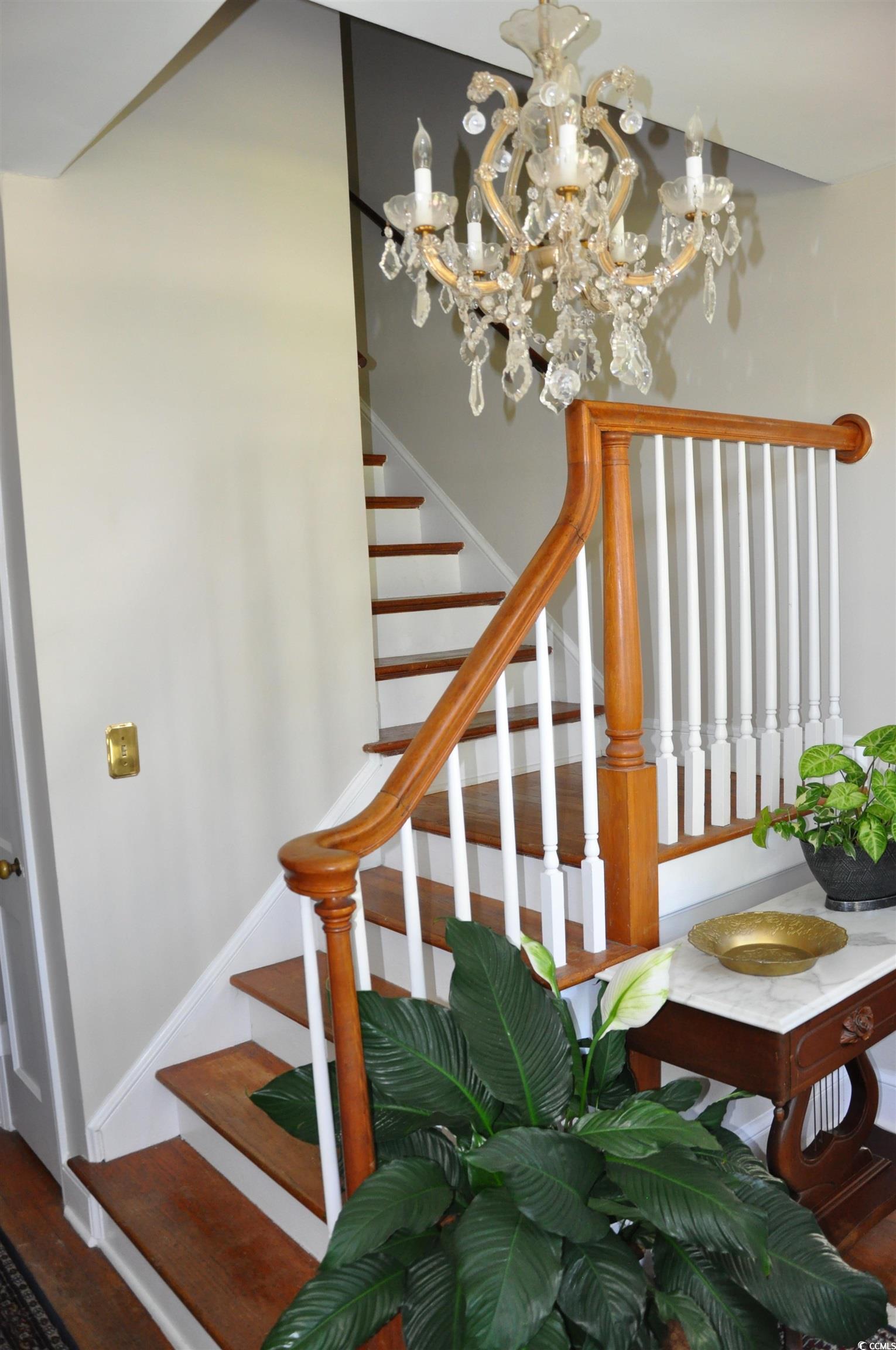 Beautiful and very well maintained Southern Georgian Colonial style home with No HOA. It is located only 30 minutes from North Myrtle Beach and Little River. This home was built with hand-picked rough cut lumber and is heavily constructed. The home captures the southern charm from the early 1950's and welcomes you as you step in the front door where you are greeted by a lovely staircase which leads to 2 oversized bedrooms and a full bathroom upstairs. The downstairs boasts of an oversized family room with a gas fireplace with an adjacent formal dining room and separate breakfast area perfect for entertaining and relaxing with family and friends. The kitchen has a Wolf gas cook top, lots of cabinet space, Quartz countertops, Marble backsplash, and a large breakfast area which could also be used as a Carolina Room. There is also a spacious laundry room and an attached 2 car garage. The Master suite and a guest bedroom are located on the 1st floor. The guest bathroom has marble flooring and a large marble stand-up shower. This home also has beautiful hardwood floors and tile throughout. The roof was replaced in 2023. The downstairs HVAC was replaced in 2023. Freshly painted interior and exterior in 2023. Situated on .68 of an acre gives lots of space for parking of boats, vehicles, etc. This home is located just a short drive from the Grand Strand beaches, Hospital (1 mile away), shopping, schools and restaurants.