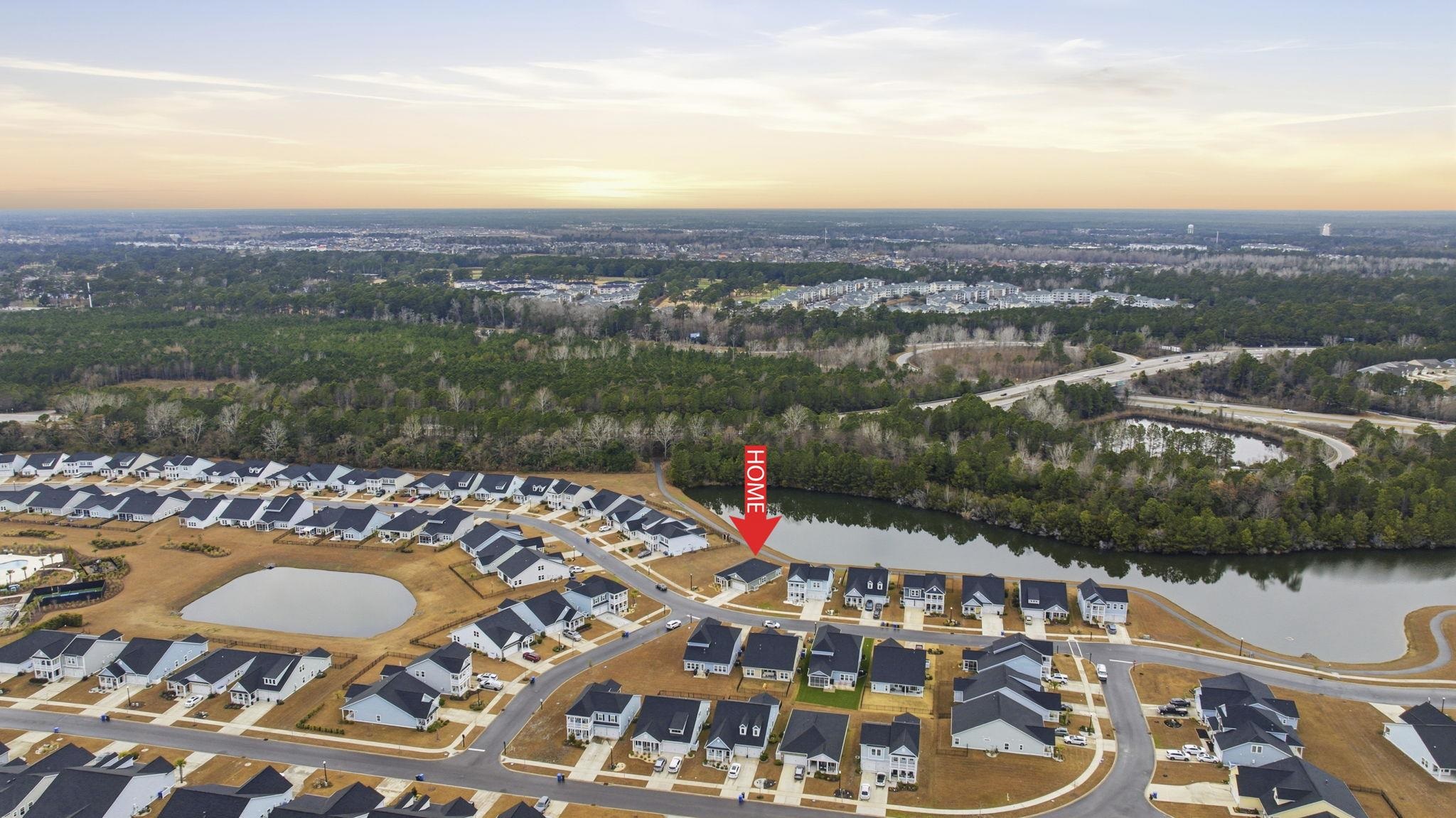 Welcome home to this stunning 3-bedroom, 2-bath lakefront home with a flex room, featuring fresh paint throughout with a stamped concrete patio that adds style and charm to the outdoor space. Perfectly situated on the water, this home offers an attached 2-car garage, professional landscaping, and a warm, inviting interior. Step through the foyer into an open-concept living area filled with natural light and serene lake views. The kitchen is the heart of the home, ideal for everyday living or entertaining, and showcases stainless steel appliances, a gas range, granite countertops, custom tile backsplash, and a breakfast bar with island. The dining area is surrounded by windows and opens directly to the screened back porch, creating a seamless indoor-outdoor living experience. The primary suite features a tray ceiling, peaceful lake views, and an ensuite bath with tile flooring, a walk-in glass shower, and a spacious walk-in closet. The flex room also boasts a tray ceiling and French doors, making it perfect for a home office, den, or guest space. Two additional bedrooms share a separate full bath, and a dedicated laundry area adds convenience. Window treatments convey, along with the washer and dryer and the TV in the flex room. Furniture is negotiable, offering a move-in-ready opportunity. Outside, enjoy the screened back porch with ceiling fan, back patio, and an epoxy-finished garage. A golf cart ride takes you straight to the beach, and residents of this sought-after community enjoy resort-style amenities including a sparkling pool, walking trails, and tennis/pickleball courts. Conveniently located just minutes from the beach, dining, entertainment, and Highway 17.