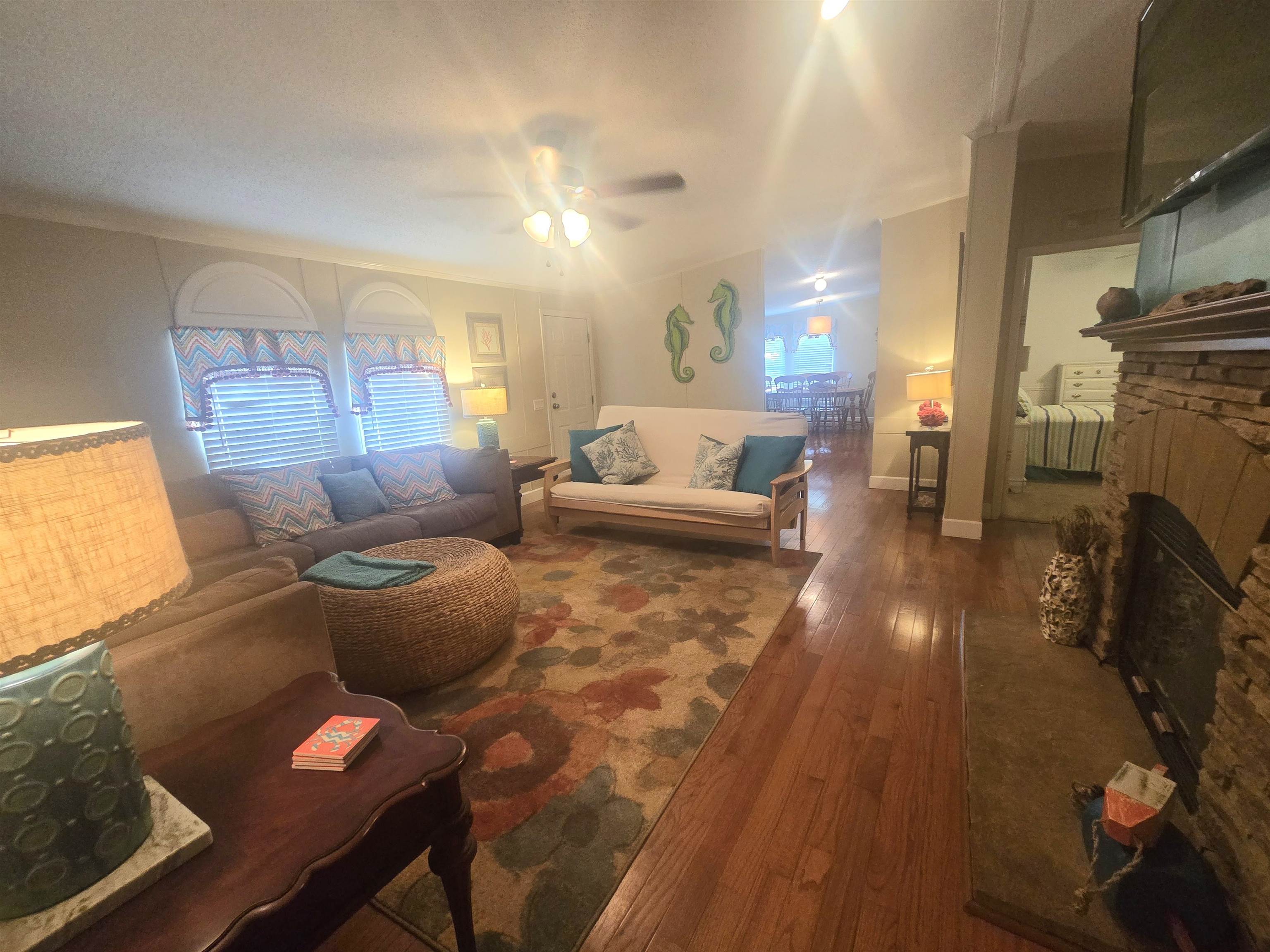 Welcome home! This beautiful home comes completely furnished with real hardwood and ceramic tile floors. It also features a fireplace in the living room, granite countertops in the large eat in kitchen as well as both bathrooms. The home has custom window treatments and 2 inch blinds. If that wasn't enough after a day a the beach you can enjoy the large vinyl outdoor shower. For entertaining, you can enjoy a large deck with a small patio adjacent to it or you can just put your feet up and relax. Home also comes with a large detached shed which has power. Waterford Oaks is a well sort after mobile home community on leased land. It features a community fishing pier, gazebo and bat ramp which gives you direct access to the marsh and inlet.