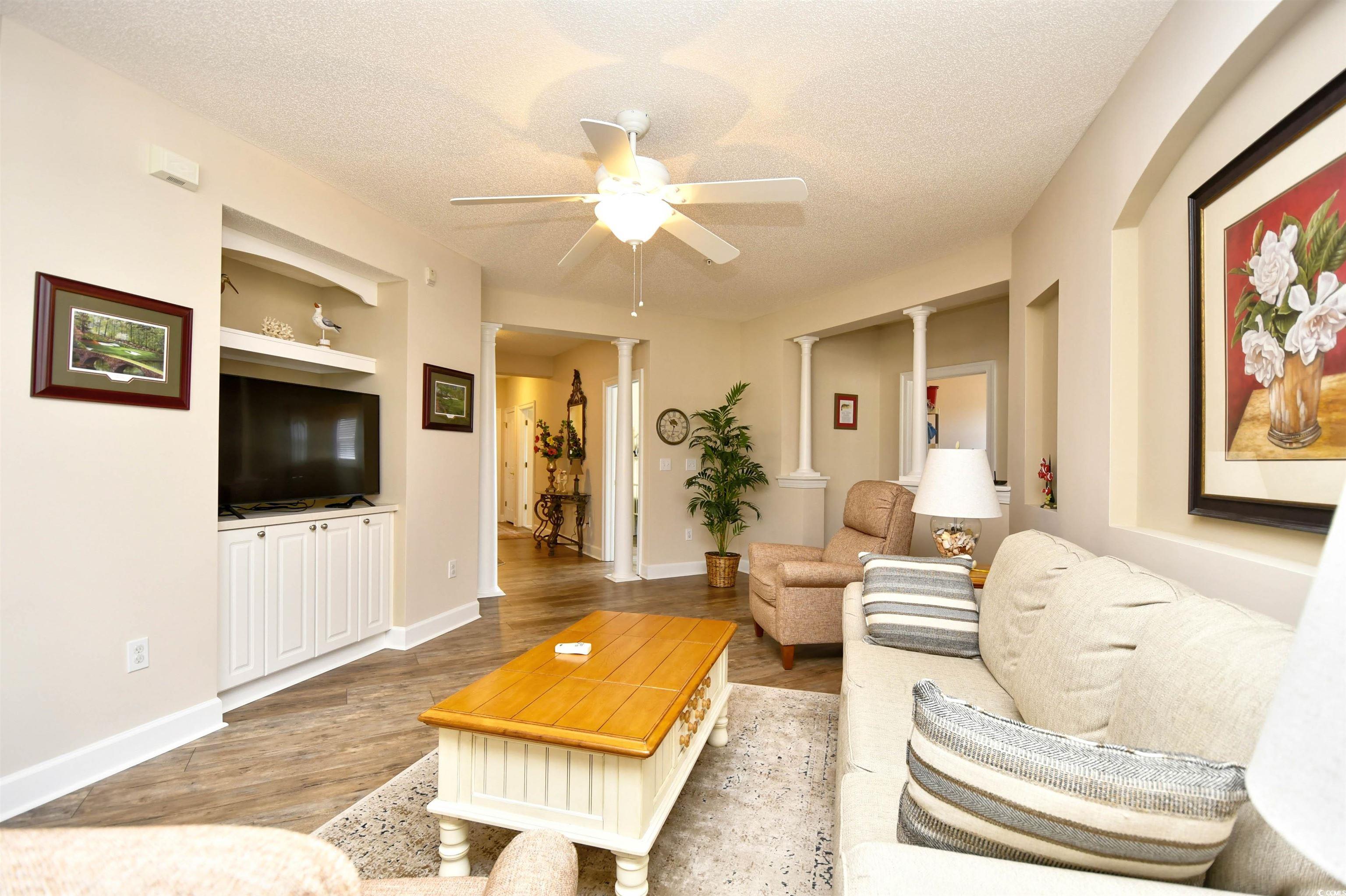 Resort style living awaits you! Top floor, end unit in elevator building with lots of upgrades, a TRANSFERABLE GOLF MEMBERSHIP and oversized garage that holds a car & golf cart. This well maintained, spacious 3BR/3BA (two are master suites) in Greenbriar provides lots of natural light as you enter into the spacious living area. The condo features beautiful high quality wide plank LVT flooring in all main areas & bedrooms, and the HVAC and hot water heaters were both replaced in 2018. The kitchen has been upgraded with all new SS appliances, quartz countertops, backsplash, sink, garage disposal & faucet. The entire condo has been repainted, has a new washer & dryer, blinds and additional upgrades throughout. You can enjoy the view of the 3rd hole of the Greg Norman course while drinking your morning coffee or relaxing on your balcony with friends at the end of the day. This balcony has a new EZ Breeze window system that will allow you to enjoy this space year round. This may become your favorite spot to unwind. When you're ready to enjoy some poolside time just walk out your front door to the inviting community pool that is located just steps away. Whether you're purchasing your full time residence, summer getaway or investment opportunity, this is a property not to miss. Barefoot Resort is home to 4 signature golf courses - the Norman, Fazio, Love, and Dye course, in addition to a Clubhouse, Driving Range, Marina, and Restaurants. It also offers top of the line amenities including a resort style pool that overlooks the ICW, seasonal shuttle service to and from the beach, beach parking and a private oceanfront beach cabana. With Barefoot Landing adjacent to the neighborhood, and only a golf cart ride away, you have shopping, dining and entertainment at your fingertips. What are you waiting for; book a showing now.