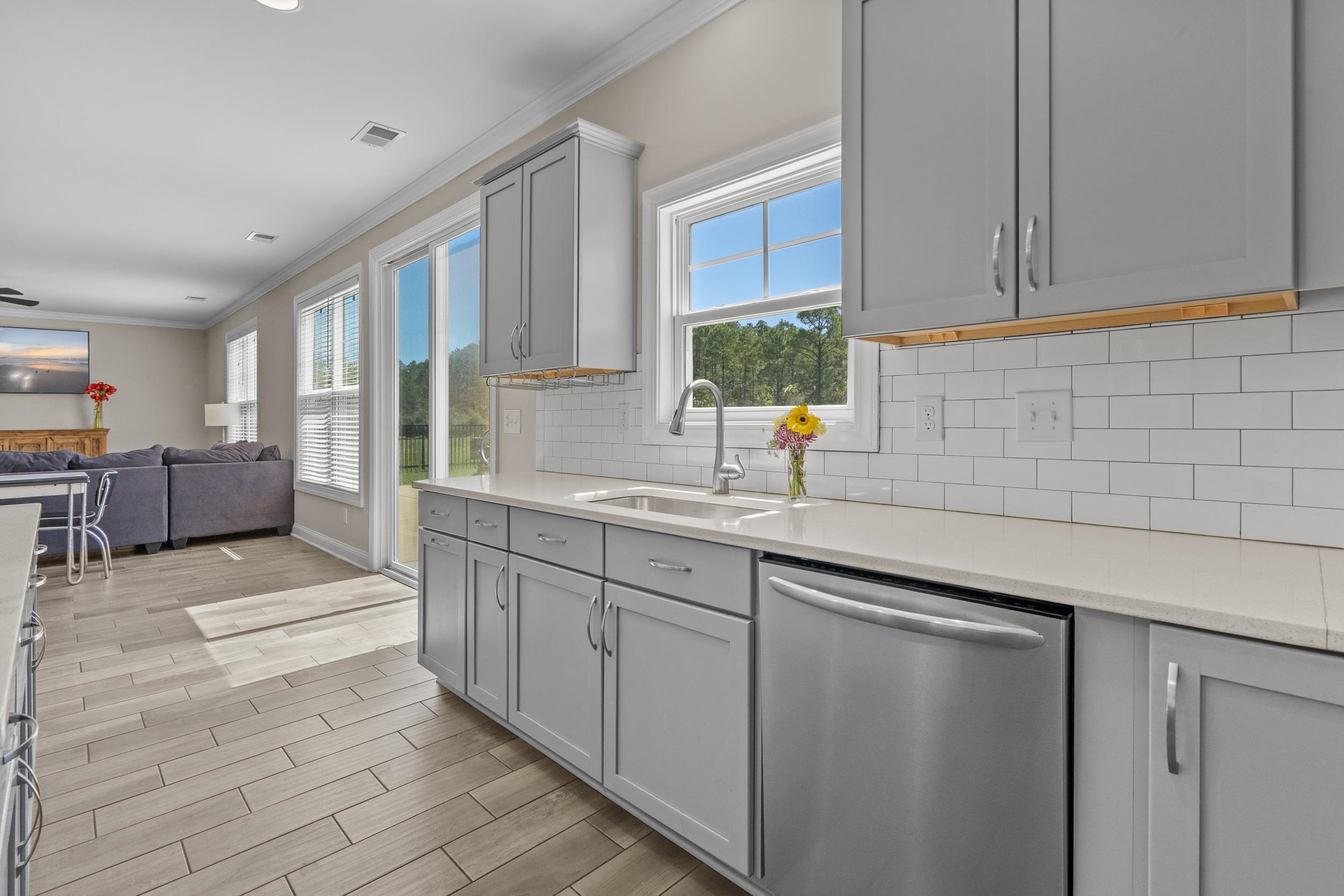 Welcome to 5658 Camilla Ct, a stunning 6 bedroom, 4 bathroom home offering over 4,200 heated square feet of thoughtfully designed living space in the heart of The Farm at Carolina Forest. Situated on an oversized 0.35 acre cul-de-sac lot backing to a private wooded backdrop with no rear neighbors, this home delivers the space, style, and upgrades today's buyers are looking for. From the moment you arrive, the professionally landscaped curb appeal with curbed flower beds, mature plantings, and a grand three-car garage complete with an EV charger sets the tone. Step inside and you will immediately notice the large format tile flooring that flows throughout the main living areas, giving the home a clean, polished look from room to room. The formal dining room features a tray ceiling with crown molding and a designer chandelier, while the spacious family room opens directly to the backyard through a glass slider, making indoor-outdoor living effortless. The kitchen is the true heart of this home. Custom gray shaker cabinets, quartz countertops, a subway tile backsplash, gas cooktop, double wall ovens, and a center island with bar seating make this space as functional as it is beautiful. A built-in wine bar adds a custom touch that sets this kitchen apart, and crystal pendant lighting brings an elevated, designer feel throughout. The bathrooms feature granite countertops, and a tankless hot water heater means you will never run out of hot water no matter how many people are in the house. The first floor also features a bedroom and full bath, perfect for guests or multi-generational living. Upstairs you will find the primary suite, four additional bedrooms, a dedicated laundry room, and a massive loft that serves as a second living space, media room, or play area — the flexibility is unmatched. Step outside to one of the largest backyards in the neighborhood. The extended concrete patio offers generous space for outdoor dining, entertaining, and relaxing, all surrounded by a fully fenced yard with an irrigation system keeping the lawn looking its best year round. The peaceful wooded view and total privacy with no rear neighbors make this backyard a true retreat. This is a natural gas community, giving you the efficiency and performance that today's buyers prefer for cooking, heating, and more. The Farm at Carolina Forest is one of the most amenity-rich communities on the Grand Strand, offering two resort-style pools, a fitness center, two clubhouses, a basketball court, and bike lanes and sidewalks throughout, all for a low monthly HOA fee. Award-winning Carolina Forest schools, shopping, dining, and the beaches of the Atlantic Ocean are all just minutes away. This one has the size, the upgrades, and the lot to stand out. Schedule your showing today!