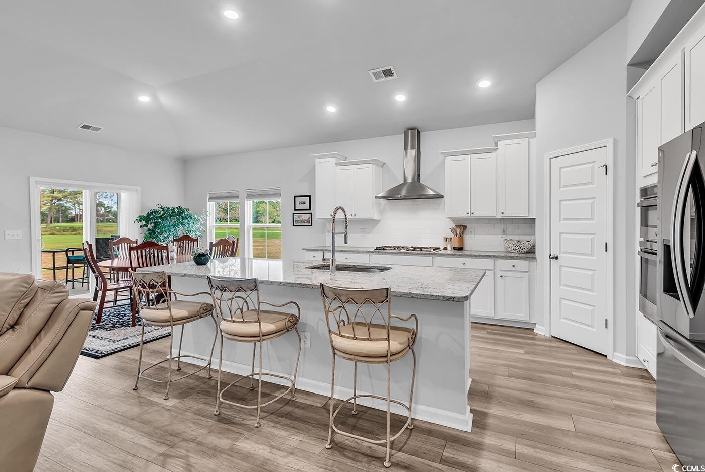 Located on a quiet cul-de-sac and nestled on one-third of an acre, this exceptional 3-bedroom home with an additional dedicated office and formal dining room offers the perfect blend of coastal luxury and modern design. Set on the 8th hole of Pine Lakes Country Club, Myrtle Beach's first golf course, established in 1927 and fully restored in 2021! This property delivers breathtaking views of rolling greens and serene ponds, all just a golf cart ride to the beach. Step inside to an expansive open floor plan highlighted by cathedral ceilings in the great room, a gorgeous fireplace, and luxury vinyl flooring throughout. The heart of the home is the gourmet kitchen, featuring granite countertops, stainless steel appliances, abundant cabinetry, and an oversized island perfect for entertaining. The spacious primary suite and two additional bedrooms offer comfort and versatility, while the private office provides the ideal space for work, hobbies, or an additional bedroom. Enjoy outdoor living year-round on the massive 26 x 22 screened-in porch, capturing sweeping views of the 8th fairway, greens, and tranquil water features. The community amenities include a large pool with a clubhouse, a kids' playground, and a pickleball court. Not to mention all the walking trails around the neighborhood. This is a rare opportunity to own a beautifully crafted, nearly new home on a historic and meticulously restored golf course, just minutes from the ocean. Schedule your showing today and experience the best of coastal golf-course living.