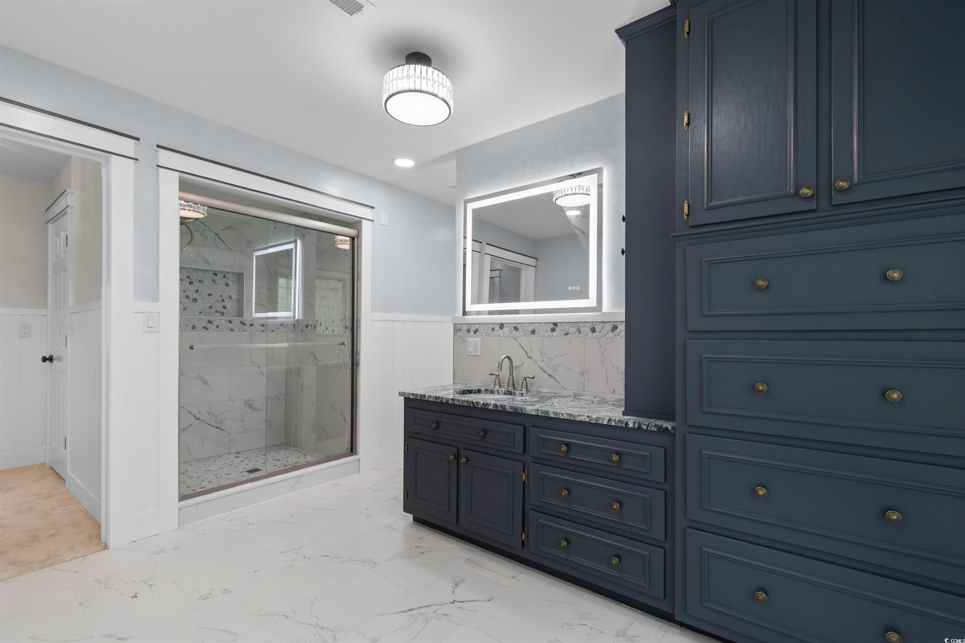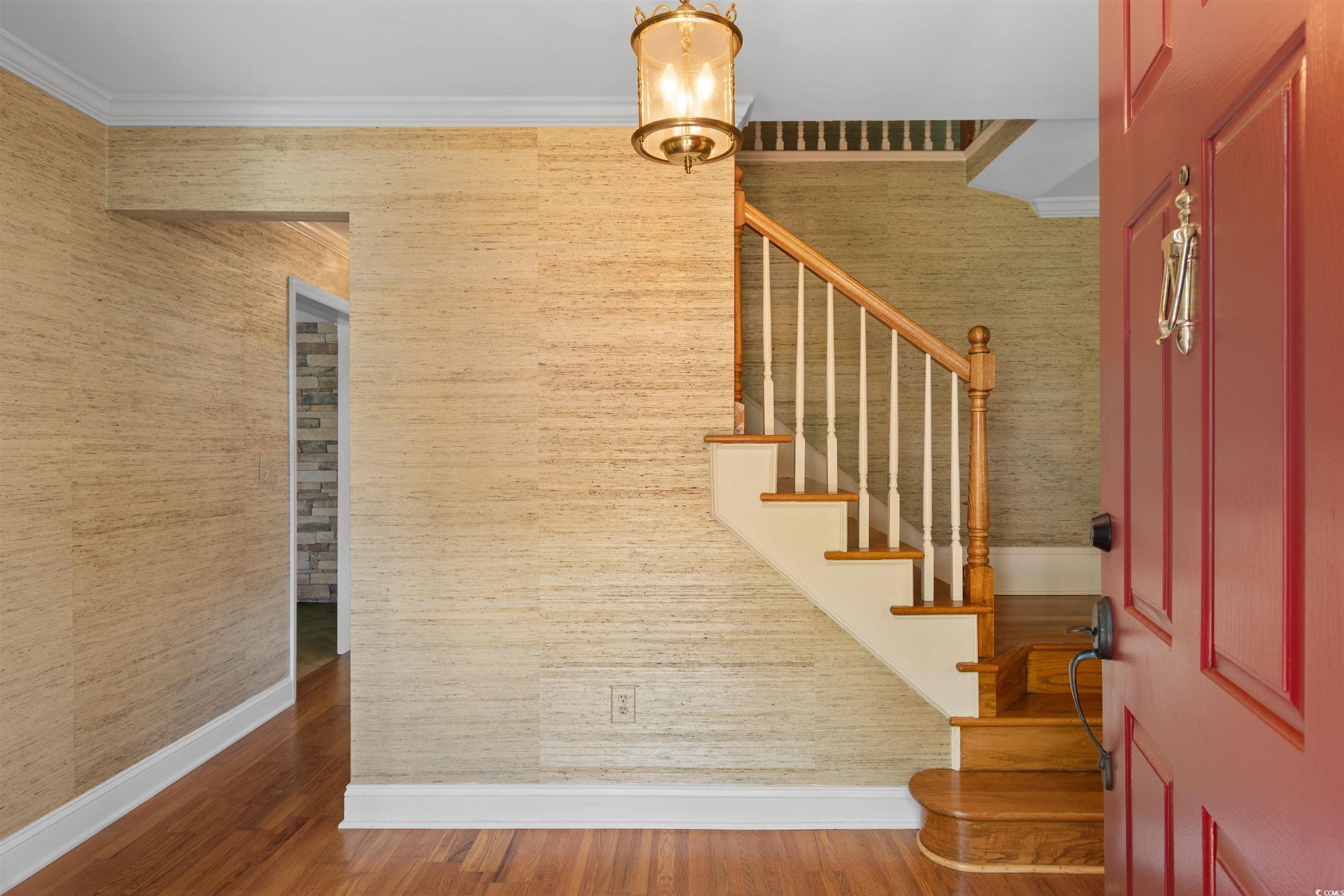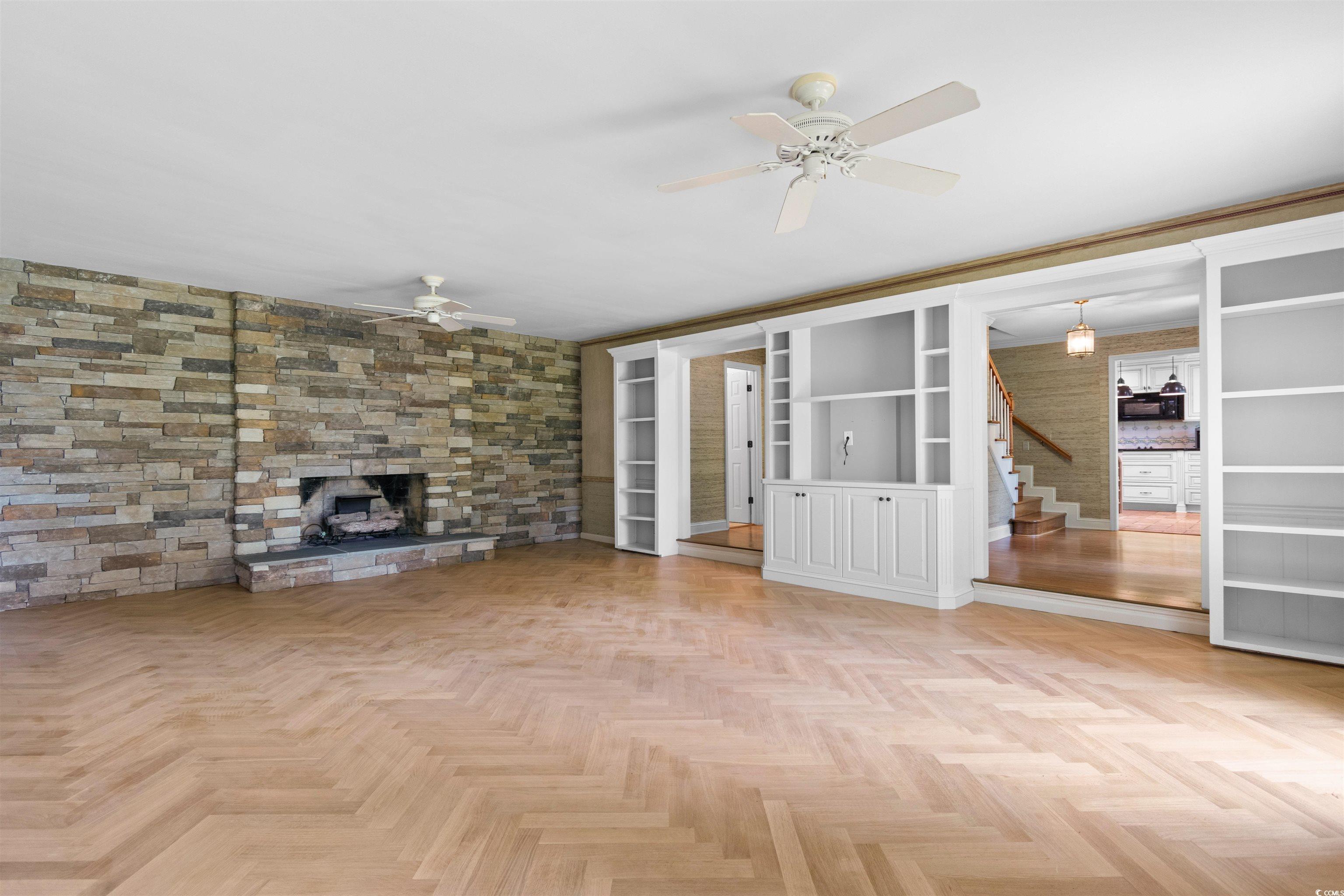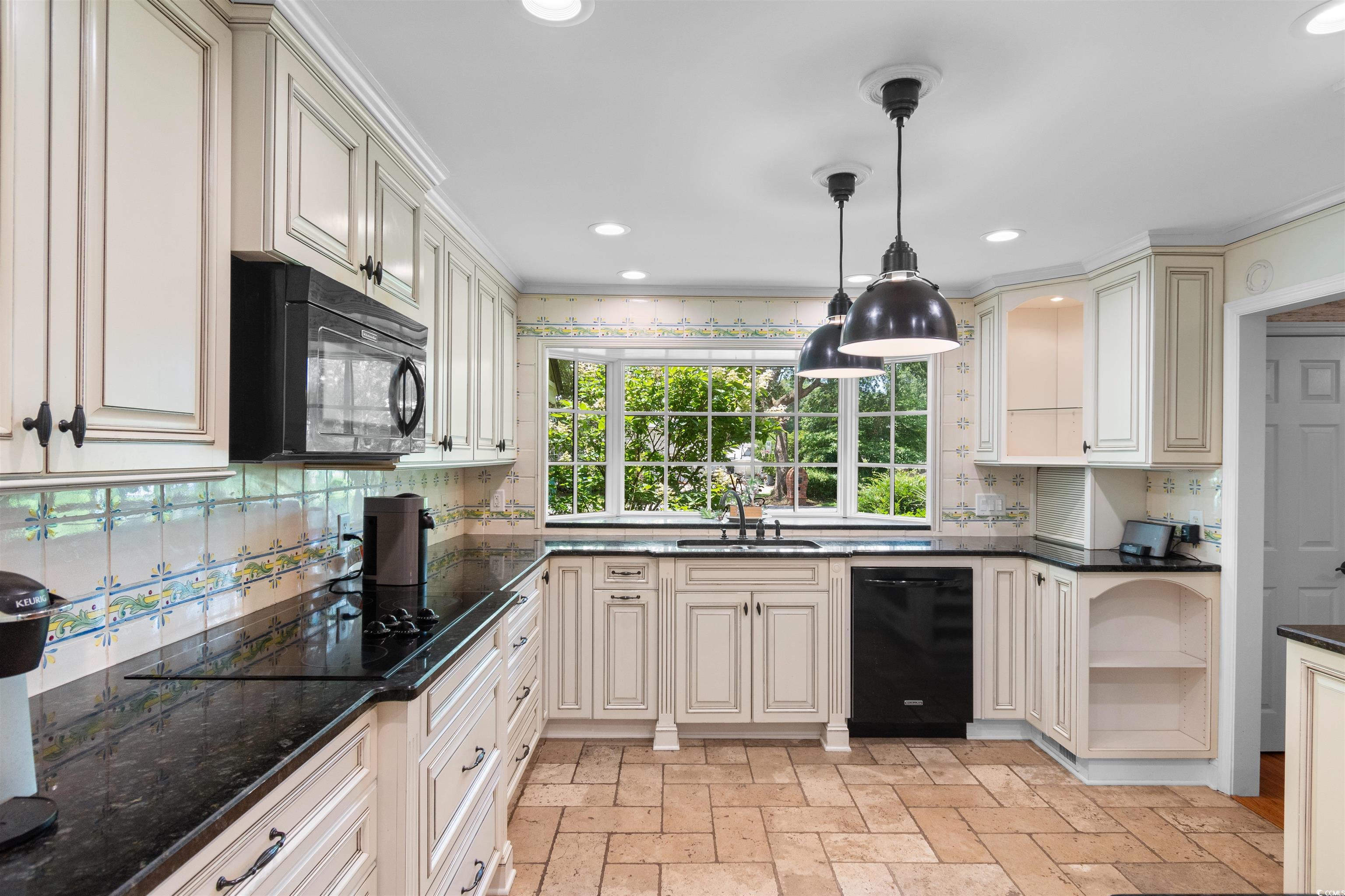 Custom Brick Home with Timeless Elegance and Thoughtful Upgrades This solidly built 4-bedroom, 2.5-bath brick home blends classic architecture with modern sophistication. A freshly painted interior and an attached 2-car garage make it truly move-in ready. At the heart of the home, the chef’s kitchen impresses with travertine marble flooring, custom cabinetry, hand-painted tile backsplash, Sub-Zero refrigerator, and a true double oven—perfect for everyday cooking or hosting with ease. The open dining space, also finished in travertine, flows into the welcoming family room for effortless gatherings. The elegant living room is a showstopper, featuring a custom Russian Oak herringbone-patterned floor, a full stone veneer fireplace wall with hidden outlets, and a gas fireplace that can easily be converted back to wood-burning. Built-in furniture-quality cabinetry adds both beauty and functionality. For added versatility, the family room and Carolina room include mini-kitchenettes, ideal for entertaining guests. The spacious primary suite offers two custom walk-in closets and a spa-like bath with separate vanities, a new tiled shower, and a soaking tub. Outdoors, the lush gardens create a setting reminiscent of Brookgreen Gardens, offering peace, privacy, and year-round beauty. A hard-wired propane generator provides peace of mind, while a private well supplies water for the pond and irrigation system—keeping the landscape vibrant and economical. This home is a rare find: thoughtfully updated, meticulously maintained, and designed for both comfortable living and elegant entertaining. * Measurements and square footage are approximate. The buyer/buyer's agent is responsible for verifying ALL information in the MLS including lot size, square footage, etc.