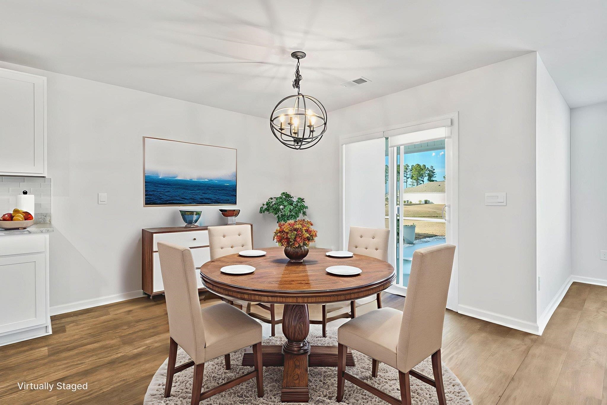 Gorgeous, well maintained four bedroom, two bathroom home located on a scenic lake in the popular Cali floor plan is priced to sell. This like new home offers a desirable split bedroom layout and an open concept design that seamlessly connects the kitchen and living areas, creating an ideal space for both everyday living and entertaining. The kitchen is guaranteed to impress, featuring stainless steel appliances, abundant cabinet and counter space, and an open layout overlooking the living area and backyard. All kitchen appliances convey, including the washer and dryer. The spacious primary suite offers a private retreat with a large walk-in closet plus an additional closet, a custom stand up shower, and a double sink vanity. The remaining bedrooms are generously sized and offer ample closet space. Step outside and enjoy beautiful pond and wildlife views from the oversized rear patio, perfect for entertaining, grilling, relaxing, or even adding a hot tub. A screened in porch provides additional outdoor living space to enjoy the peaceful setting. Upgrades and features include custom landscaping, luxury vinyl plank flooring throughout the living areas and primary suite, gutters around the entire home, a sprinkler system, a security alarm system, led surface mount lighting and a finished garage with painted walls and epoxy flooring. The patio also features a finished surface for a clean, polished look and much more! Located in The Reserve at Long Bay, this home is just a short drive to the beaches of Cherry Grove, as well as shopping, dining, and entertainment. Why wait for new construction? This home shows like new and is move in ready and all at a price that makes it an exceptional value.