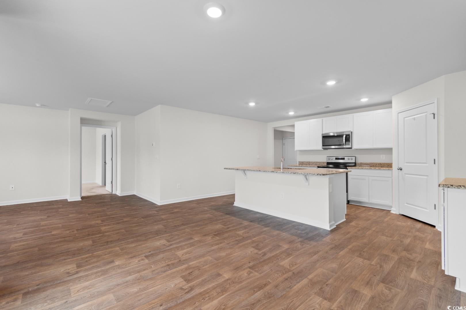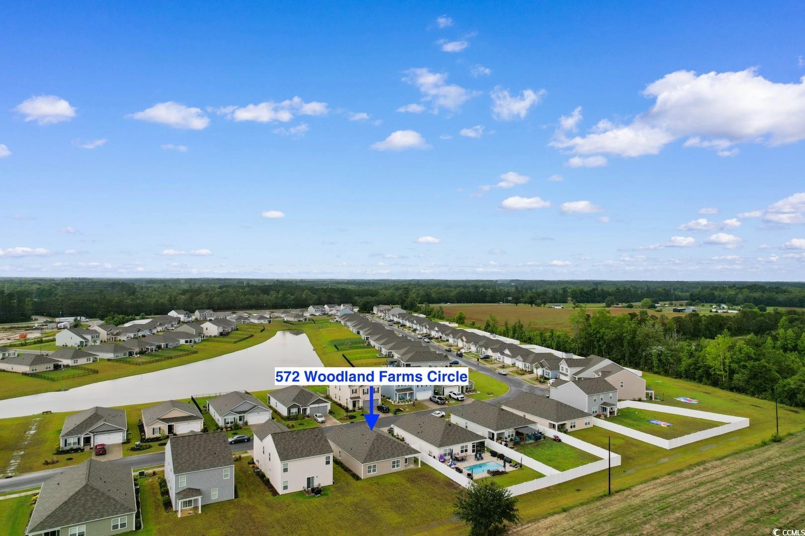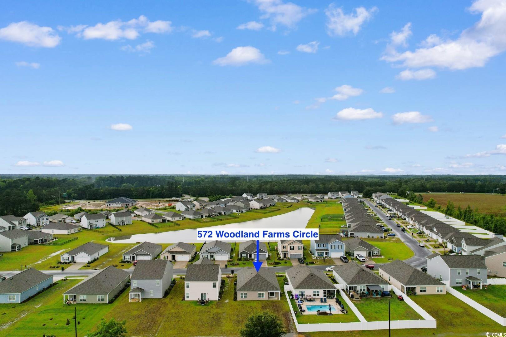 Discover modern elegance and comfort at 572 Woodland Farms Circle, a nearly new residence nestled in the charming Woodland Farms community of Aynor. This home features an open, light-filled living area perfect for both entertaining and relaxing. The kitchen, a culinary haven, boasts stainless steel appliances, a large island, granite countertops, a breakfast bar, pantry, and ample storage. The lavish master suite includes a spacious walk-in closet, double-sink vanity, and generous shower, providing a tranquil retreat. Outside, enjoy a covered back patio ideal for gatherings or peaceful moments. Conveniently located just off Highway 501, residents have easy access to Historic Downtown Conway, the Conway RiverWalk, Coastal Carolina University, and various golfing destinations, shopping, dining, and entertainment options. Experience the best of Aynor and schedule a showing today to explore this exceptional home!