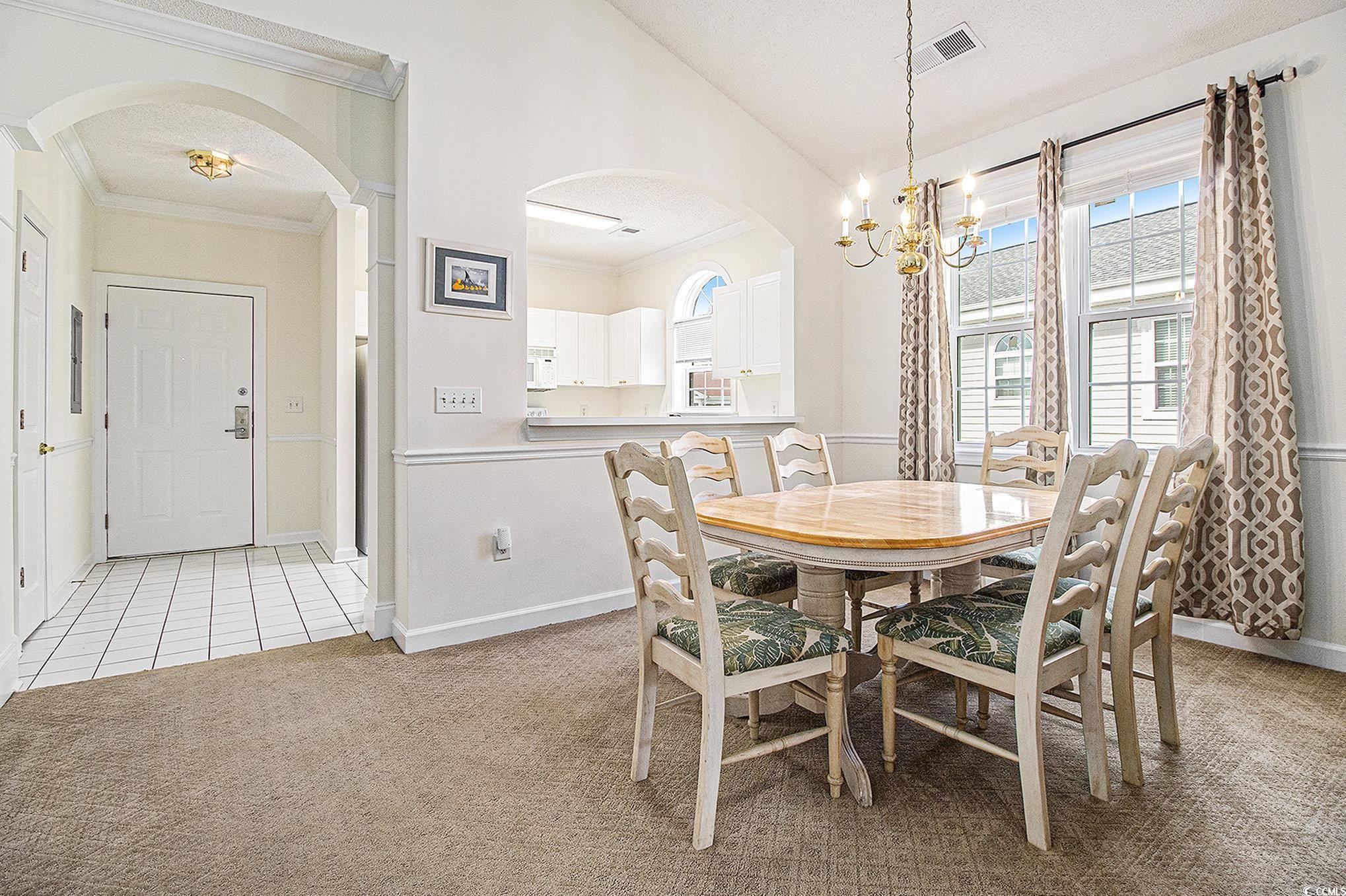 Welcome to your dream retreat in the coveted Cypress Bend community of North Myrtle Beach! This charming top-floor condo features 2 spacious bedrooms and 2 well-appointed bathrooms, making it perfect as a personal getaway or an investment opportunity. As an end unit, it boasts extra windows that flood the space with natural light, creating a warm and inviting atmosphere. The expansive kitchen is a delight for any home chef, offering generous cabinet and countertop space for all your culinary creations. Enjoy the cozy carpeted main living and dining areas, complete with vaulted ceilings that enhance the sense of space. Each bedroom has its own private bathroom featuring convenient shower-tub combos, while the master suite features a stylish tray ceiling and a large walk-in closet. This beautifully furnished condo is truly turnkey, equipped with an in-unit washer/dryer for your convenience, as well as an outdoor storage closet on the balcony for extra storage. Step outside to your private balcony, where you can unwind and savor serene golf course views. Residents of Cypress Bend enjoy exceptional amenities, including a refreshing outdoor community pool, grilling area, and access to a private beachfront cabana. Ideally situated just moments from Barefoot Landing, this condo is surrounded by some of Myrtle Beach's finest dining, shopping, golf, and entertainment options. Whether you're looking for a vacation retreat, a forever home, or a lucrative rental investment, this condo offers the ideal mix of comfort and versatility. Don't miss out on this incredible opportunity, schedule your showing today!