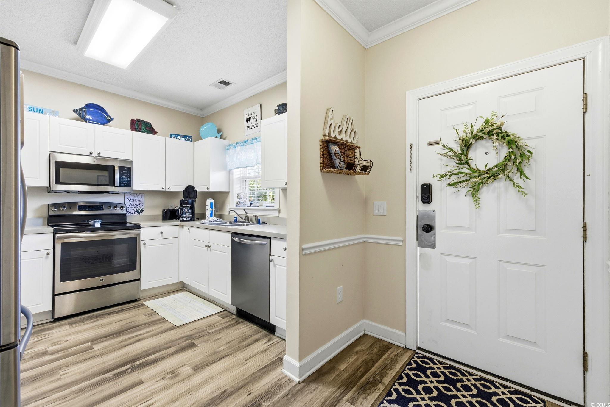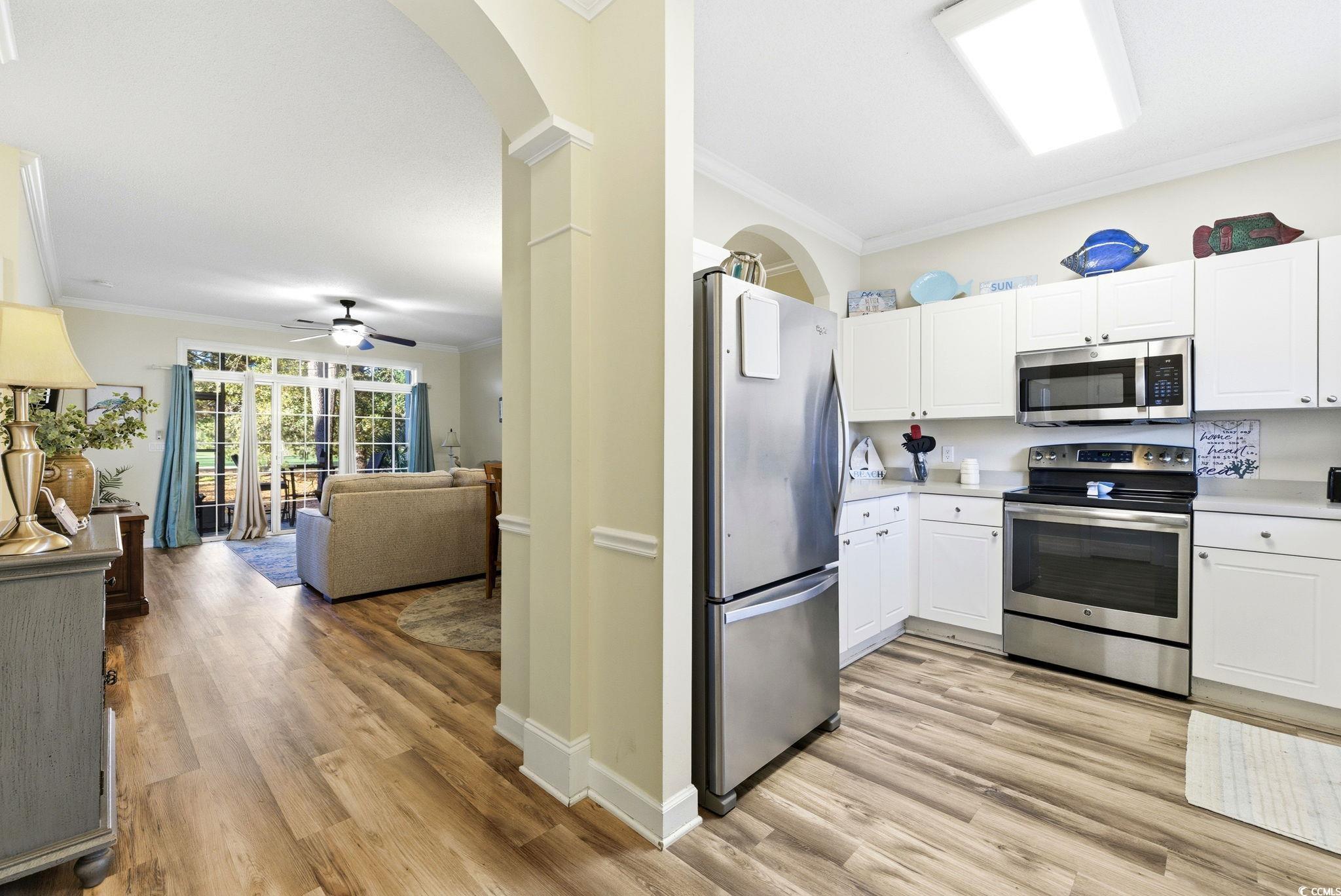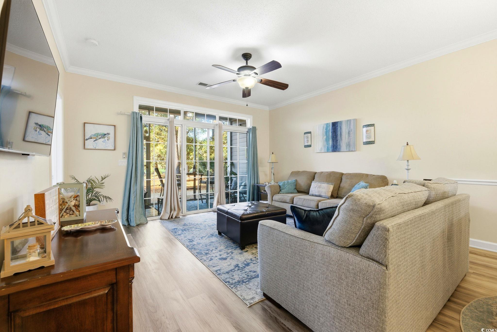 Upgraded and spacious! This beautiful 2 bed 2 bath first floor villa overlooking the 12th green of the Greg Norman golf course in world-famous Barefoot Resort comes turn-key and fully furnished! The split bedroom floor plan is bright and airy, with tons of natural light and modern, sleek finishes. The kitchen comes fully equipped with stainless steel appliances, and there is even a full sized washer and dryer in unit for total convenience. Enjoy a cup of coffee or evening cocktail on the tiled screened-in patio, perfect for the year round beautiful weather in North Myrtle Beach! Barefoot Resort is located just 1.2 miles from the beautiful beaches of North Myrtle Beach and offers incredible amenities including 4 golf courses, onsite dining, multiple pools (the huge saltwater pool overlooking the marina is a showstopper!), private oceanfront cabana, and even a free shuttle to and from the beach in the summer season! Close proximity to all the dining, shopping, and entertainment of Barefoot Landing is the cherry on top to make this the villa of your dreams! Whether you are looking for a primary residence, luxurious home-away-from-home, or even a lucrative investment property, Barefoot Resort offers everything you could want and more (at a price you would not believe!). First floor units with all the bells and whistles are incredibly rare, so schedule your showing today! You DESERVE to live the coastal dream! All measurements and information is deemed reliable but it is the buyer's responsibility for all verification.