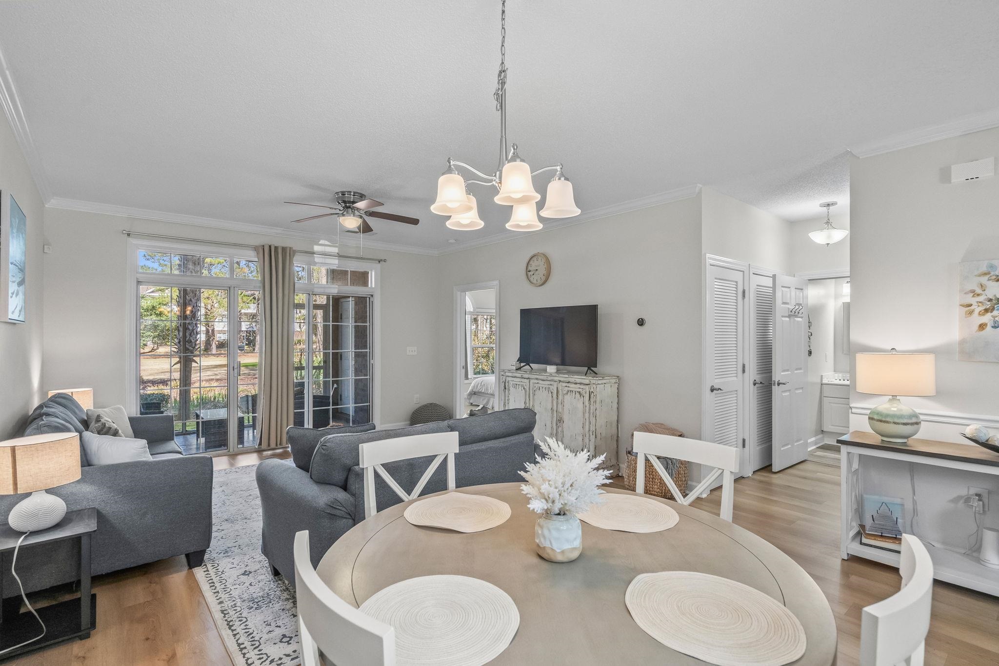 This beautifully upgraded 2-bedroom, 2-bath ground-floor condo in Barefoot Resort offers a desirable split floor plan, providing privacy and comfort for both residents and guests. The open-concept layout is bright and airy, featuring modern updates throughout, including a stylish kitchen and new flooring. The spacious primary suite boasts an en-suite bathroom and generous closet space, while the second bedroom and bathroom are located on the opposite side of the unit, perfect for added privacy. Enjoy tranquil golf course views from the private patio, making this the perfect place to relax or entertain. Barefoot Resort offers an incredible range of amenities, including four championship golf courses designed by top architects, a large resort-style pool overlooking the Intracoastal Waterway, and a private beach cabana with seasonal shuttle service. Residents can also enjoy access to the marina, tennis and pickleball courts, multiple community pools, and on-site dining options. The condo is just minutes away from Barefoot Landing, which offers a variety of shopping, dining, and entertainment options, as well as being close to the beach. Book your showing now!