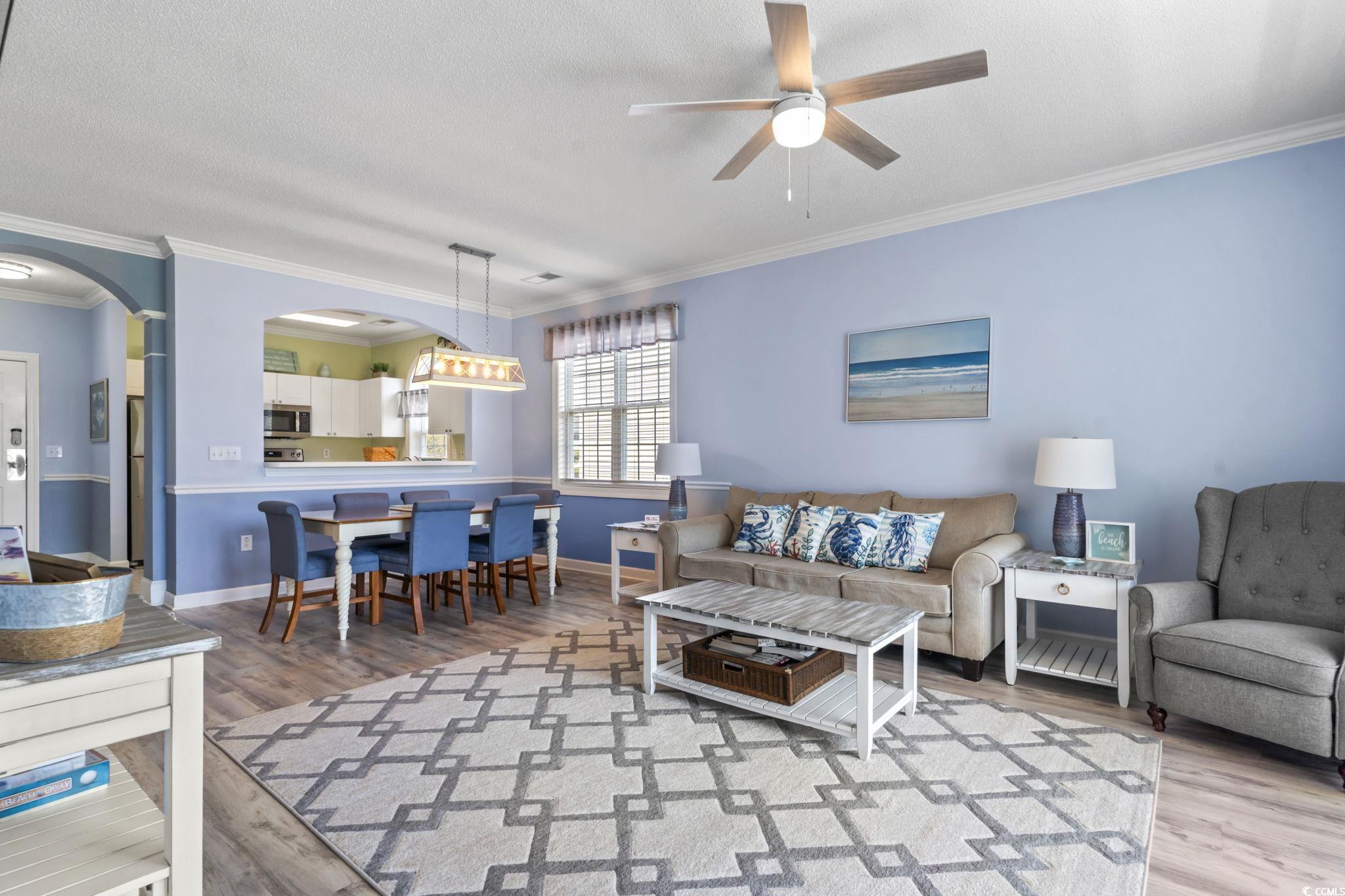 Welcome to your turnkey retreat at Barefoot Resort! This beautifully updated 2 bedroom 2 bath condo offers stunning golf course views and access to some of the most sought after amenities along the Grand Strand. Step inside to find fresh updates throughout including new LVP flooring, fresh paint, new appliances and upgraded lighting that creates a bright modern feel. The open floor plan flows seamlessly from the kitchen to the living and dining areas making it perfect for entertaining or simply relaxing after a day at the beach or on the course. Offered fully furnished this home is move in ready just bring your suitcase. Enjoy your morning coffee or evening sunsets from the private balcony overlooking the lush fairways. Residents of Barefoot Resort have access to world class amenities including multiple pools, championship golf courses, a clubhouse, restaurants, walking trails, and a beach cabana with seasonal shuttle service. Whether you are searching for a primary home, vacation getaway, or investment property this condo offers the perfect combination of comfort, convenience, and resort style living in one of North Myrtle Beach’s premier communities.