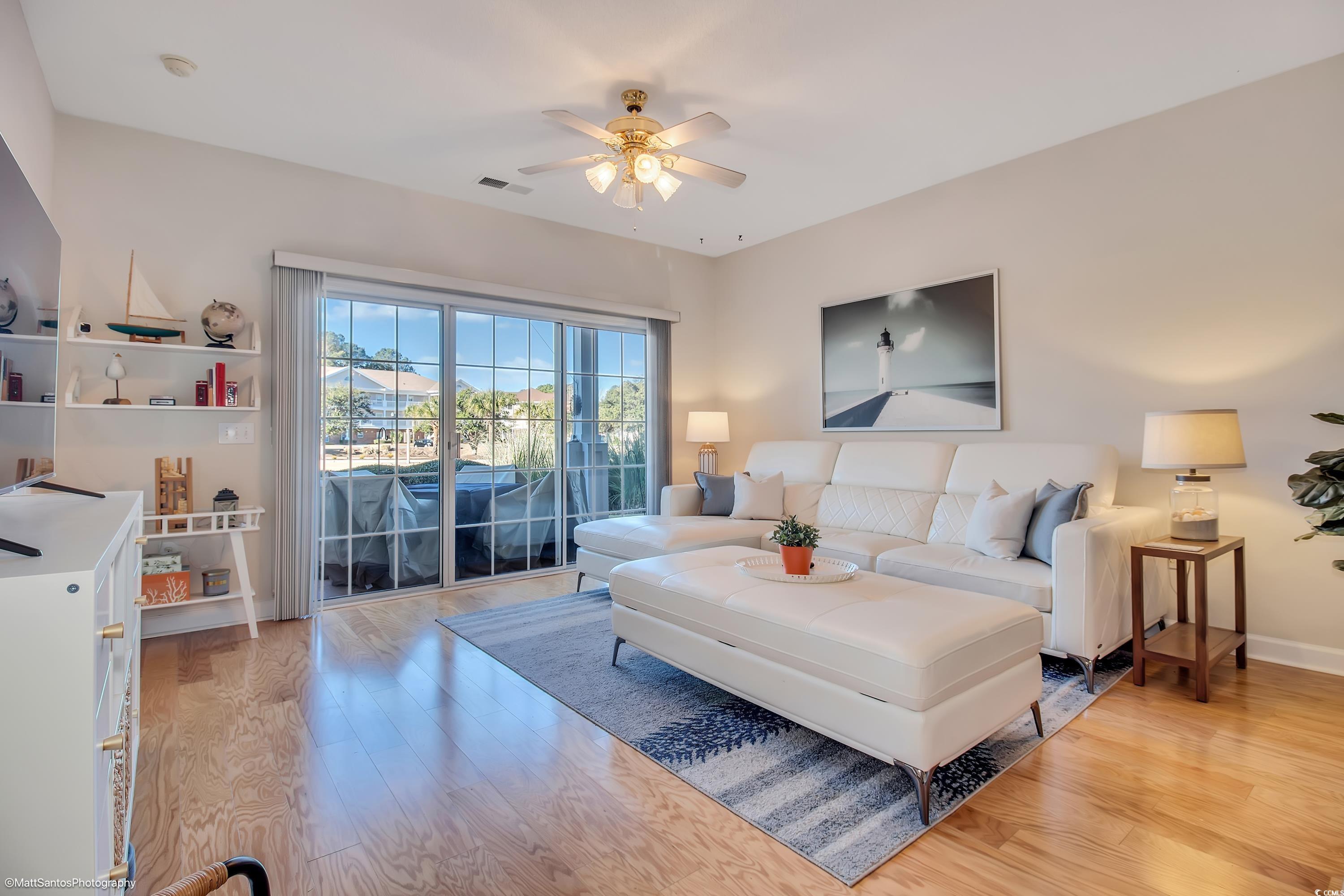 Beautifully updated first-floor 2BR/2BA Wedgewood condo offering effortless living and serene pond views, and has never been rented. This move-in-ready unit features modern furnishings, hardwood flooring throughout the main living areas and bedrooms. Tile is in the kitchen and baths. There is a fully renovated kitchen with granite countertops, tile backsplash, and stainless steel appliances. The open living area flows to a private back patio overlooking a tranquil pond with fountain, creating the perfect space for morning coffee or relaxing evenings. The primary bedroom has an ensuite bath with a walk-in shower and updated vanity. The second bedroom has access to the hall bath. also with an updated vanity. Enjoy the convenience of one-level living and a neighborhood pool within walking distance. Ideal as a primary residence, second home, or low-maintenance retreat. Barefoot also has a seasonal shuttle to the private beach cabana, that owners have access to year-round. You’re also just minutes from the shops, dining, and entertainment of Barefoot Landing, including the Alabama Theater and House of Blues. Whether you’re seeking a primary residence, second home, or investment opportunity, this property offers the perfect blend of comfort, convenience, and the signature Barefoot lifestyle. You'll be glad you did!!