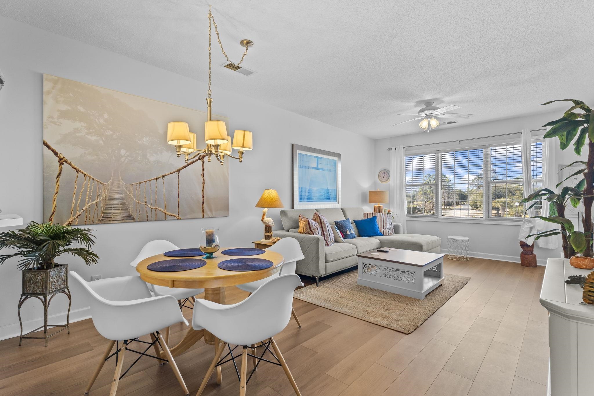 Beautiful 1-bedroom, 1-bath end unit located in the highly sought-after Wedgewood community within Barefoot Resort. This light-filled condo offers a bright, open layout with extra windows for added privacy and natural light and has been very lightly used and maintained in immaculate condition. Enjoy peaceful mornings and relaxing evenings on the screened porch overlooking the tranquil pond and fountain. The unit is offered furnished and move-in ready, featuring a spacious bedroom with king-size furnishings, an inviting living area with comfortable seating for guests, and a well-equipped kitchen with dining space. An exterior storage room on the porch provides the perfect place for beach gear and golf clubs. New floors, hot water heather, and storm door all installed 2024. Conveniently located just steps from the community pool, picnic area, and seasonal shuttle stop providing access to the private Barefoot Oceanfront Beach Cabana. HOA includes internet, trash service, basic cable, building insurance, and grounds maintenance. Barefoot Resort offers an exceptional lifestyle with four championship golf courses, an incredible clubhouse, an ionized water pool overlooking the Intracoastal Waterway, and close proximity to Barefoot Landing, the Alabama Theatre, House of Blues, shopping, dining, and entertainment. Experience coastal living at its best in one of North Myrtle Beach’s premier resort communities. If you have been looking for a place to start your beach adventure , you have arrived! Don't wait, contact your agent today to view!