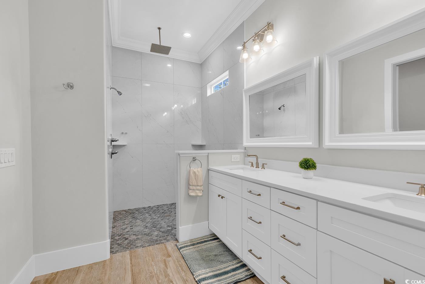 Welcome to this exquisite 4 bedroom, 4.5 bathroom custom-built home located in Phase 1 of the highly sought-after Waterbridge community of Myrtle Beach SC. From the moment you enter through the herringbone-patterned foyer, the attention to detail is undeniable with crown molding flows throughout the home, complemented by elegant plantation shutters that add timeless style. The expansive open living area is anchored by a dramatic double tray ceiling and a cozy fireplace, creating a warm and sophisticated gathering space. The gourmet kitchen is a chef’s dream, featuring a smart double oven, a large center island, Blanco sink, walk-in pantry, and quartz countertops throughout. The Owner’s suite boasts an oversized walk-in closet, hallway, double vanity along with a fully tiled walk in shower. There is also two walk in tiled showers throughout the home. Additional highlights include a dedicated office, a spacious upstairs loft with two bedrooms and two full bathrooms, and a front room over the garage—perfect for storage or flex space. Outdoors, enjoy a remarkable screened-in back porch complete with a Napoleon grill and sink. The lot provides privacy and serenity, backing up to beautiful trees for a peaceful setting. Flooring includes durable ceramic tile on the main level and rich engineered oak hardwood upstairs, combining luxury with practicality. The home also features a 2-car garage with an additional slot for a golf cart or workshop, offering plenty of space for both vehicles and hobbies. Living in Waterbridge means you’ll also enjoy world-class community amenities, including a resort-style pool, clubhouse, fitness center, tennis and volleyball courts, fire pits, and boat storage with access to the community lake. With unmatched craftsmanship, thoughtful design, and an amenity-rich community, this home delivers the perfect blend of luxury and Lowcountry charm.