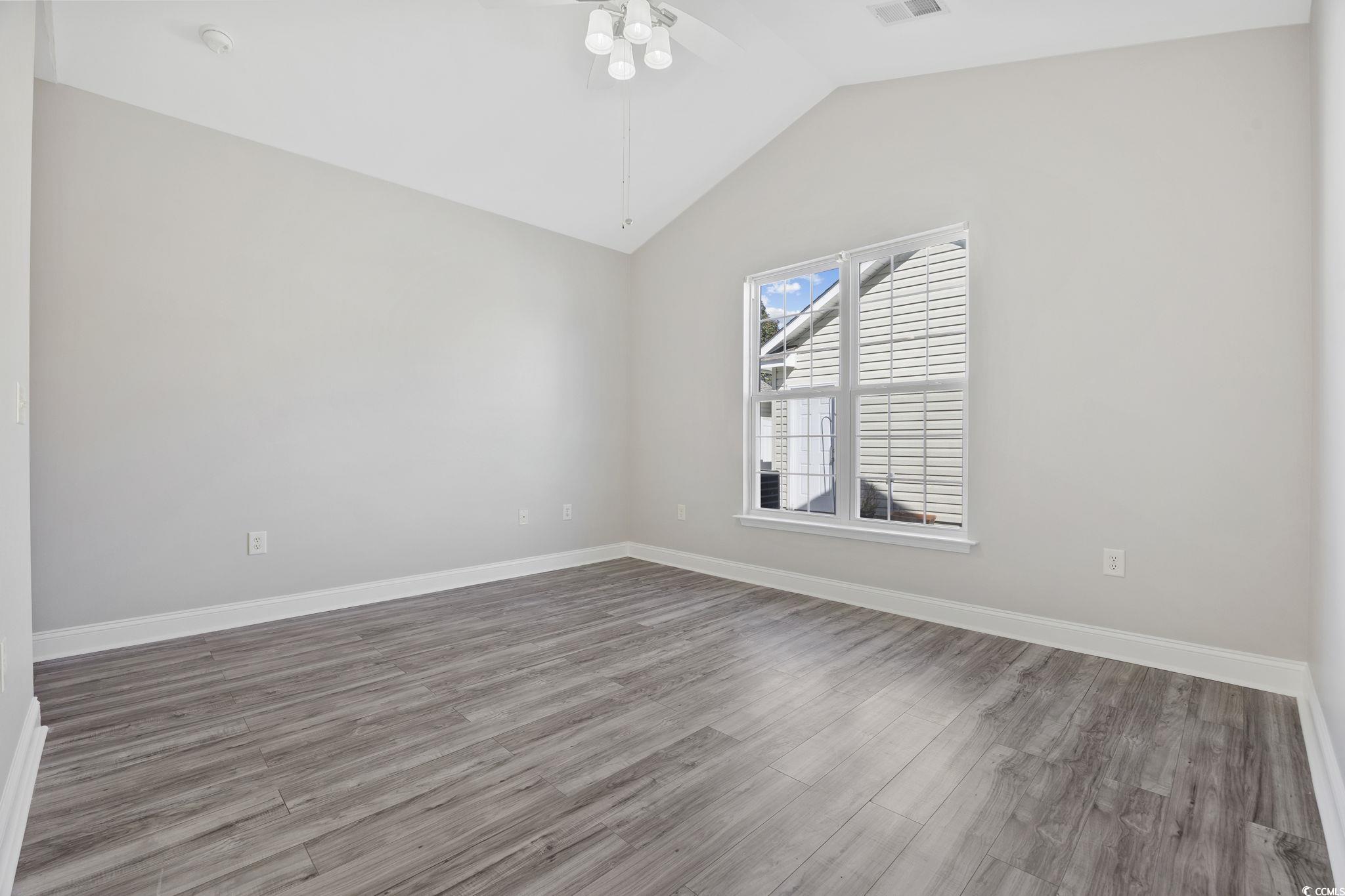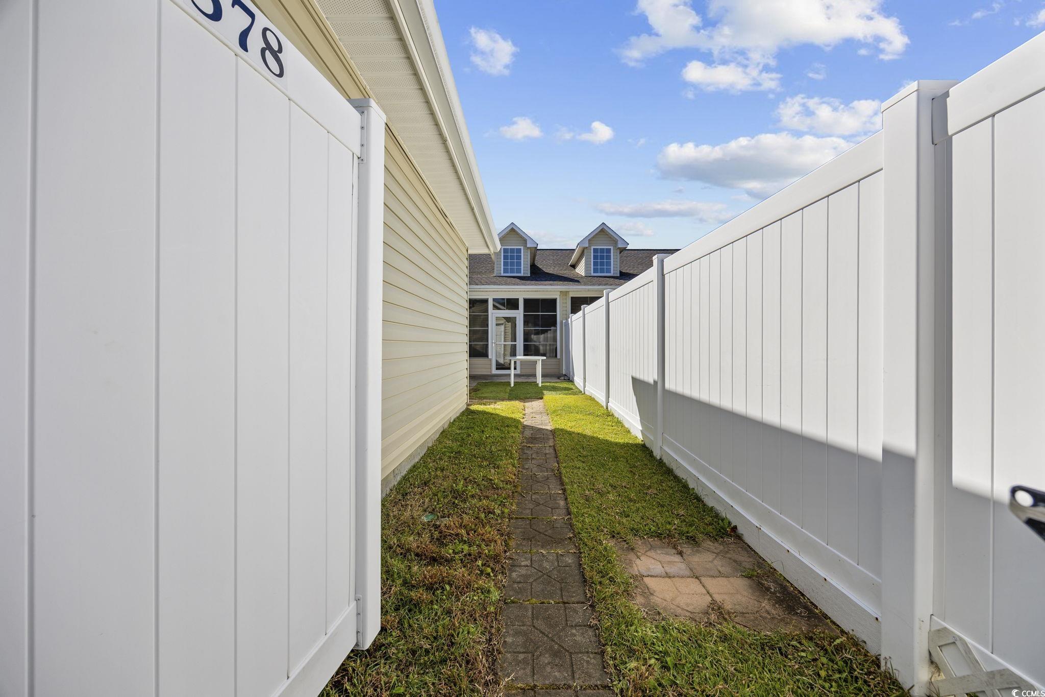 Welcome to coastal comfort and modern style! This beautifully updated 3-bedroom, 2-bath home is just 5 miles from the beach and Springmaid Pier. Step inside to discover an inviting open-concept layout with vaulted ceilings and a skylight that fills the living room with natural light, creating a bright, airy feel throughout. The kitchen shines with stainless steel appliances, ample cabinetry, and a spacious pantry. A dedicated laundry room with washer and dryer adds everyday convenience. Retreat to the master suite, featuring vaulted ceilings, a brand-new shower, and a walk-in closet. Two additional bedrooms share a stylishly updated full bath, making this home perfect for family or guests. Freshly painted and finished with durable, low-maintenance laminate flooring, this home is truly move-in ready! Enjoy your mornings on the screened-in porch or unwind on the private back patio surrounded by a vinyl fence and easy-care artificial turf. A detached 2-car garage provides extra storage and flexibility. Nestled in a quiet neighborhood with a community pool and clubhouse, you’ll also appreciate the HOA perks which include cable, internet, water, sewer, trash, pool access, and exterior pest control all included! With quick access to Hwy 17 and Hwy 544, you’ll be close to shopping, dining, golf, and all the fun Myrtle Beach has to offer. This one checks every box, schedule your tour today!