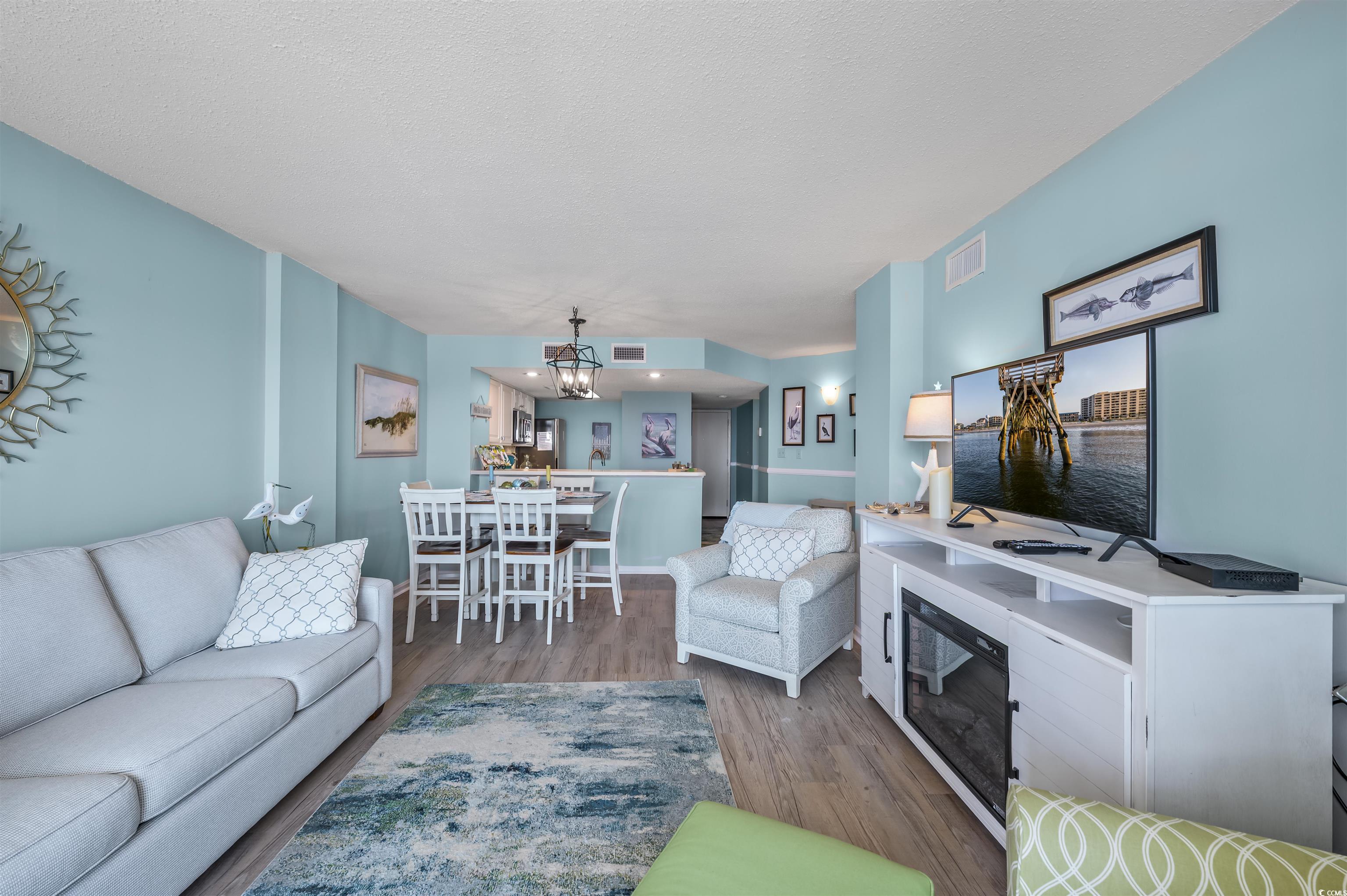 Step into coastal luxury with this beautifully appointed 2-bedroom, 2-bath oceanfront condo, showcasing stunning ocean views from the living area and private balcony. Every detail has been thoughtfully updated to create a light-filled haven where the ocean is always the star. The kitchen boasts glass backsplash, brand-new stainless-steel appliances, solid surface countertops, and sleek white cabinetry. Both bedrooms offer spacious layouts with storage. Enjoy your morning coffee gazing at the sunrise across the Atlantic or listen as the waves crash against the sand during the evenings on your own private balcony. Lots of upgrades completed by seller including new sliding glass doors and entry doors to storage and unit have just been replaced, new paint, LVP floors, etc. Carolina Dunes is one of few buildings that have secure access to inside of building. Also, in peak season, at Carolina Dunes, no need to worry about a spot on the beach. Whether you are looking for a full-time residence, vacation escape, or an investment property, this turn-key condo is ready to deliver the perfect blend of style, comfort, and breathtaking ocean views.