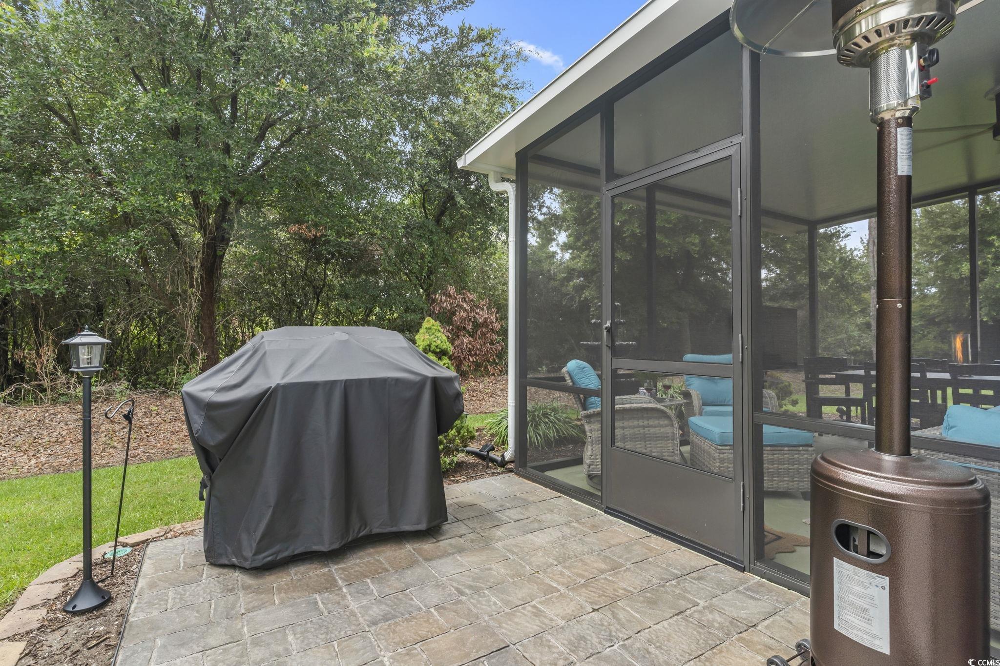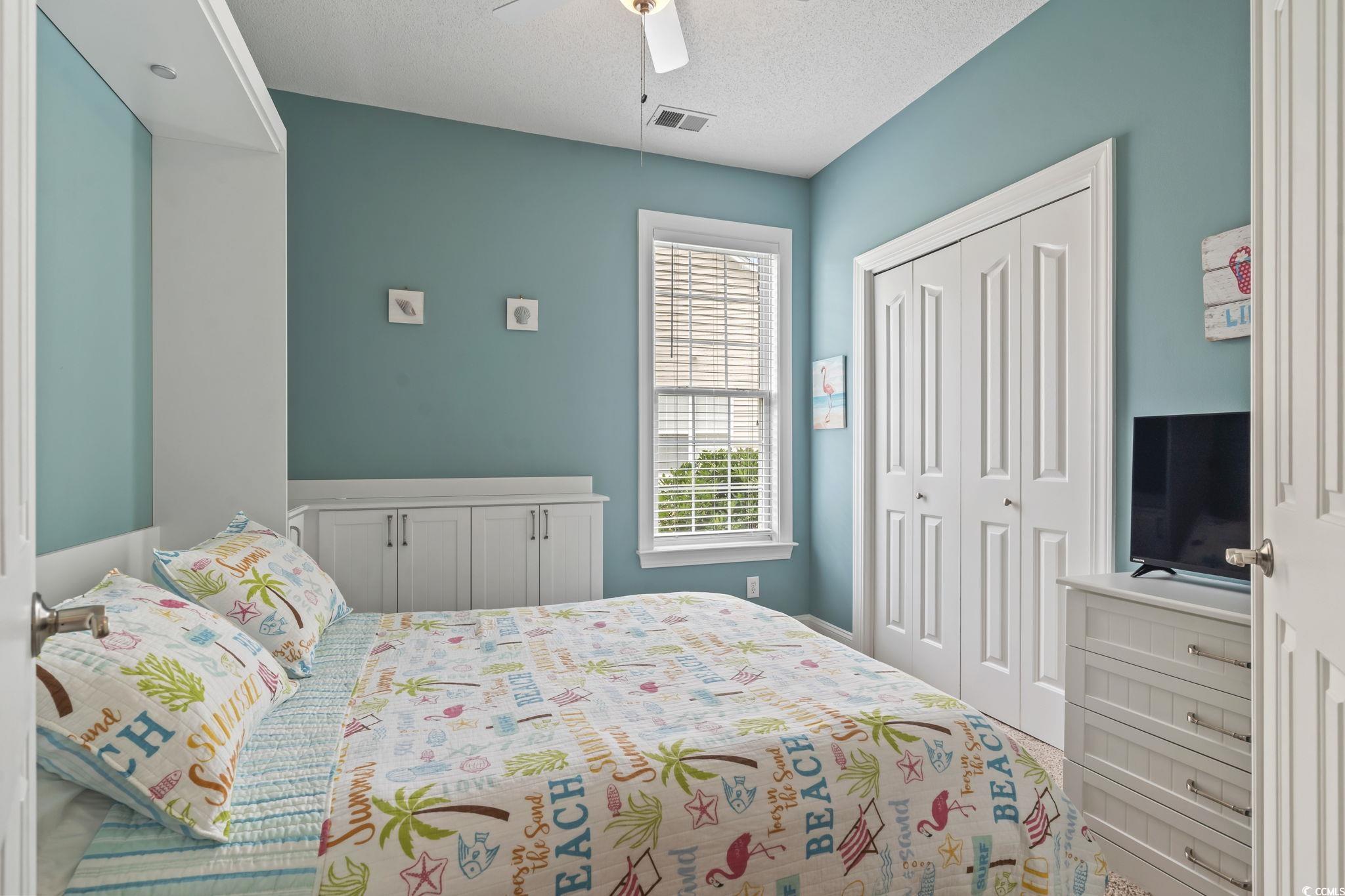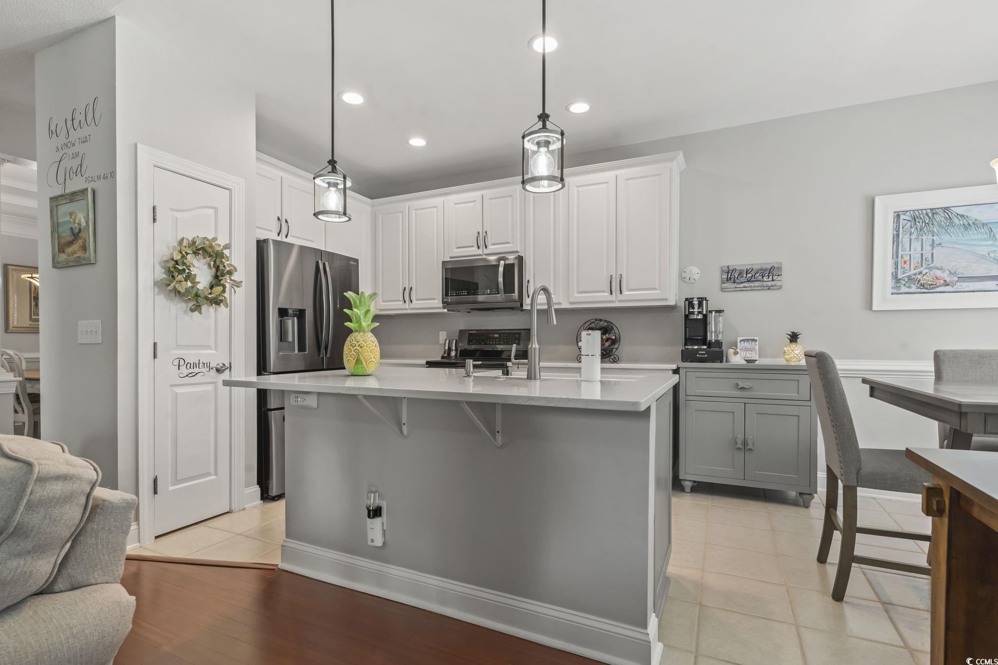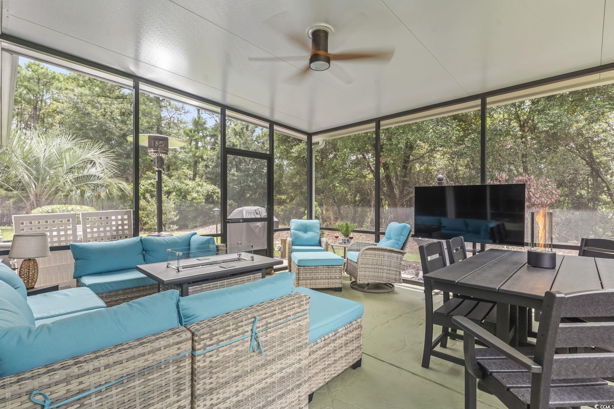 Discover coastal living in the heart of Barefoot Resort's Coquina Pointe! This beautifully updated 3BR/2BA home features rich cherry wood floors, an open split-bedroom layout, and a stunning kitchen with quartz countertops, stainless steel appliances, apron sink, and soft-close cabinetry. The formal dining room boasts tray ceilings and crown molding, while the spacious primary suite offers a custom walk-in closet and tiled shower. Enjoy year-round relaxation in the all-seasons sunroom or unwind on the screened porch overlooking the private backyard and tranquil fountain. Both guest rooms include custom Murphy beds and built-ins. Additional upgrades: custom storage in garage and laundry, smart fixtures, ceiling fans, and more. HOA covers cable, internet, phone, lawn care, trash/recycling, and use of resort amenities—including pools, clubhouse, fitness center, tennis/pickleball courts, and seasonal beach shuttle. Optional golf memberships available. Just minutes to beach, shopping, dining & entertainment!