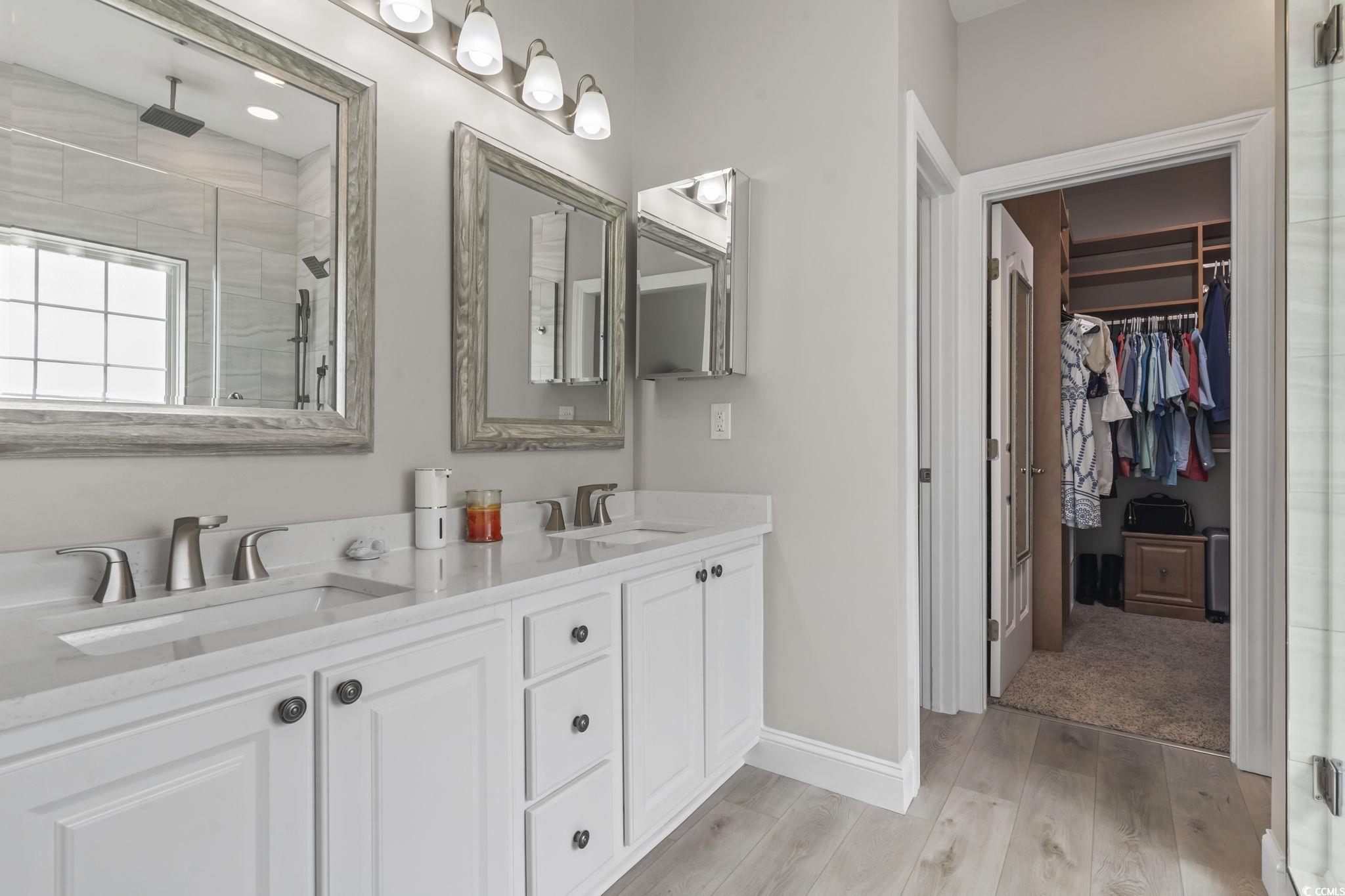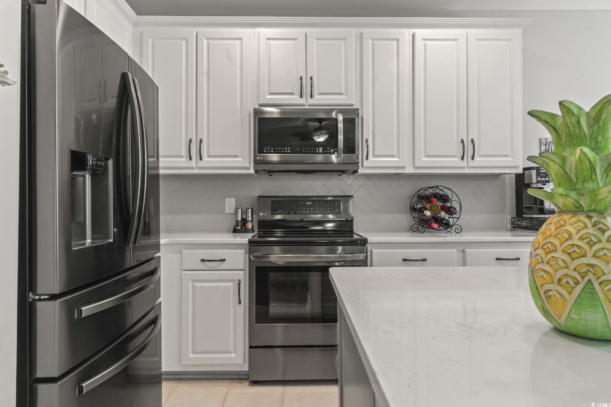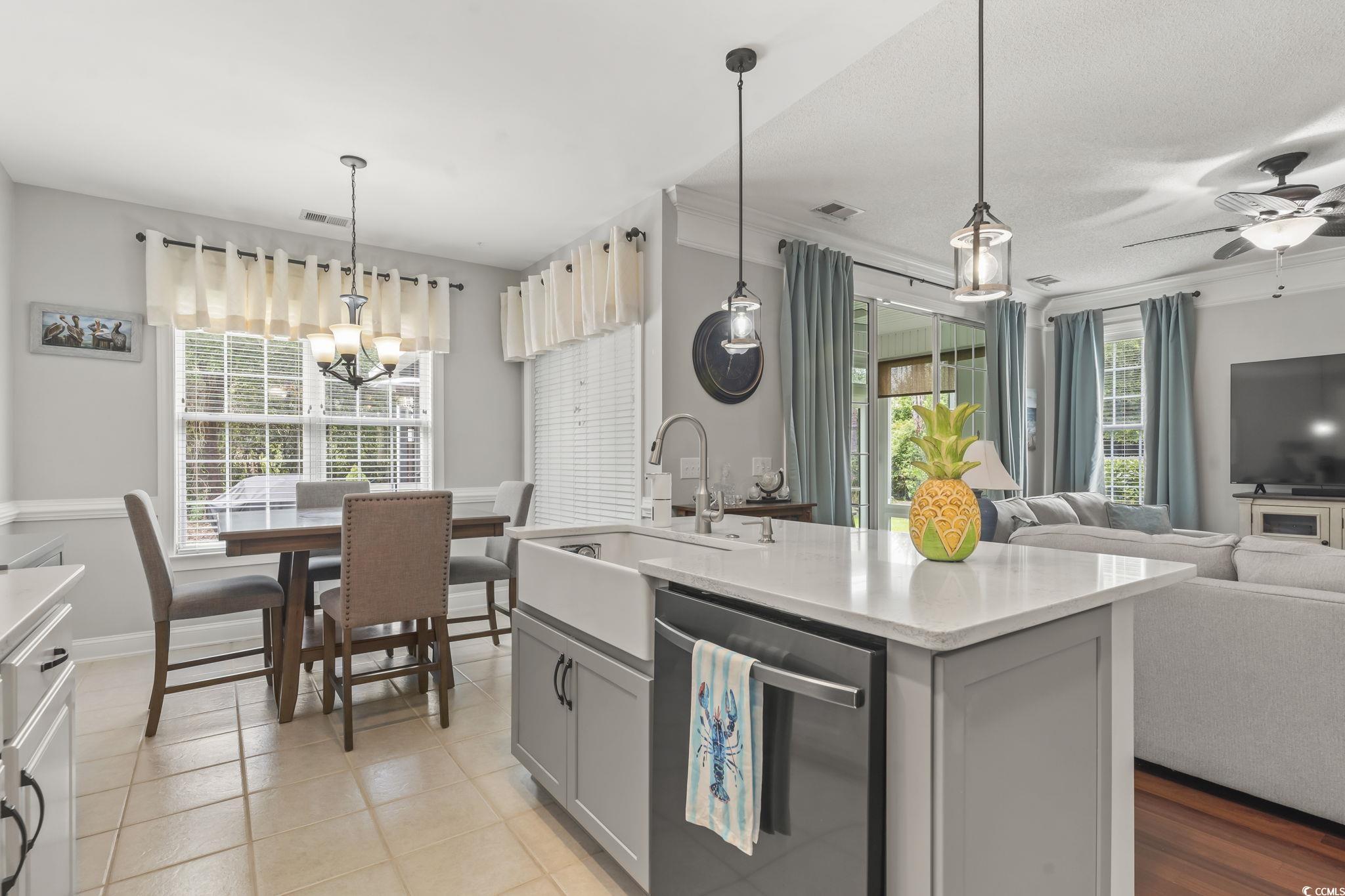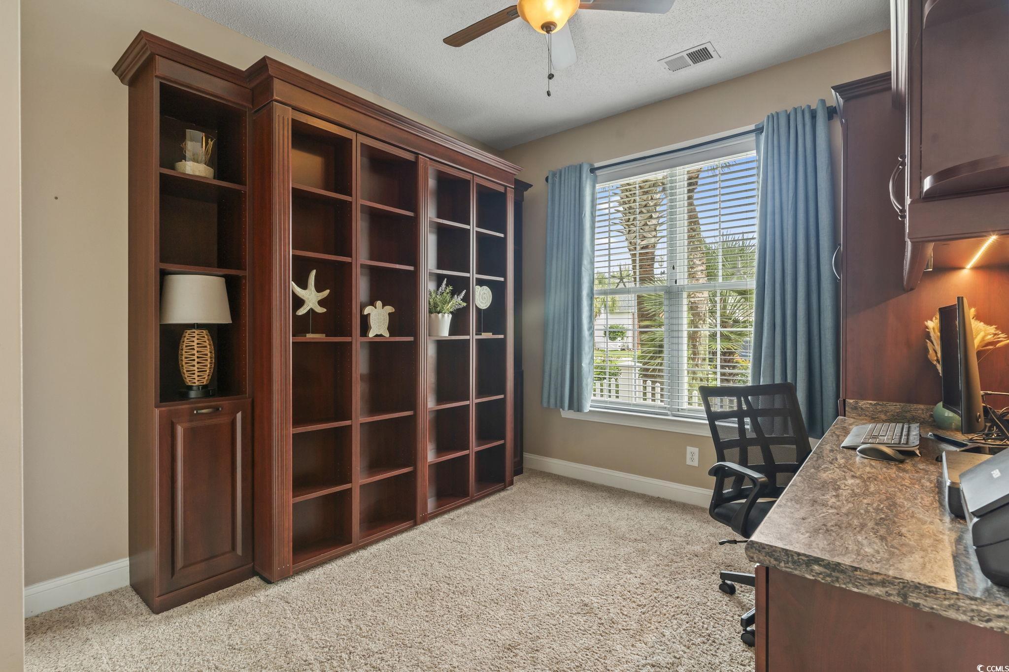 Discover coastal living in the heart of Barefoot Resort's Coquina Pointe! This beautifully updated 3BR/2BA home features rich cherry wood floors, an open split-bedroom layout, and a stunning kitchen with quartz countertops, stainless steel appliances, apron sink, and soft-close cabinetry. The formal dining room boasts tray ceilings and crown molding, while the spacious primary suite offers a custom walk-in closet and tiled shower. Enjoy year-round relaxation in the all-seasons sunroom or unwind on the screened porch overlooking the private backyard and tranquil fountain. Both guest rooms include custom Murphy beds and built-ins. Additional upgrades: custom storage in garage and laundry, smart fixtures, ceiling fans, and more. HOA covers cable, internet, phone, lawn care, trash/recycling, and use of resort amenities—including pools, clubhouse, fitness center, tennis/pickleball courts, and seasonal beach shuttle. Optional golf memberships available. Just minutes to beach, shopping, dining & entertainment!
