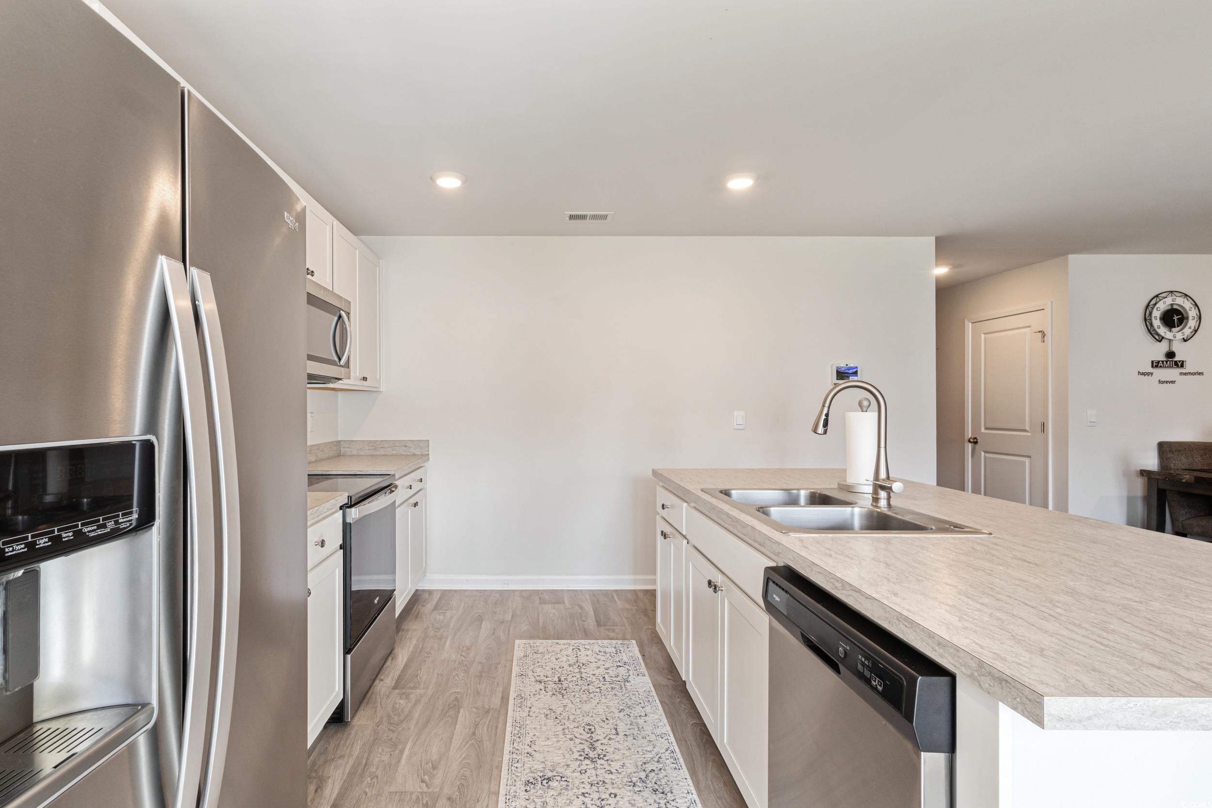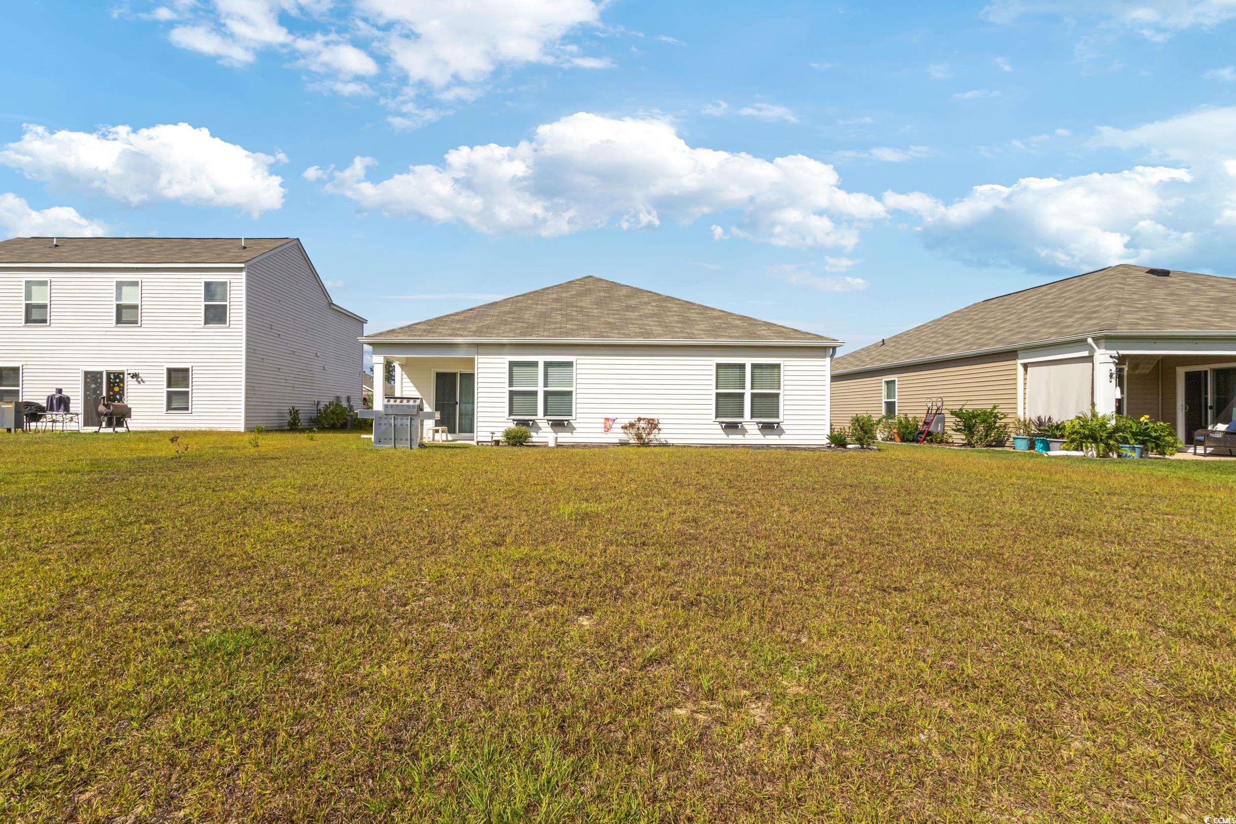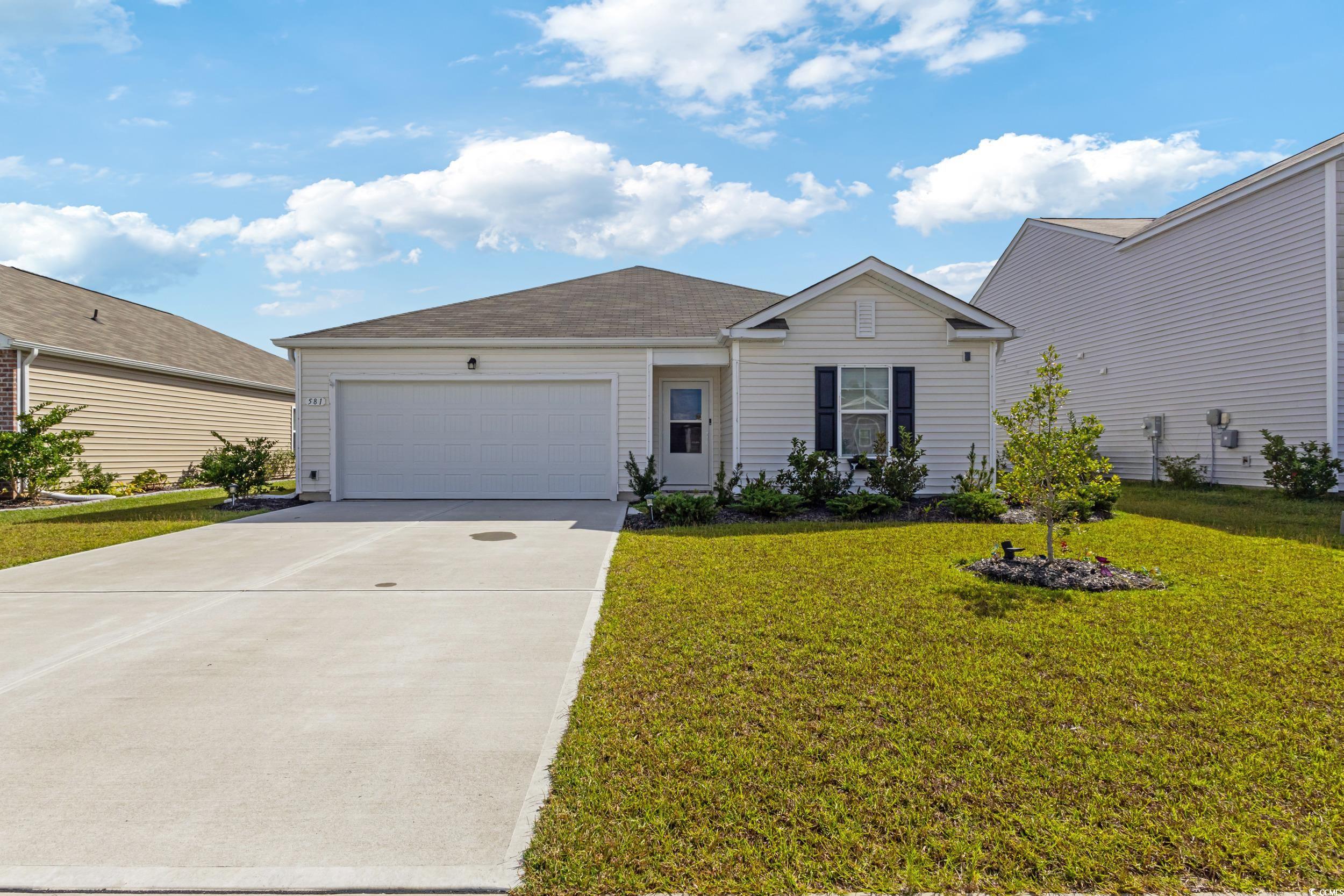 This DR Horton Kerry plan is a one level home perfect for any stage of life. The home has an open concept kitchen, living and dining area. There is a covered rear porch for entertaining. Grill and all furnishings are included with the sale of this home. This is a split bedroom plan with the Primary bedroom off the living area offering a walk in closet and a large bathroom with a double vanity and walk in shower. The other two bedrooms are located on the other side of the home with a full guest bath in between. The home has been wired by the builder as America's Smart Home. The thermostat, front door light and lock and a video doorbell from your smartphone or voice commands to Alexa. A fireplace has been added to the living area, creating a cozy and inviting atmosphere. An attic fan has been installed in the storage area above the garage, which helps with ventilation and temperature regulation. A whole house water filtration system which provides filtered water throughout the entire home. The covered rear patio has been enhanced with privacy screening, offering seclusion for outdoor entertaining.