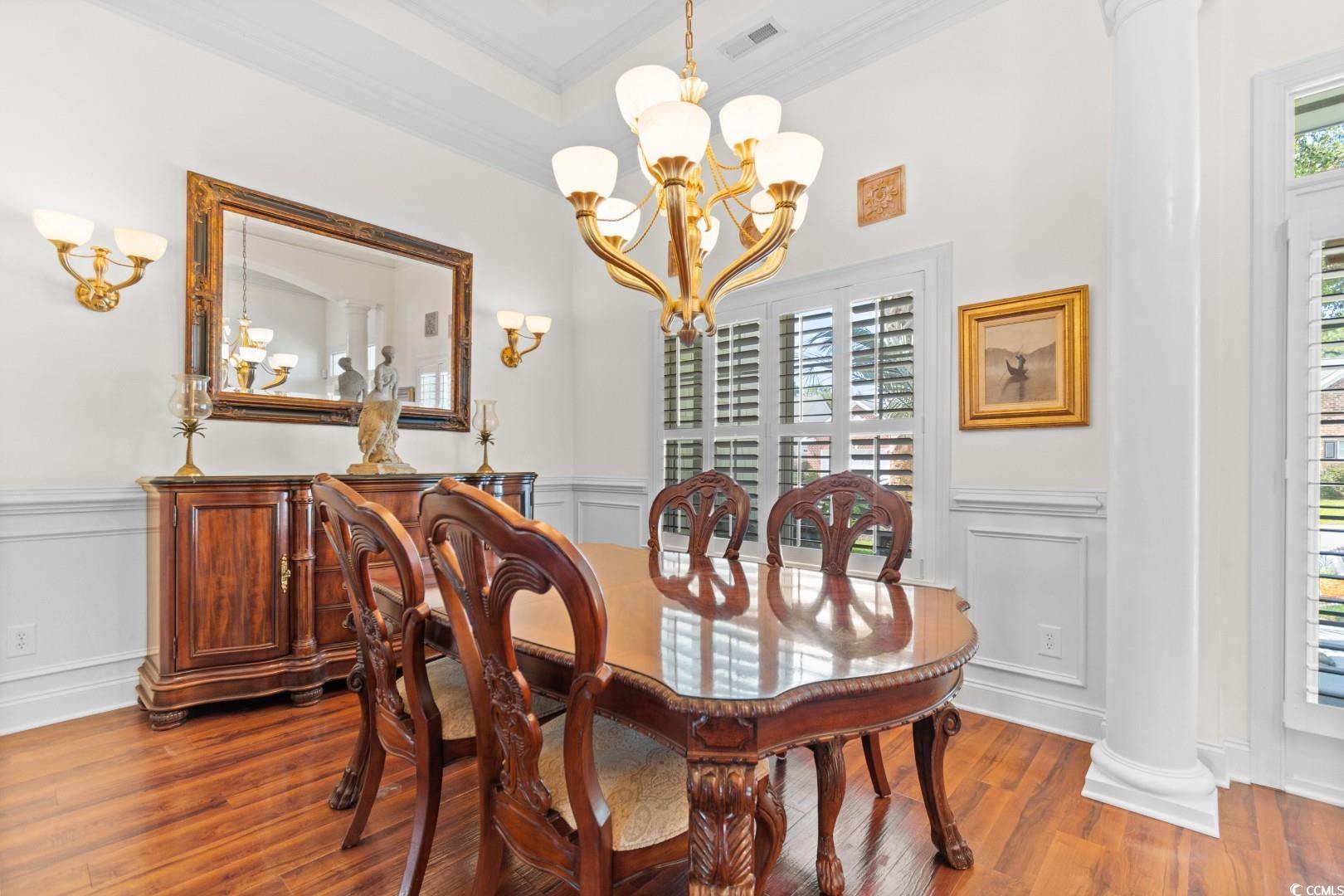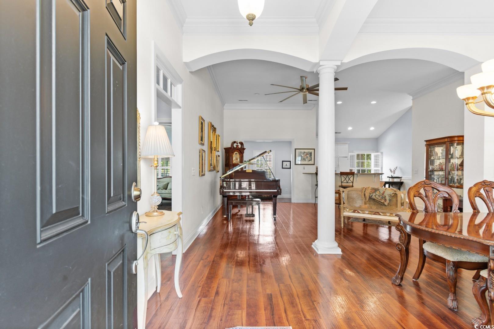 Welcome to 5815 Bridlewood Rd, a meticulously maintained 3-bedroom, 2-bath home with a spacious bonus room, ideally situated on a desirable corner lot in the highly sought-after Bridle Ridge community of Barefoot Resort. Boasting exceptional curb appeal with lush landscaping and a welcoming front entrance, this home offers comfort, style, and an unbeatable location. Inside, you'll find vaulted ceilings in the living room and kitchen that enhance the open, airy feel of the main living space. The formal dining room features an elegant tray ceiling, adding a touch of sophistication. The split-bedroom floor plan includes a serene master suite complete with a tray ceiling, ceiling fan, walk-in closet, and a spa-like ensuite bath with dual sinks and a walk-in shower. Two additional bedrooms on the main floor provide flexibility for family and guests, while the upstairs bonus room is perfect for a home office, media room, or play space. Retreat to your 4 seasons room and enjoy your morning coffee or, step outside to enjoy your private, partially fenced-in backyard with patio, ideal for entertaining, pets, or relaxing in the Carolina sunshine. As a resident of Bridle Ridge, you'll enjoy access to Barefoot Resort's world-class amenities, including four championship golf courses, a private beach cabana with seasonal shuttle service, the largest saltwater pool in the area overlooking the Intracoastal Waterway, a marina, walking and biking trails, and on-site dining. Located just minutes from the beach and the shopping, dining, and entertainment of Barefoot Landing, this home offers the perfect blend of peaceful living and convenience. Don't miss your opportunity to own this move-in-ready gem and schedule your private showing today!
