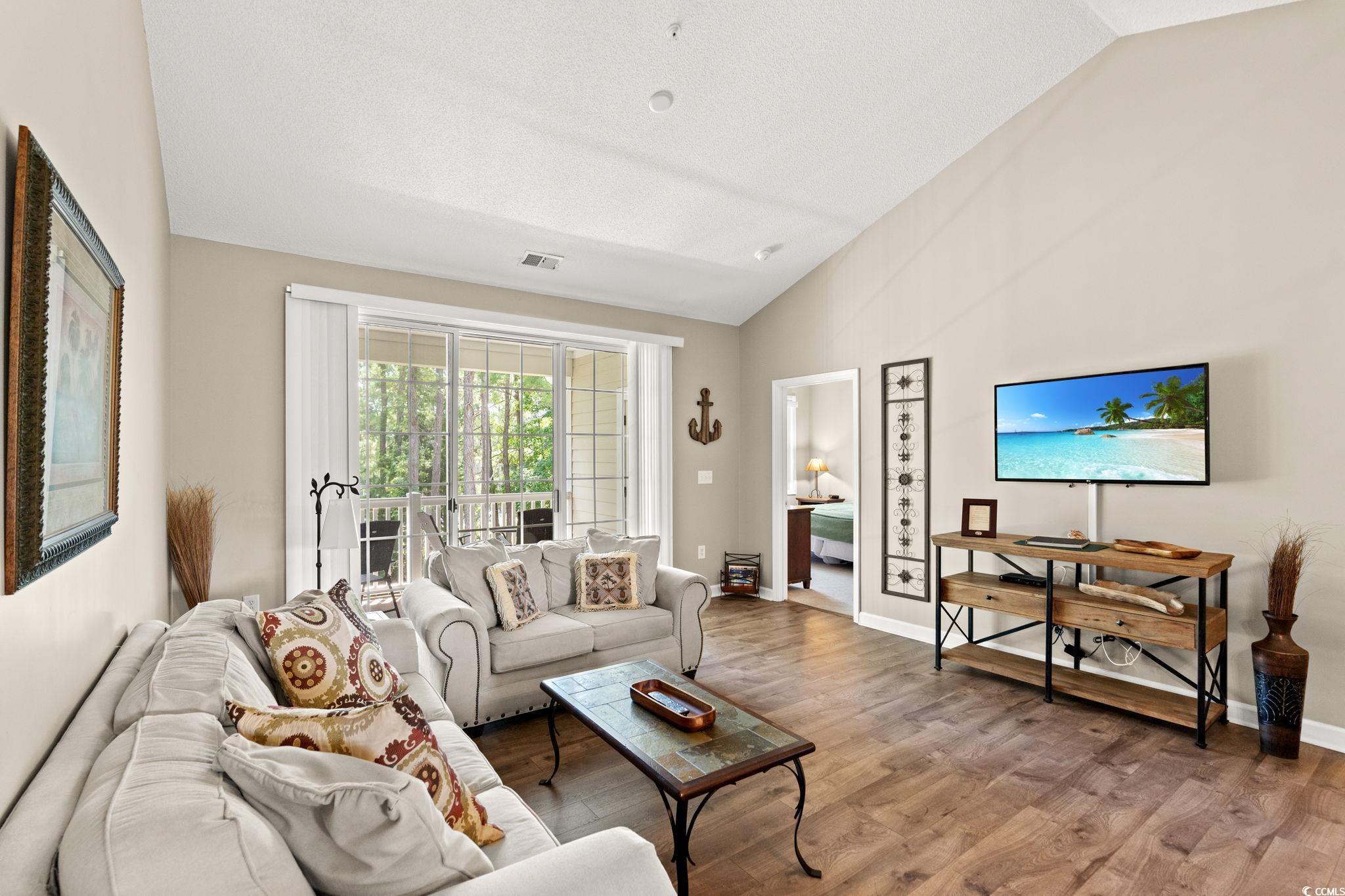 A GREAT INVESTMENT OPPORTUNITY! Welcome to the highly sought-after gated community of River Crossing at Barefoot Resort! This is a furnished 2 bedroom, 2 bathroom condo that can be a great investment property, second home, or even your own personal sanctuary. The open and bright living room with upgraded flooring has high vaulted ceilings. The sliding glass door invites abundant natural light. In the kitchen you'll find plenty of countertop space for all your needs and ample cabinet storage to keep your kitchenware organized and easily accessible. The River Crossing is a Barefoot Resort golf villa neighborhood that is located between the Greg Norman course and the Davis Love III course and has its own community pool. Barefoot Resort & Golf is a World-Class 2300 acre master-planned community located about 1 ½ miles from the Atlantic Ocean and bordering the Intracoastal Waterway. As a resident, you'll also enjoy access to all the exclusive amenities at Barefoot Resort; a private beach cabana with complimentary shuttle service, [in the summer season]multiple additional pools, fitness center, tennis courts, and much more!. Just a short drive to Barefoot Landing, Alligator Adventure, Duplin Winery, and great shopping and dining.