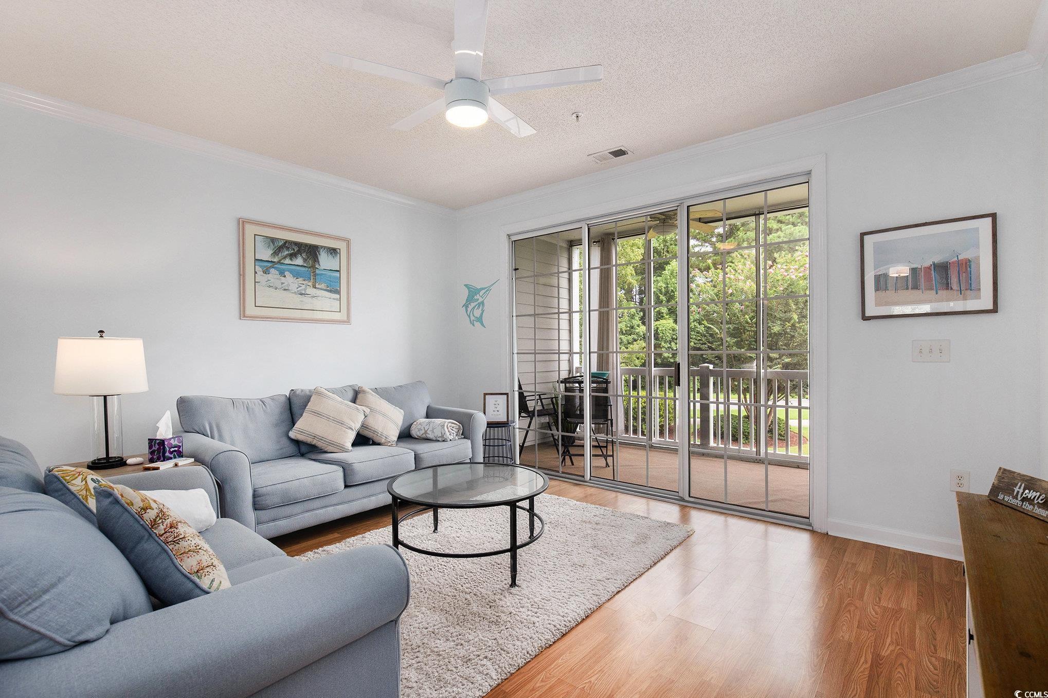 Welcome to River Crossing at Barefoot Resort! This immaculate 2 bedroom, 2 bath condo offers serene pond views in a sought-after gated community. With fresh paint, professional cleaning, and no carpet throughout, this unit feels clean, bright, and move-in ready.Stepping into the living room, you're greeted with LVP flooring underfoot and natural light pouring through the balcony windows. Enjoy your morning coffee at the breakfast bar or on the balcony while enjoying peaceful water views. The master bedroom features a walk-in closet and gorgeous views of the pond from your window. Fully furnished and turn-key so you can start utilizing it as an investment property or second home immediately. Never rented and exceptionally well cared for, this condo shows like new. Riverside Crossing amenities include a private pool and grilling area that is just steps from your front door. As a resident, you'll also enjoy access to all the exclusive amenities at Barefoot Resort; a private beach cabana with complimentary shuttle service, multiple additional pools, fitness center, tennis courts, and much more! Conveniently located near everything that North Myrtle Beach has to offer. Just a short drive toBarefoot Landing, Alligator Adventure, Duplin Winery, and great shopping and dining. Schedule your showing today!