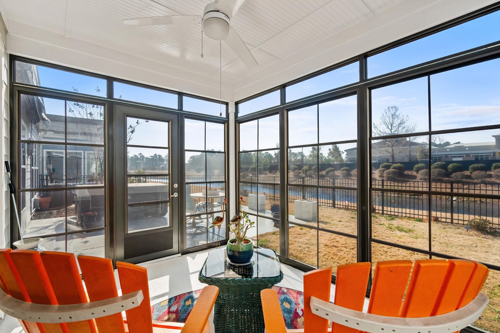 Welcome to your new home in the prestigious 55+ Del Webb at Grande Dunes community. This beautifully maintained 3-bedroom, 3-bath home shows like a model and features the highly sought-after Abbeyville floor plan, prized for its open-concept design and exceptional livability. The heart of the home is the spacious kitchen, seamlessly connecting to the dining and living areas. It features granite countertops, a large center island, built-in stainless steel appliances, a stylish backsplash, pantry, and under-cabinet lighting, perfect for both everyday living and entertaining. Thoughtful design touches such as accent walls and shiplap detailing add warmth and character throughout. A private office provides an ideal space for working from home or quiet relaxation. Situated on an exceptional homesite, the home offers pleasant views from multiple rooms, including the inviting 3-season room, a perfect spot to unwind year-round. The fenced backyard provides privacy, while the extended patio creates additional outdoor living space, ideal for grilling, entertaining, or enjoying peaceful coastal evenings. The primary suite is filled with natural light and offers a tranquil retreat. The owner’s bath includes a double granite vanity, beautifully tiled shower, and a spacious walk-in closet. A split-bedroom layout ensures privacy for guests, complemented by an upstairs bedroom, large loft, and guest bath, offering flexible space for visitors or hobbies. Built to modern construction standards, the home includes irrigation, gutters, an epoxy-coated garage floor, and a Sentricon and Taexx termite system, along with energy-efficient features for comfort and peace of mind. Del Webb at Grande Dunes offers an unmatched active-adult lifestyle. Enjoy a full calendar of social events and activities at the Amenity Center, relax in the indoor or outdoor pools, or stay active with the fitness center, bocce ball, pickleball, and tennis courts. Miles of sidewalks and a scenic paved path along the Intracoastal Waterway invite walking and biking, while quick trips to shopping, dining, or the beach are effortless by golf cart. Beach access is included through the Grande Dunes Beach Club, one of the many outstanding HOA amenities.