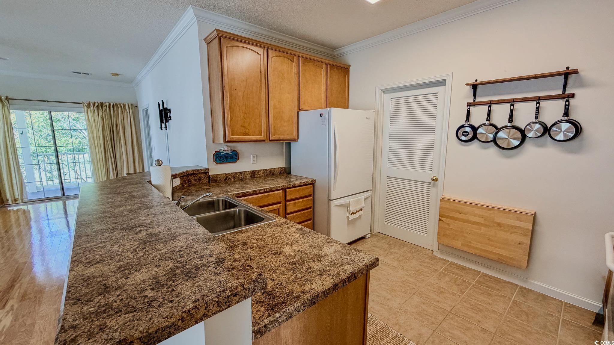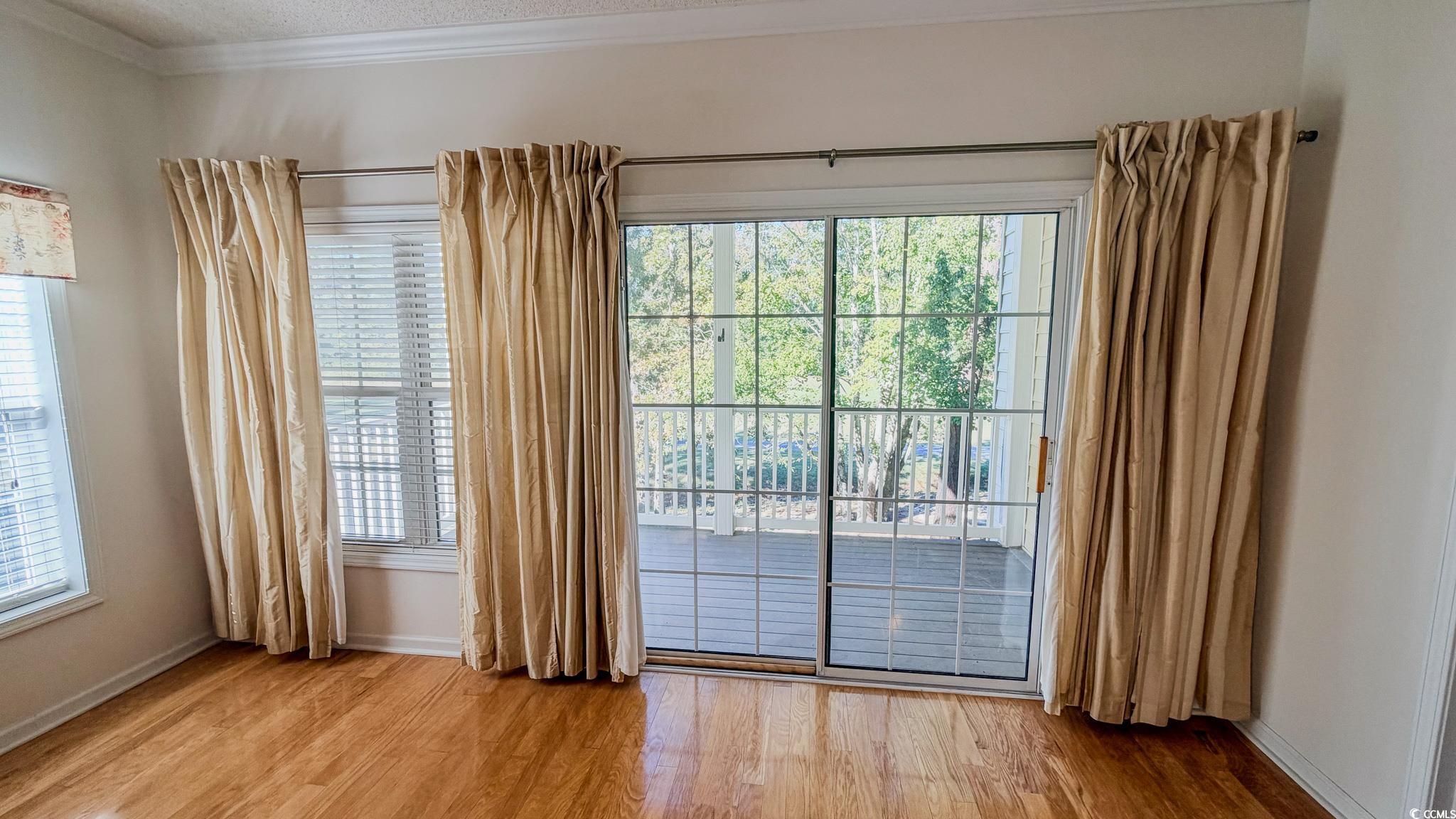Golf course views can be yours without ever touching a club. This is your opportunity to own a beautiful 3 bedroom 2 bath condo backing up to the 1st hole of the Gary Player course at Blackmoor. This end unit offers extra natural lighting, hardwood floors with carpeting in the bedrooms, tile in the kitchen and baths along with crown moulding and an open concept dining and living room style so you won't miss a thing when entertaining. The kitchen is roomy with a lot of counter space and a raised breakfast bar perfect for extra stools, 42"inch cabinets and even has a small collapsing table for extra counter or prep space. There is a full size washer and dryer along with your mechanicals in a dedicated room as well. The master suite sits at the back of the unit and faces the golf course with a large walk in closest and an en-suite bath with a tub and shower combo. The front full bathroom offers a walk in shower with two benches. Step on to the large screened in back deck to critique passing golfers or take in the beauty of the golf course tree line. This unit also comes with an outside storage closet for your beach or your golf gear. Marcliffe at Blackmoor has a community pool and meeting area and is located in the highly sought after Prince Creek area just a few miles from the ocean but very close to grocery, medical and newly constructed food locations along Hwy 707. Some photos in this listing have been virtually staged. Comes see your new home today. Measurements are approx.