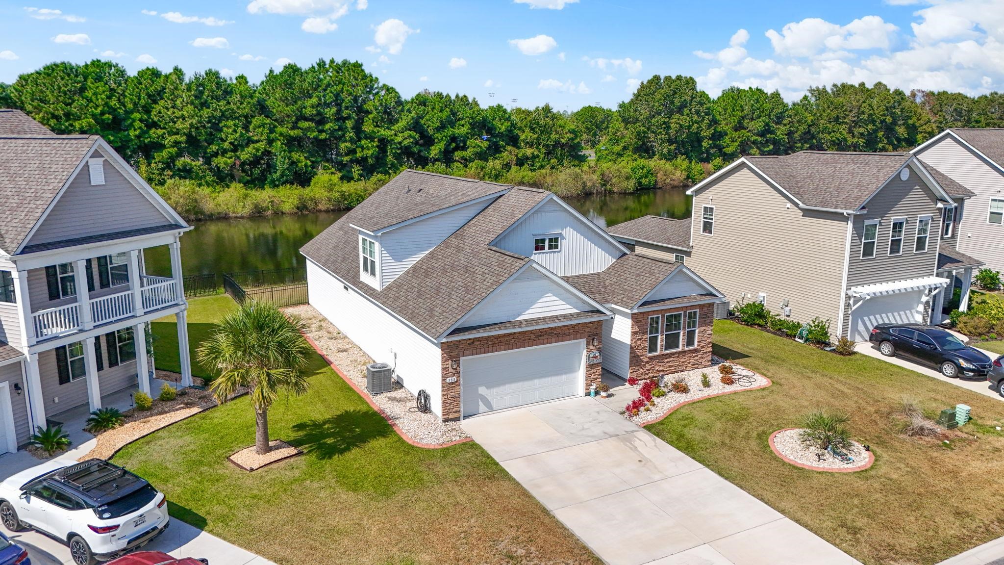 Priced below appraisal value:Priced to sell-Click virtual tour. Bonus room could be used as 5th Bedroom, walk in pantry, 3-bath, screened porch, Fenced Backyard, lakefront retreat tucked away in a peaceful cul-de-sac. With spacious living areas, modern finishes, and serene water views, this home perfectly balances relaxation and style.Fish at your leisure. Approximately 2.5 mile drive to Main Street in North Myrtle Beach.NO city taxes. Lot goes back five more feet…clearly marked with stakes.
