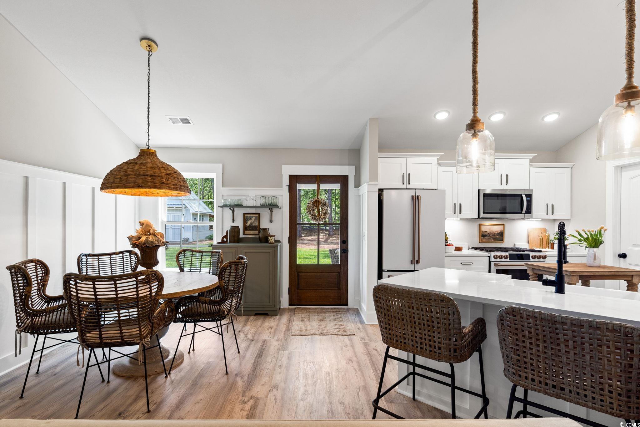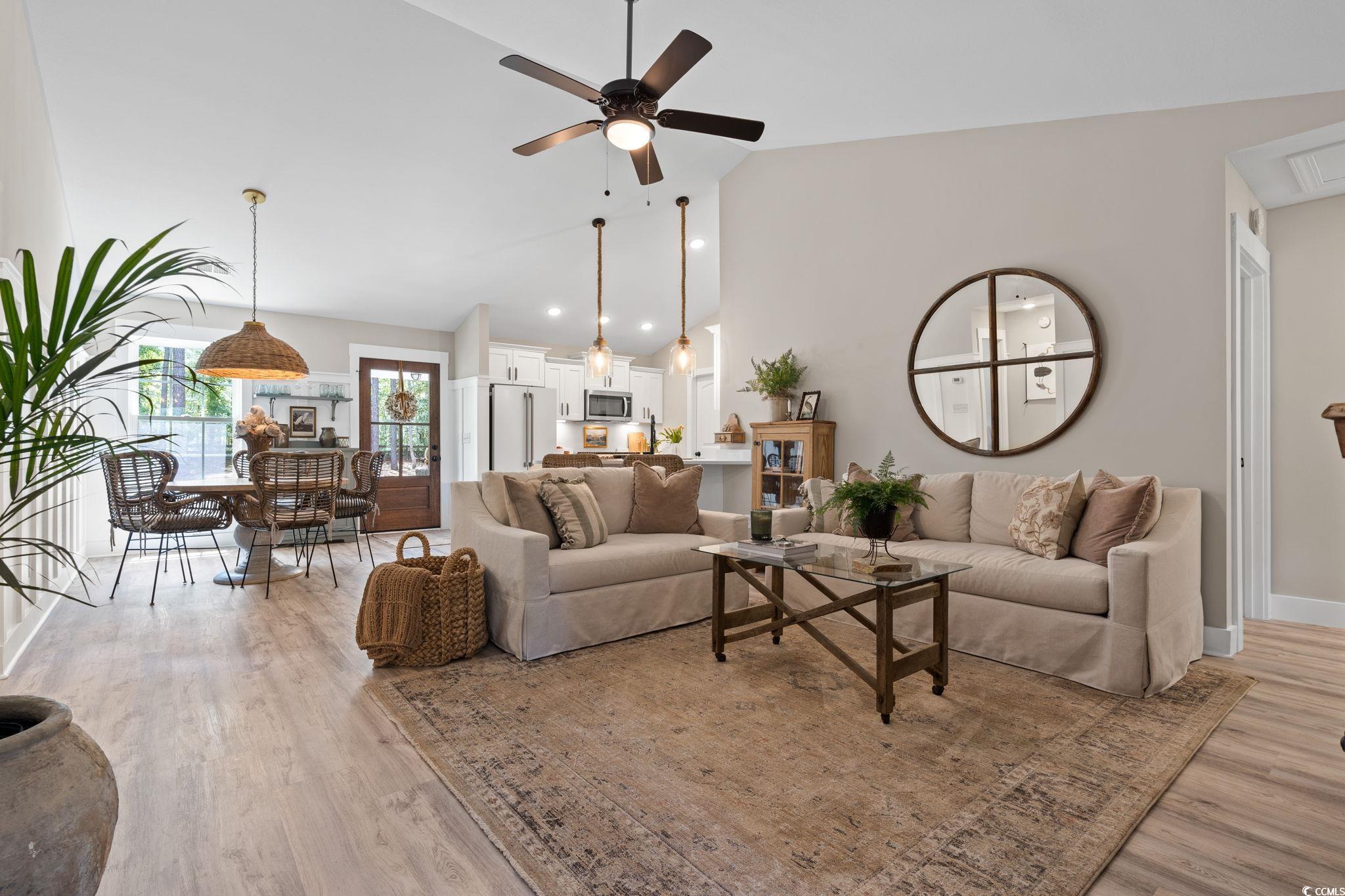 Welcome to your dream coastal cottage at 589 Boundaryline nestled on the North and South Carolina border in charming Calabash, NC! This delightful 3-bedroom, 2-bathroom home offers a perfect blend of thoughtfully curated design and functional living space, ideal for embracing a relaxed coastal lifestyle. Step inside to discover a welcoming layout that flows seamlessly from room to room. The open-concept living area is perfect for casual gatherings or quiet evenings at home. The master suite is a true retreat, boasting a generous walk-in closet. Two additional bedrooms offer ample space for family and guests. The flex space makes for a great office, or could be used as a formal dining room or a second living area. Outside, enjoy your own private paradise with a sprawling lot featuring a large, tree-lined backyard and a workshop/shed. Whether you're grilling on the extended patio, letting your furry friends roam safely in the kennel, or simply soaking up the Carolina sunshine, this outdoor space is perfect for any occasion. Enjoy relaxing at the neighborhood pool and clubhouse, or venturing out to charming downtown Calabash or nearby Ocean Isle and Sunset Beach for easy access to restaurants, shopping, and life on the water.