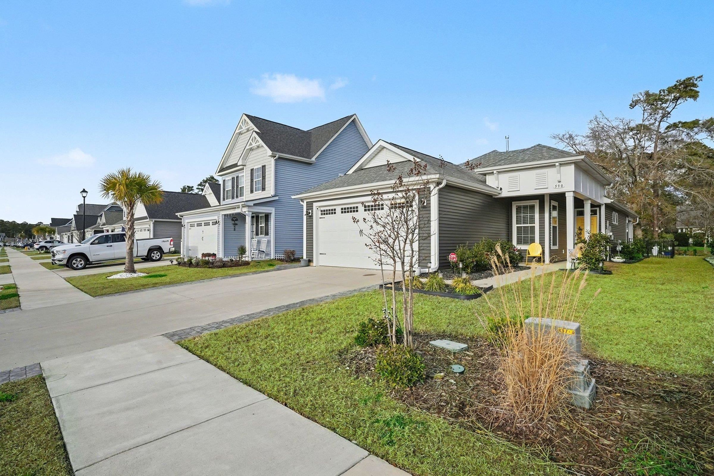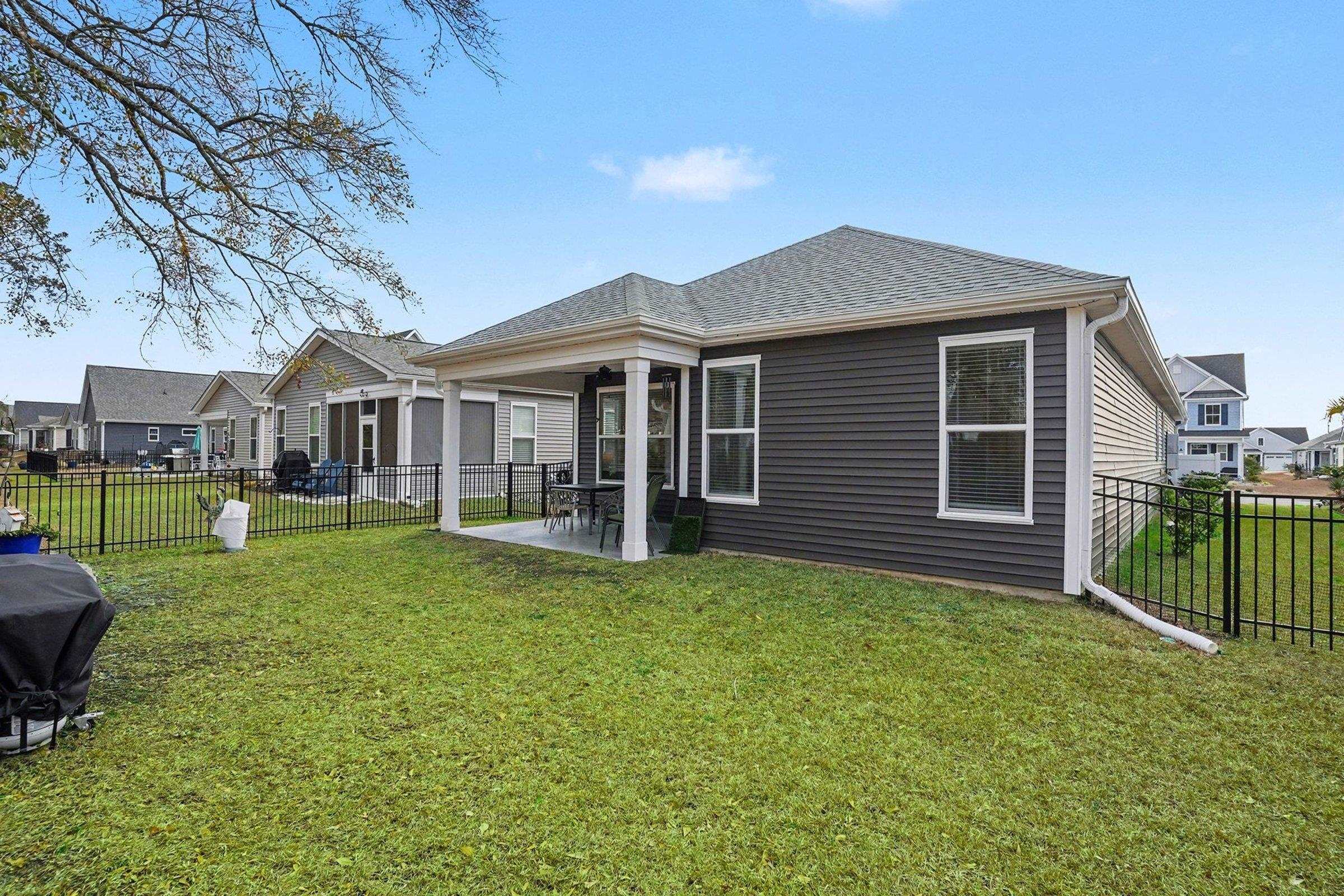 Low maintenance, single level living just four miles from Cherry Grove Beach. Located in the highly sought-after Bridgewater community, The Sunflower model by Chesapeake Homes boasts a desirable split-bedroom floor plan, modern finishes and all systems are less than three years old. Better than new construction with a refrigerator, gutters, blinds, irrigation system and fenced back yard as well as ceiling fans already in place in each bedroom and the living room - this home is turn key!!! The kitchen is a chef's dream with stainless appliances, quartz countertops, tile backsplash, gas stove, large work island with breakfast bar and not one but two pantries, one being an expansive walk-in! Off the great room, the Owner's Suite offers a private oasis complete with a vaulted ceiling and generous owner's bath with a tile walk-in shower, double vanity, linen closet and large walk-in closet. Down the hall from the kitchen are two additional bedrooms and a bathroom as well as a thoughtfully designed drop zone at the entrance to the two-car garage. Additional features include a laundry sink, pull-down attic access, epoxy flooring in the 2-car garage and on the covered back porch, and driveway extensions on each side. Residents of the desirable Bridgewater community enjoy a stunning clubhouse with fitness center, resort-style pool with lap lanes and cabanas, pickleball courts, fire pit, kayak launch, and more! Plus, a lively social calendar with monthly events makes it easy to connect with neighbors and enjoy the community. Ideally located just over the ICW bridge from North Myrtle Beach, you’re minutes from Cherry Grove Beach, NMB dining and shopping, and literally five minutes to McLeod Seacoast hospital. Modern, move-in ready, and packed with amenities—590 Cascade Loop offers the perfect blend of comfort, convenience, and coastal community living.