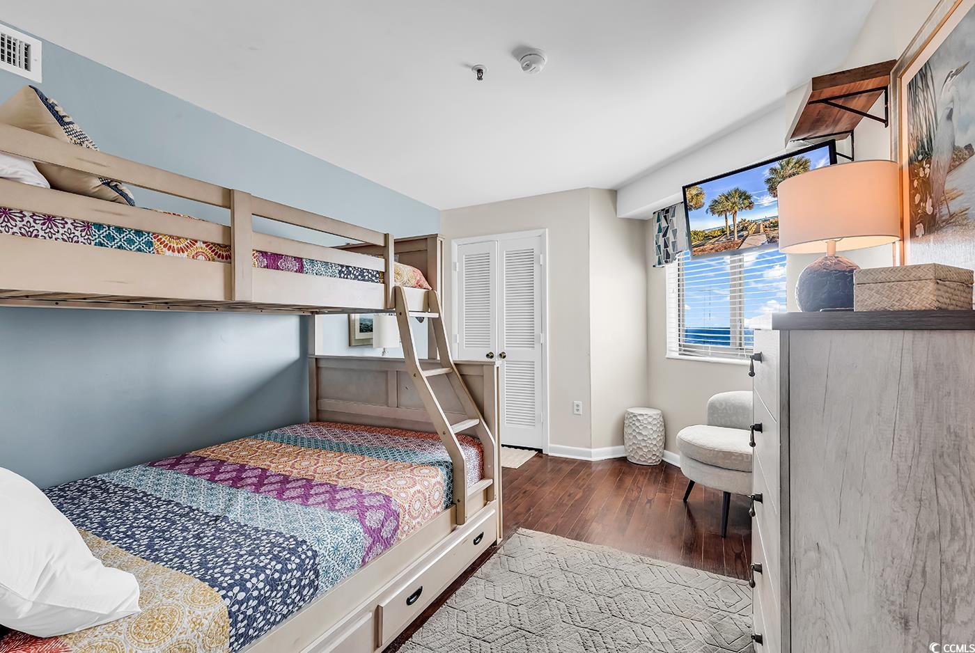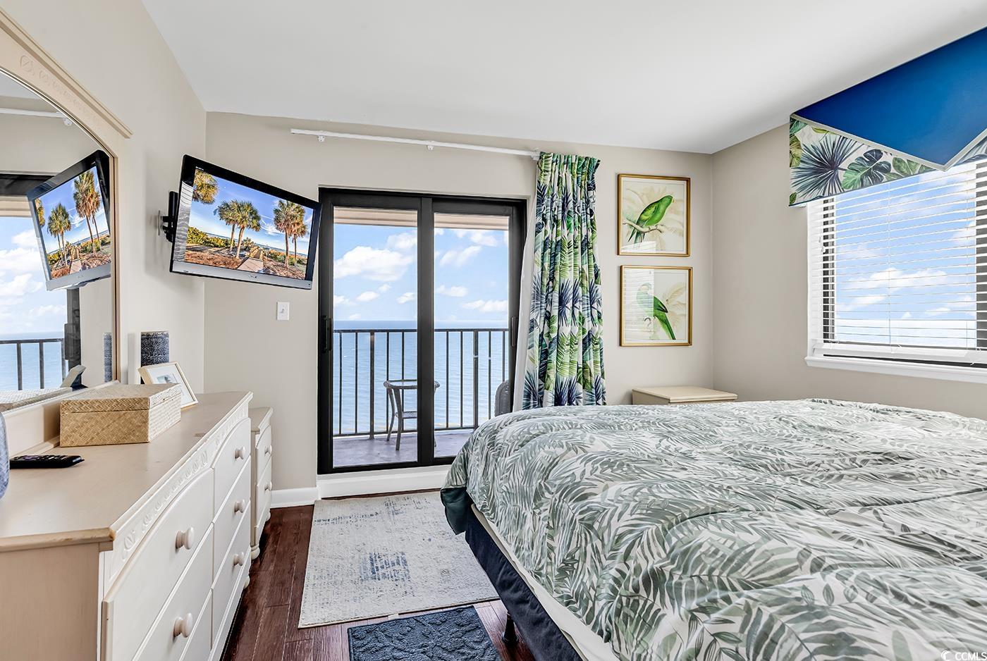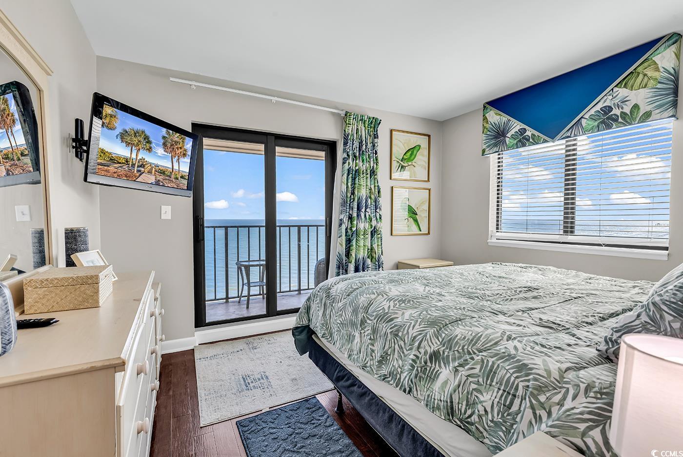 Two bedroom direct oceanfront units at Myrtle Beach Resort Renaissance Tower don't come on the market very often! You do not want to miss your chance to see this one!! MyrtleBeach Resort is a 33-acre gated oceanfront community with many amenities including six pools with two indoors, a lazy river, hot tubs, saunas, tennis courts, pickle ball, fitness rooms, bocce court, 24-hour security, charcoal grills and picnic facilities scattered throughout and activities for all ages from playgrounds to a beachfront bar & grill. This fully furnished unit is updated and ready for you to move in as a primary residence, a vacation home or an investment property. The primary bedroom, which has access to the balcony, overlooks the ocean and has a brand new King size bed. It's the perfect spot to enjoy the gorgeous Grand Strand sunrise without ever having to get out of bed. The Primary suite also has it's own private bathroom. The main living area has an open floor plan, with a full kitchen, small dining area and an ample living room, all overlooking the beautiful Atlantic Ocean. There is a second bedroom with a twin bed over a full size bed bunk bed all equipped with bunkie boards. Making this perfect for a rental property or to bring the whole family. There is also a third bed available in the second bedroom which is adjacent to a second full bathroom. The unit has an updated Wifi enabled Smart thermostat with remote thermostat control through a phone app and a Schlage wifi lock for the front door. Newer windows and sliding glass doors. Renaissance Tower has been recently renovated with a new pool overhaul, new laundry facilities, a video arcade & pool room. There is a new outer deck leading to the Quarter Deck Tiki Bar. There is updated landscaping, a new weightroom, new jacuzzi and pool showers.