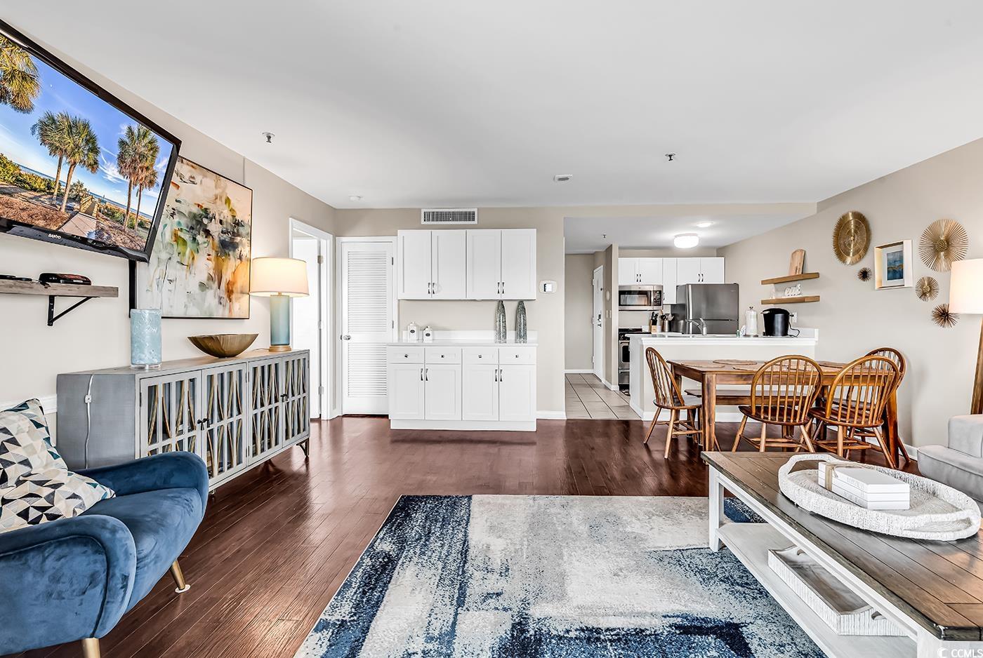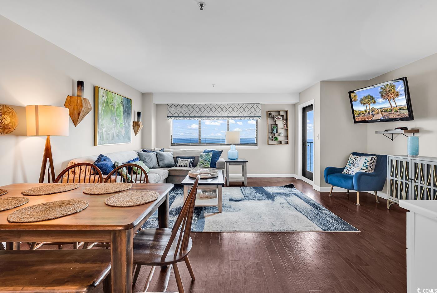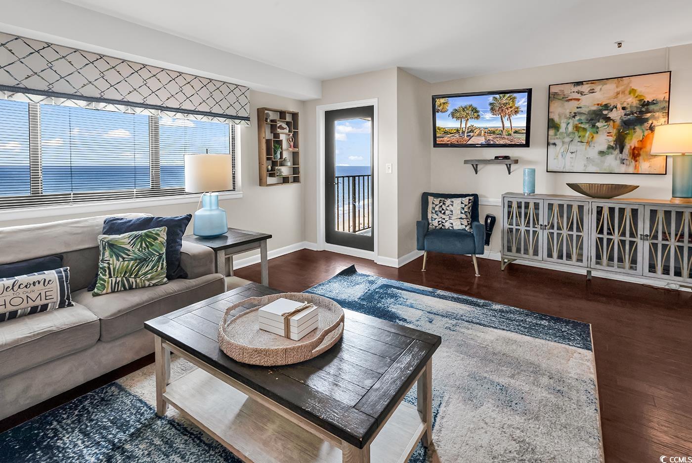 Two bedroom direct oceanfront units at Myrtle Beach Resort Renaissance Tower don't come on the market very often! You do not want to miss your chance to see this one!! MyrtleBeach Resort is a 33-acre gated oceanfront community with many amenities including six pools with two indoors, a lazy river, hot tubs, saunas, tennis courts, pickle ball, fitness rooms, bocce court, 24-hour security, charcoal grills and picnic facilities scattered throughout and activities for all ages from playgrounds to a beachfront bar & grill. This fully furnished unit is updated and ready for you to move in as a primary residence, a vacation home or an investment property. The primary bedroom, which has access to the balcony, overlooks the ocean and has a brand new King size bed. It's the perfect spot to enjoy the gorgeous Grand Strand sunrise without ever having to get out of bed. The Primary suite also has it's own private bathroom. The main living area has an open floor plan, with a full kitchen, small dining area and an ample living room, all overlooking the beautiful Atlantic Ocean. There is a second bedroom with a twin bed over a full size bed bunk bed all equipped with bunkie boards. Making this perfect for a rental property or to bring the whole family. There is also a third bed available in the second bedroom which is adjacent to a second full bathroom. The unit has an updated Wifi enabled Smart thermostat with remote thermostat control through a phone app and a Schlage wifi lock for the front door. Newer windows and sliding glass doors. Renaissance Tower has been recently renovated with a new pool overhaul, new laundry facilities, a video arcade & pool room. There is a new outer deck leading to the Quarter Deck Tiki Bar. There is updated landscaping, a new weightroom, new jacuzzi and pool showers.