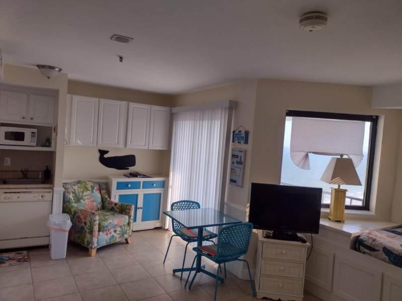 OCEAN VIEW CONDO in MYRTLE BEACH RESORT – Cozy efficiency unit with two beds, fully equipped kitchen with refrigerator, range, microwave, breakfast nook and dinette. EXCELLENT RENTAL HISTORY. This is your chance to really have that premier ocean property with top-notch amenities. Myrtle Beach Resort is a comprehensive active beach lifestyle community, featuring a fitness center, tennis courts, lazy river, indoor pools, and outdoor pools from small and cozy to gigantic along the ocean front. Snack shops, and the famous Quarter Deck beach bar with sand volley ball courts, are all within the secure gated premises. Also on site are basketball courts and a playground for the kids. Share the fun with others; the Tower is the premium building on the resort with excellent rental history and potential.