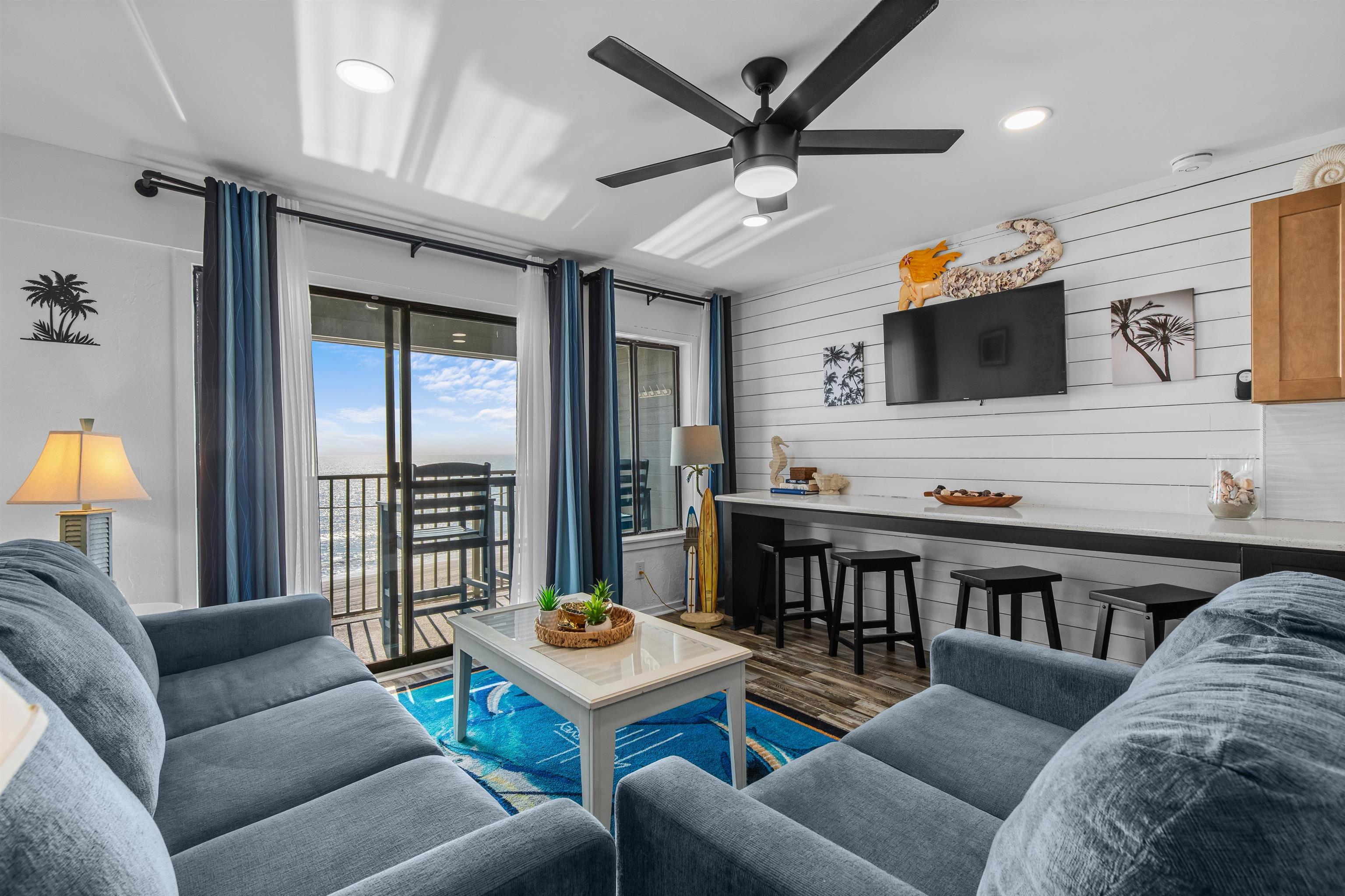 Location -Location-Location! A Bldg. Top Floor Penthouse Unit-Direct Oceanfront view! Wake up to ocean views in this beautifully remodeled oceanfront 1-bedroom condo designed for relaxed coastal living. Comfortably sleeping up to 5 with new sofa sleepers, this turnkey retreat features a new hot water heater, new A/C, and all-new furniture, lighting, flooring, countertops, and cabinets, plus smooth ceilings for a fresh, modern feel. Spend your days enjoying the beach and your evenings listening to the waves from home. Located within Myrtle Beach Resort, owners and guests enjoy resort-style amenities including indoor and outdoor pools, a lazy river, and so much more—perfect for vacations, rentals, or everyday seaside living. MB Resort offers 6 pools, 5 hot tubs, a kid's pool, splash pad, lazy river, 3 gyms, 3 parks and grill areas, ocean front swings, cornhole & horseshoe gaming areas, library, pickleball courts, basketball court, volleyball court, bocce ball court and tennis courts along with snack shack, 2 steam rooms and ocean front Bar/Restaurant. Agent is related to the Seller.