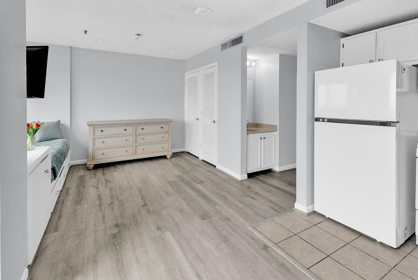 Amazing ocean view efficiency condo in the Renaissance Tower of Myrtle Beach Resort. This unit offers a full kitchen with white cabinets, updated countertops and vinyl flooring. The 19th floor balcony offers expansive views of the world-renowned South Carolina Coast. Myrtle Beach Resort offers tons of amenities including 5 pools of which 3 are outdoor, 1 indoor and 1 indoor/outdoor. The resort has a relaxing lazy river along with many hot tubs and spa areas. You can also enjoy the tennis courts, playground, oceanfront bar and pool, basketball court, volleyball, horseshoe, and bocce ball area plus two fitness centers. Whether you are looking for your forever home, rental property, or a vacation get-away you will not want to miss this one! This gated community is centrally located and just minutes from all local attractions, restaurants, shopping, and golf courses, including some of South Carolina's Finest and Freshest Seafood in Murrells Inlet.