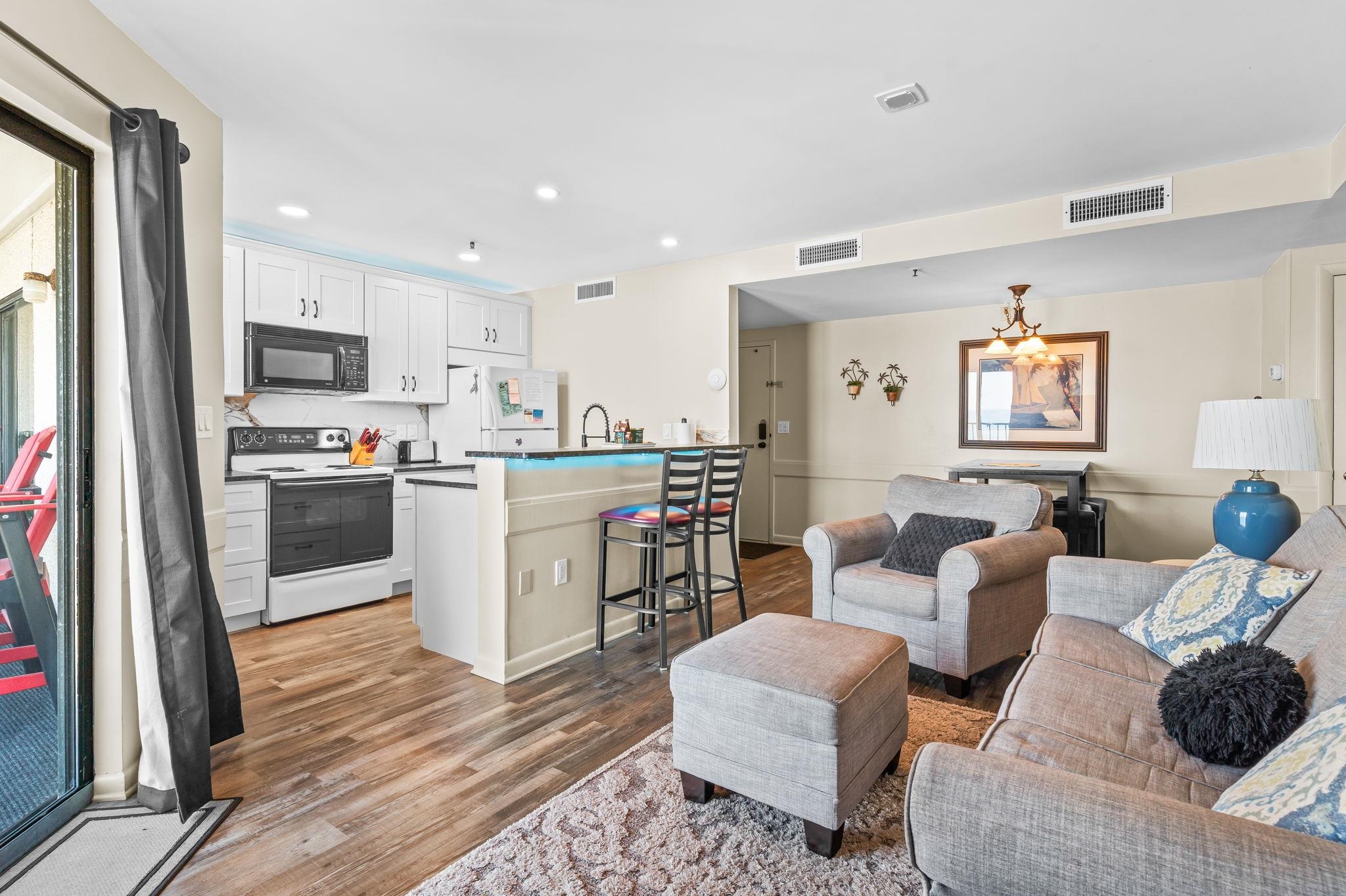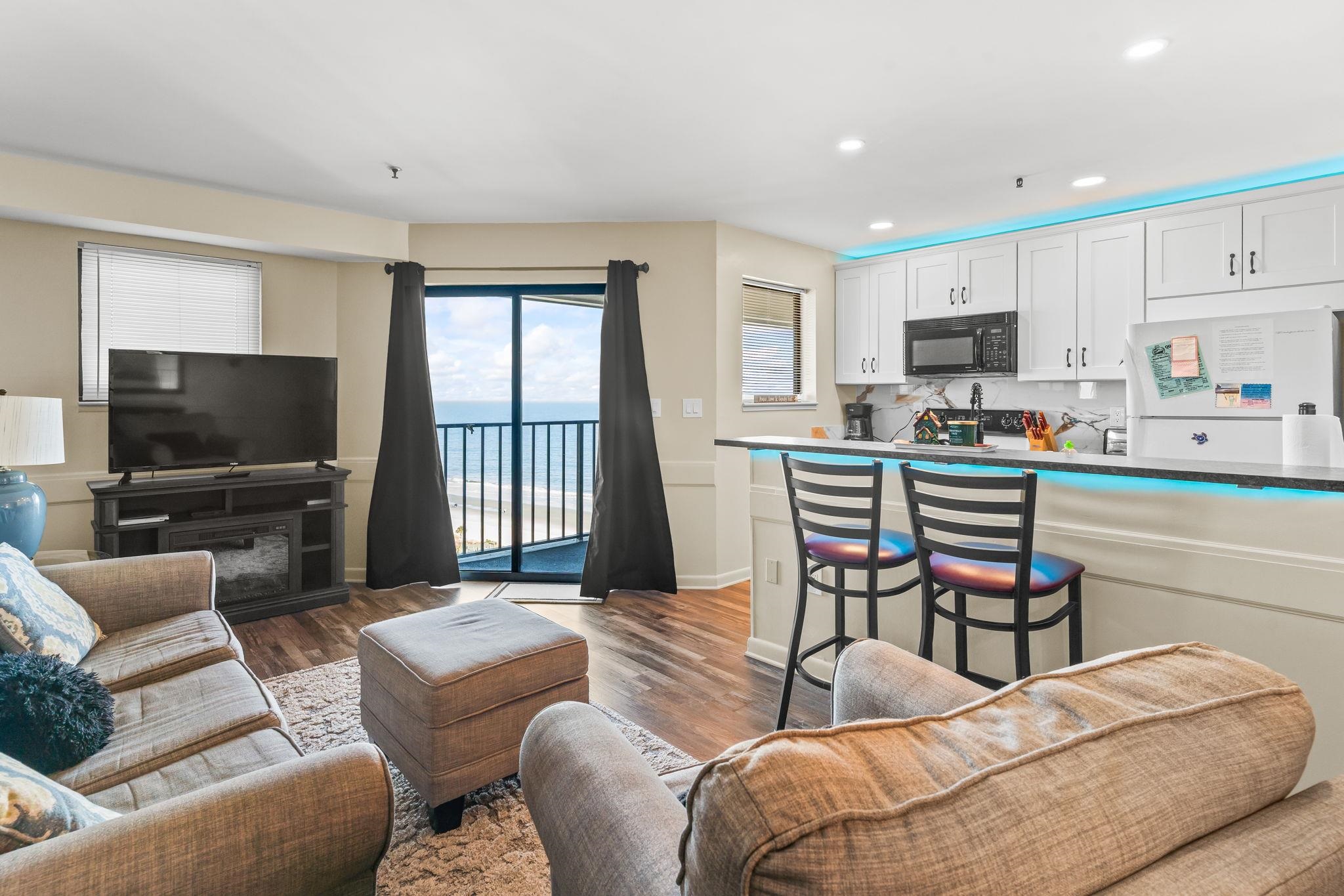 Elevated Oceanview Living — 15th-Floor 2BR in Renaissance Tower at Myrtle Beach Resort From this elevation, the Atlantic stretches endlessly along the horizon. Perched on the 15th floor, this beautifully updated 2-bedroom, 2-bath oceanview residence captures sweeping coastal vistas and a relaxed energy that immediately feels like vacation. Offered fully furnished and truly move-in ready, the condo provides approximately 908 heated square feet (993 total) in a bright, open layout designed to maximize light and views. The main living area is anchored by luxury vinyl plank flooring, creating a clean, modern foundation that complements the beach-inspired décor while drawing your attention straight to the balcony and water beyond. The refreshed kitchen blends updated finishes with practical workspace—ideal for everyday meals, entertaining guests, or supporting strong rental appeal. Sliding glass doors extend the living space outdoors to a spacious oceanview balcony, where sunrise coffee, ocean breezes, and panoramic North Shore views become part of your daily routine. The primary suite serves as a true retreat, featuring a private en-suite bath and direct balcony access—so the first thing you see each morning is the Atlantic. A comfortable guest bedroom and second full bath provide flexibility for family, friends, or vacation renters. Renaissance Tower sits within the gated Myrtle Beach Resort community, offering 24-hour security and an expansive amenity package. Residents and guests enjoy indoor and outdoor pools, a lazy river, hot tubs, sauna, fitness center, arcade, playground, basketball, bocce, tennis courts, grilling areas, and direct beach access—all across 33 beautifully landscaped oceanfront acres. Whether you’re searching for a primary residence, second home, or income-producing coastal investment, this high-floor oceanview condo delivers elevation, updates, and lifestyle in one complete package. Schedule your private showing today and experience the 15th-floor perspective firsthand.