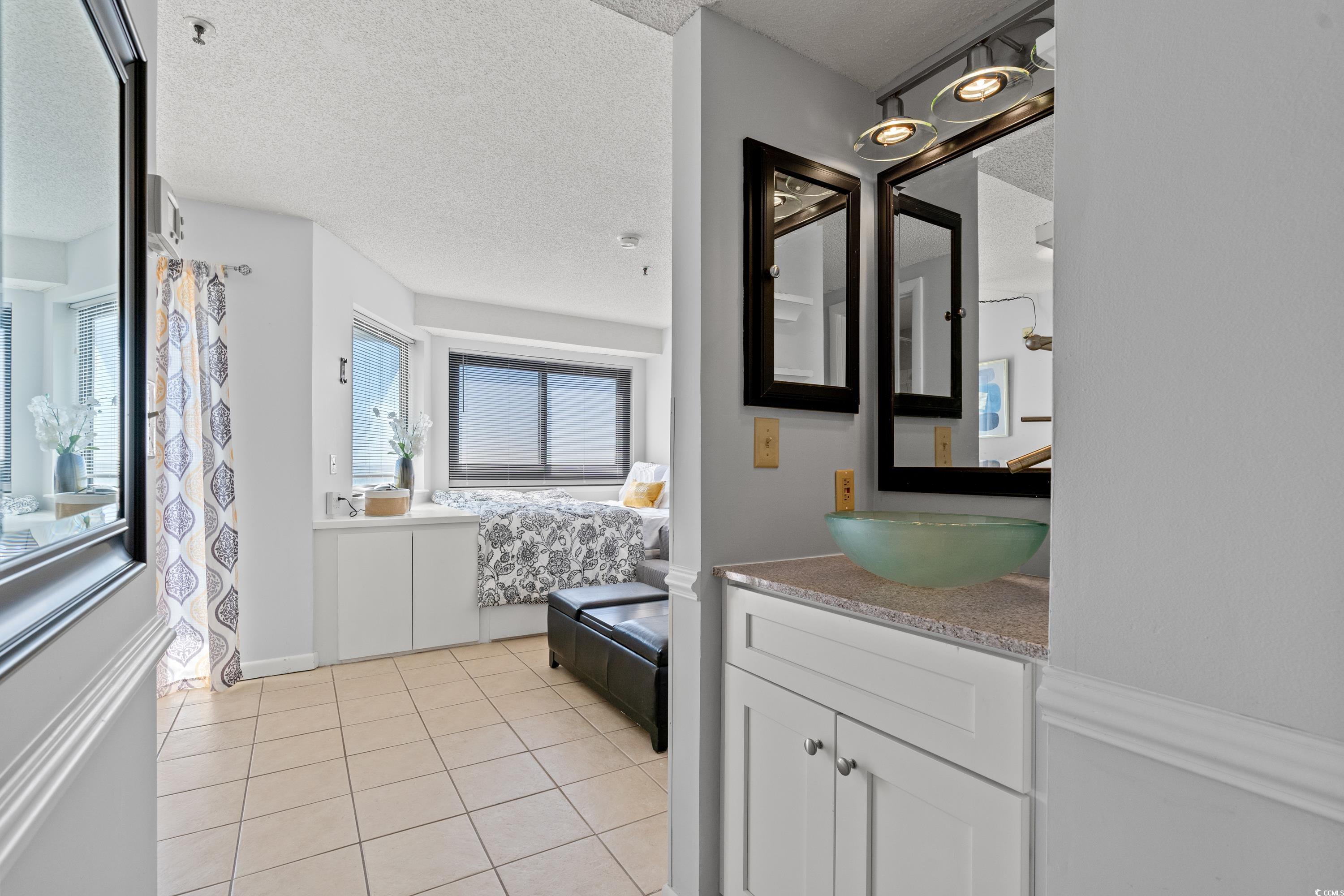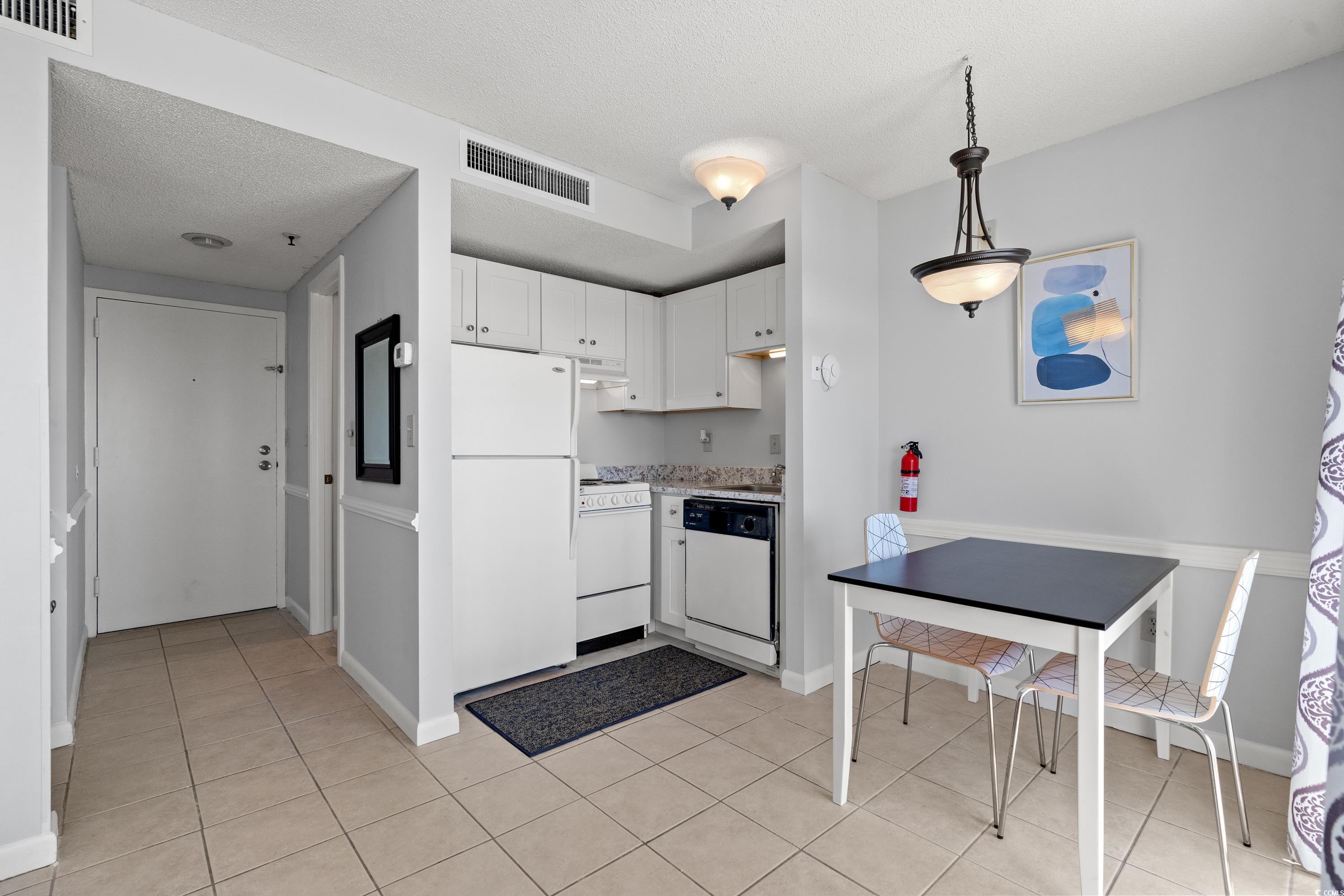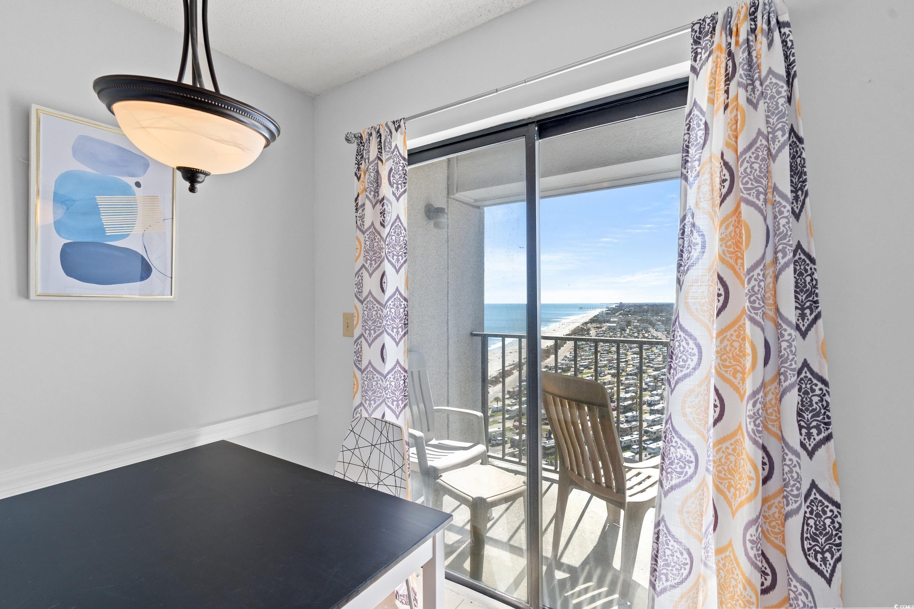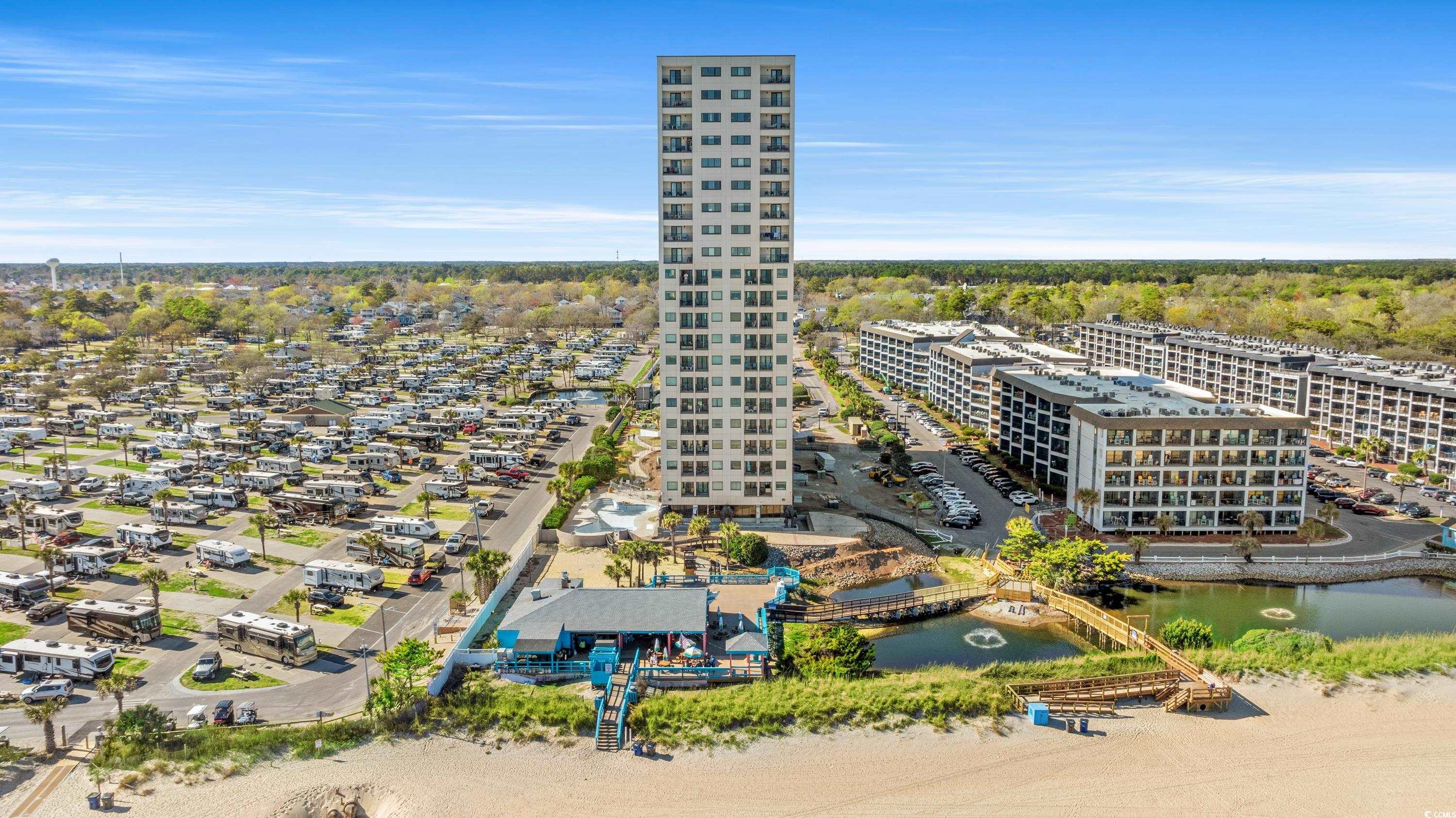 Welcome to this great ocean-view efficiency in the popular, gated community of Myrtle Beach Resort. This unit has been freshly painted and features a new stove, updated cabinets, and beautiful granite countertops. It comes fully furnished, has tile flooring throughout, and includes an upgraded vanity, brand new water heater– all very well maintained. Enjoy all the amazing amenities, including indoor and outdoor pools, a lazy river, a kids' water park, hot tubs, picnic areas, a playground, a fitness center, and tennis and basketball courts. And it's just one elevator ride down to the beach! The resort also has its own café, bar & grill, and gift shop for added convenience. Whether you're looking for a perfect second home at the beach or a great investment property, this unit is a must-see! Schedule your showing today!