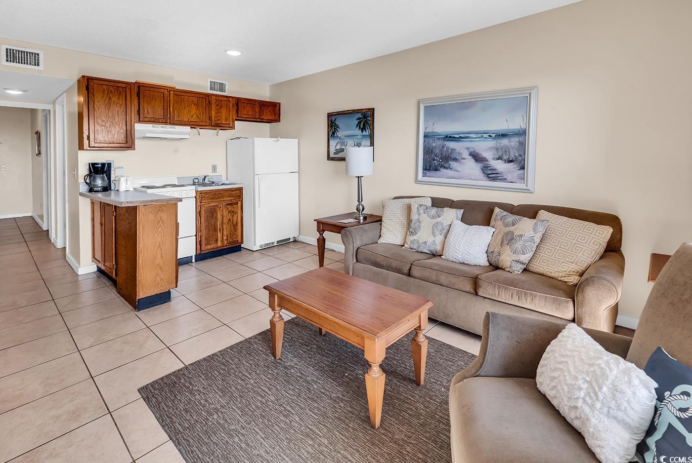 Relax and Recharge on the 5th Floor at Myrtle Beach Resort! Step into effortless beachside living with this fully furnished 1-bedroom, 1-bath condo located on the 4th floor of the B Building at the sought after Myrtle Beach Resort. Whether you're looking for a vacation home, an income-producing property, or a peaceful coastal escape, this unit is move-in ready and full of charm. Enjoy a bright, open living space that flows onto your private balcony—perfect for soaking in the ocean breeze or enjoying a quiet moment after a day in the sun. As part of the 33-acre Myrtle Beach Resort, you’ll have access to six swimming pools, both indoor and outdoor, along with hot tubs, a fitness center, sauna, game room, life sized chess board, putting green, and so much more. Dine al fresco at one of the picnic areas, pick up essentials at the gift shop, or enjoy a cold drink at the beachfront cabana. Private beach access and convenient on-site laundry facilities add to the comfort and convenience. Situated just minutes from Market Common, premier golf courses, shopping, dining, and attractions, this condo offers the best of both resort living and Myrtle Beach adventure. Here’s your chance to own a relaxing slice of paradise—don’t let it slip away!